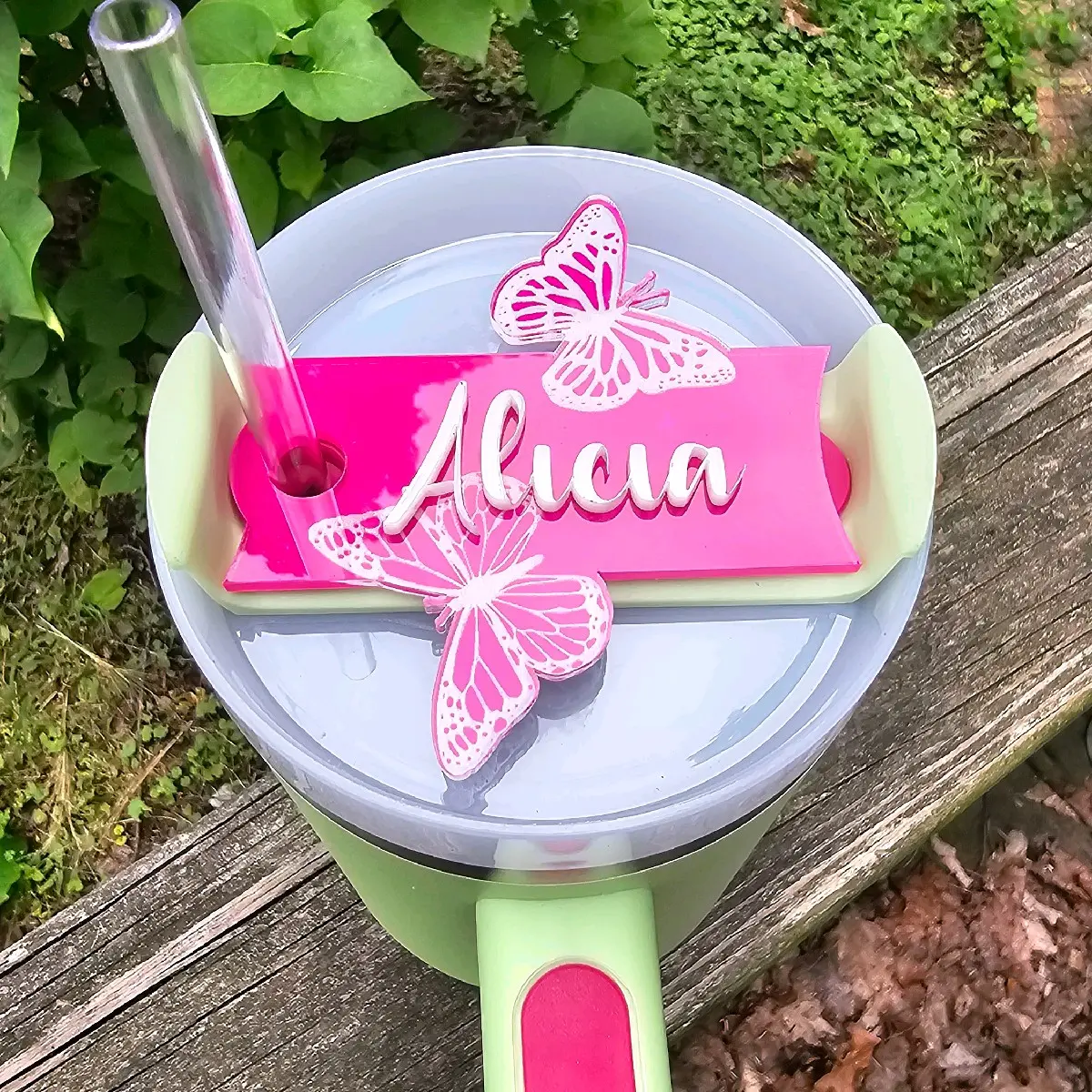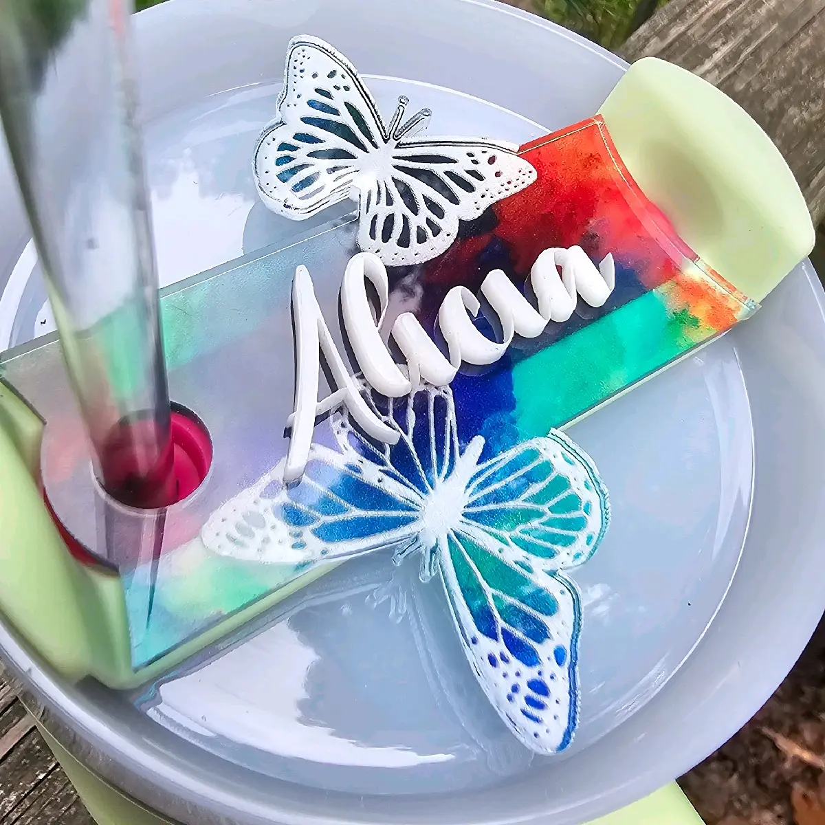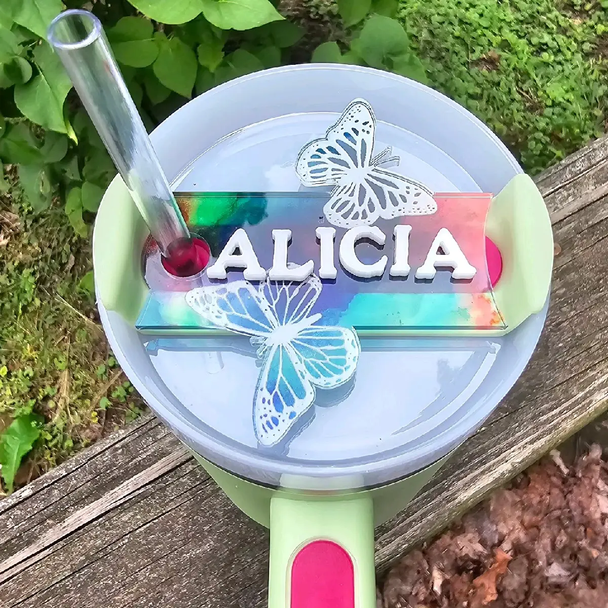 40z and 60oz Stanley Personalized Butterfly Toppers, Tumbler name plate, Personalized Accessory