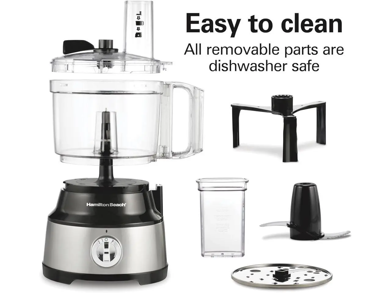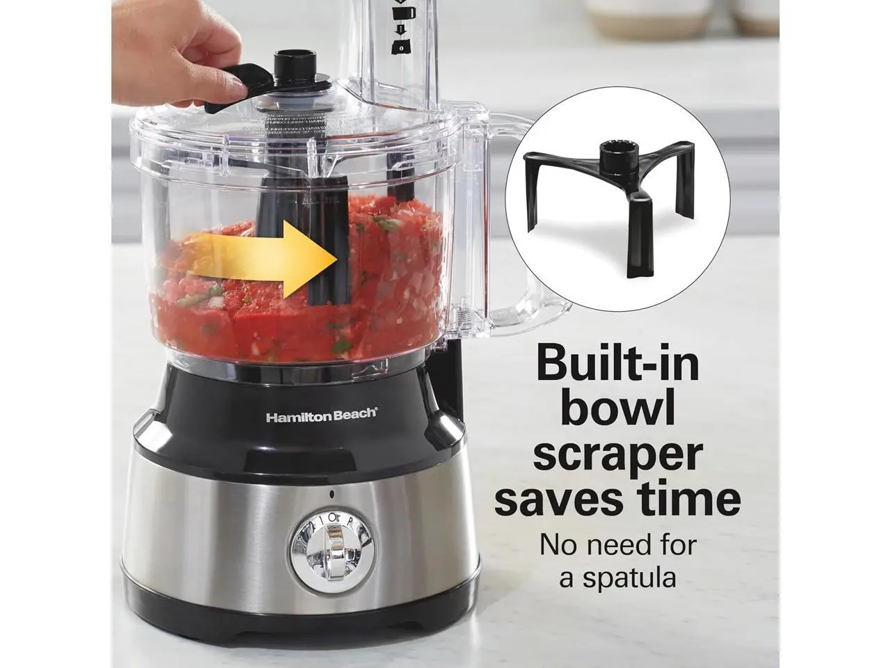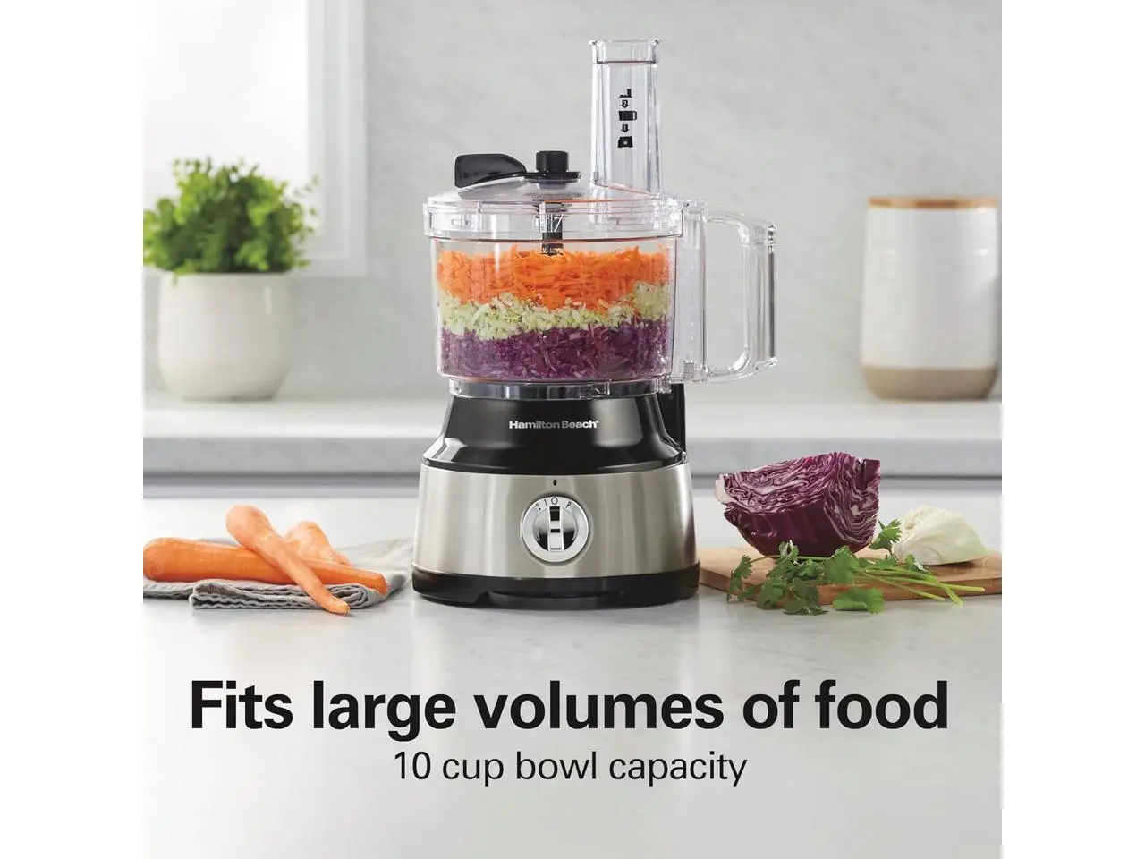 Hamilton Beach Food Processor & Vegetable Chopper for Slicing, Shredding, Mincing, and Puree, 10 Cups + Easy Clean Bowl Scraper, Black and Stainless Steel (70730)