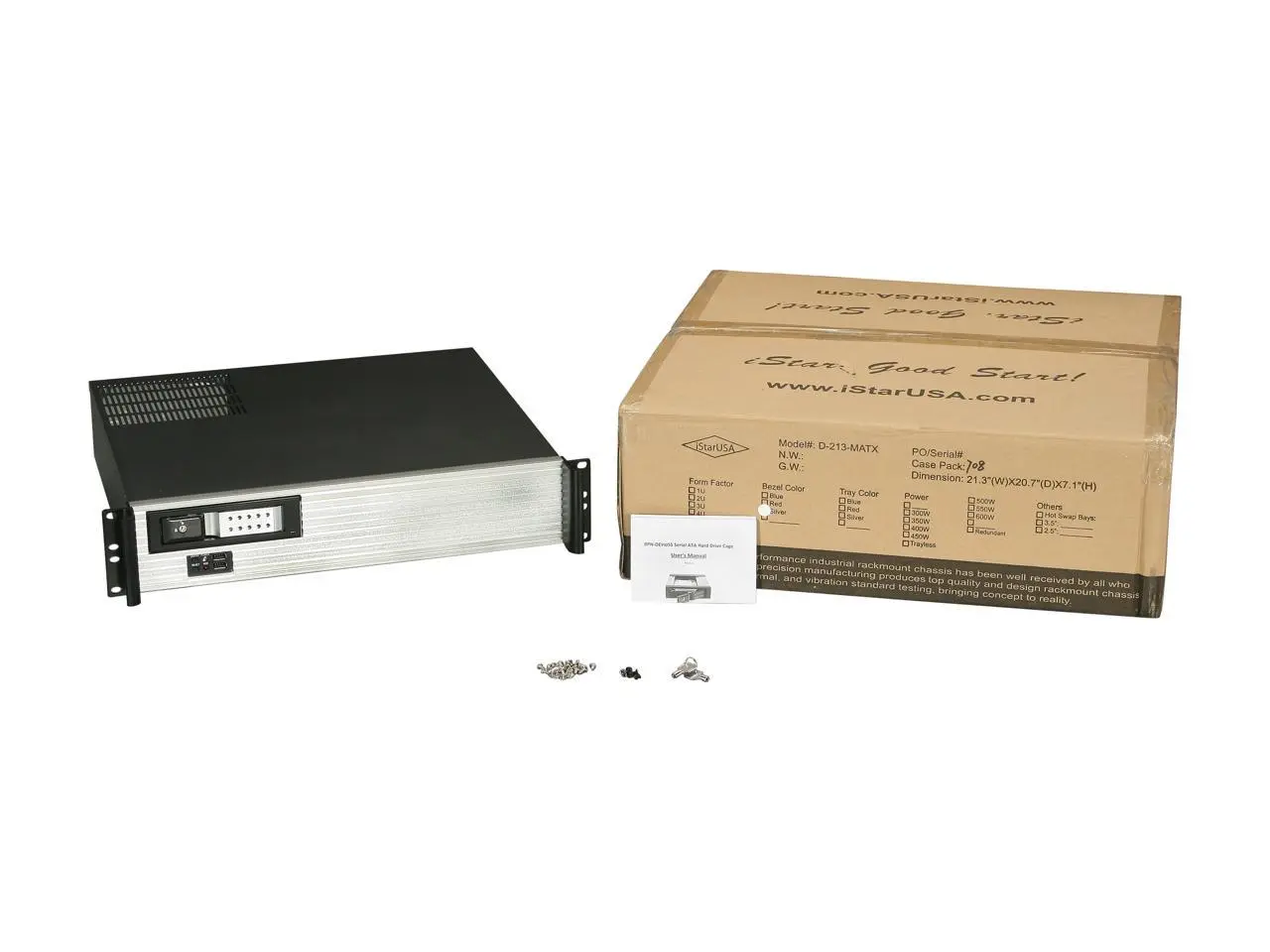iStarUSA D213MATX-DE1SL-SL Silver Front Bezel Aluminum / Steel 2U Rackmount Compact Server Case