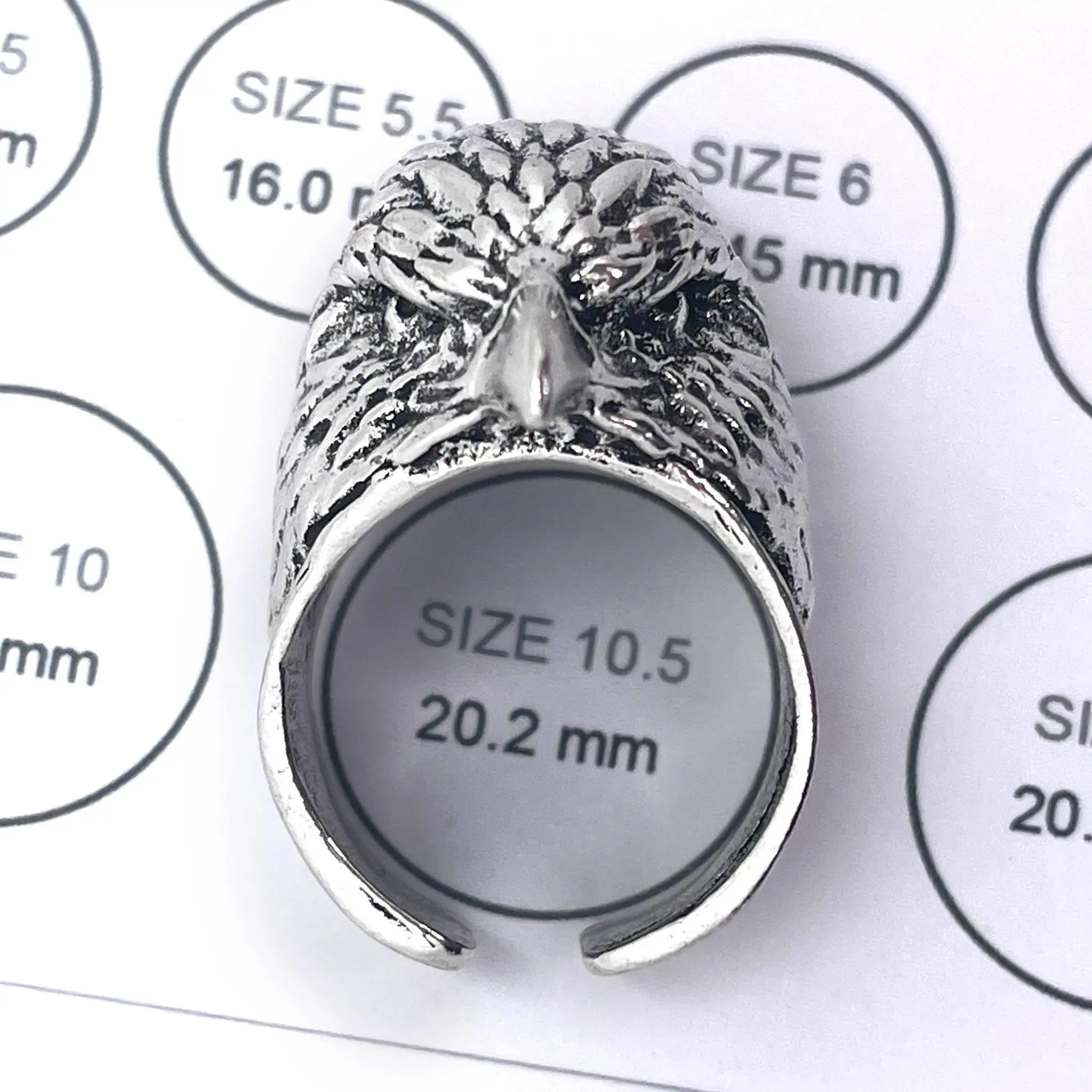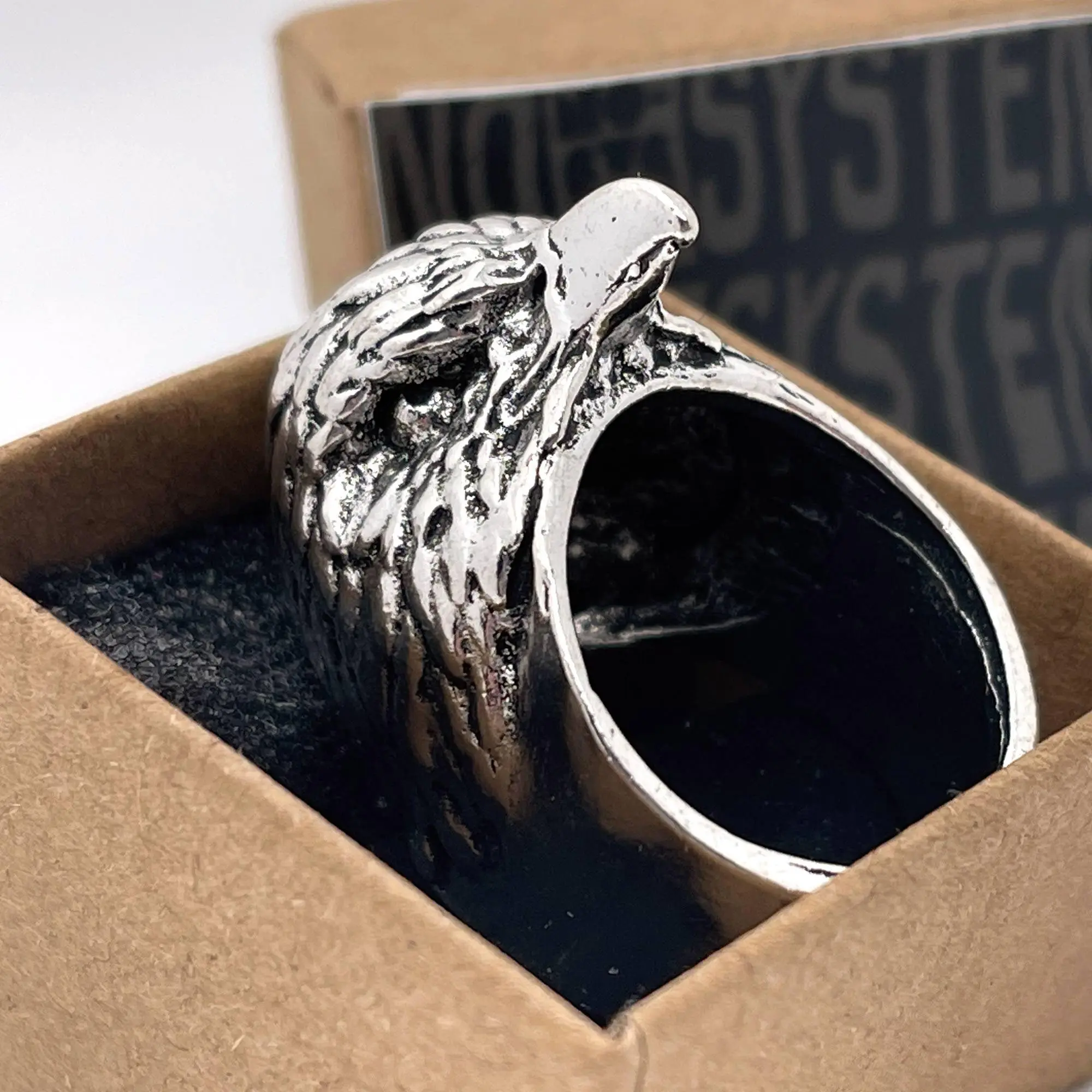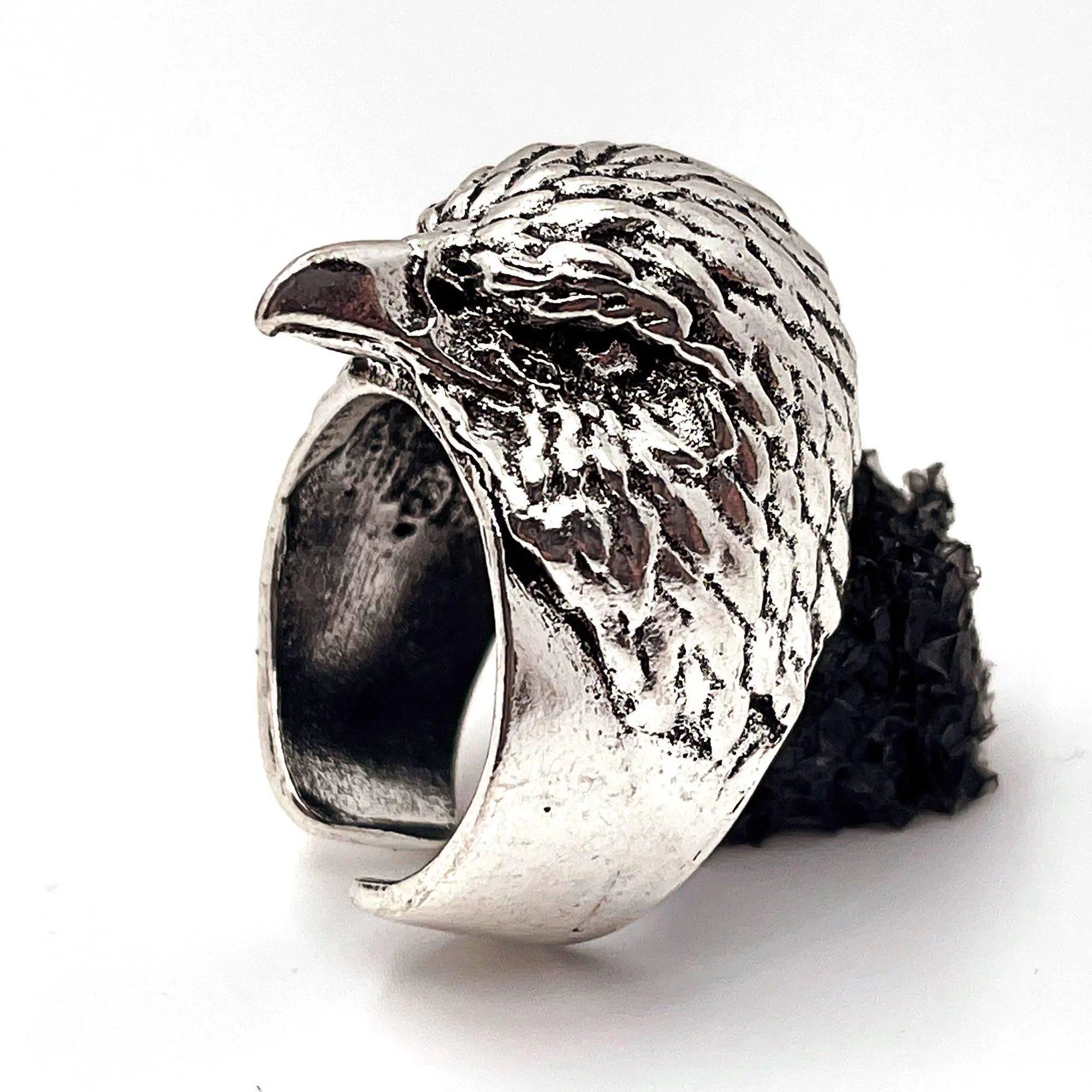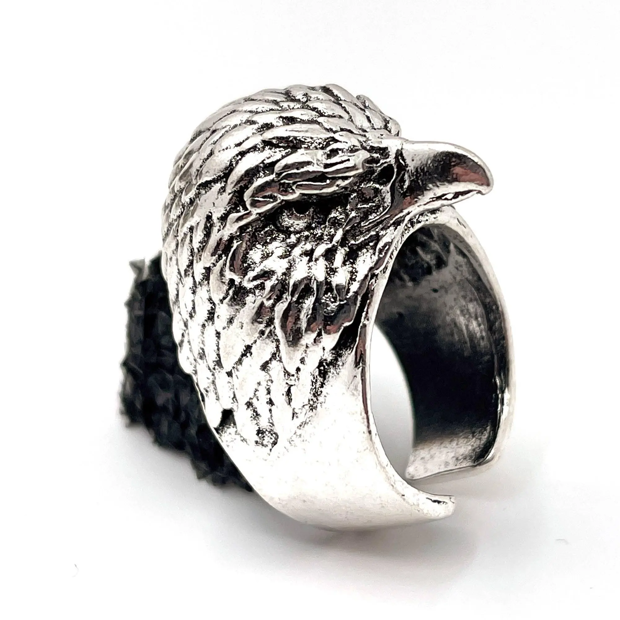 One of the most majestic birds with one of the most ill-fitting squawks now exists as a ring that could easily cause some damage. We picture this ring with a smoking jacket and a cane. Channel your inner superspy villain as you calmly place one hand on top of the other and look down the forehead of the eagle towards your opponent. The eagle stares down for you now. Relish the small bit of majesty residing on your finger.
