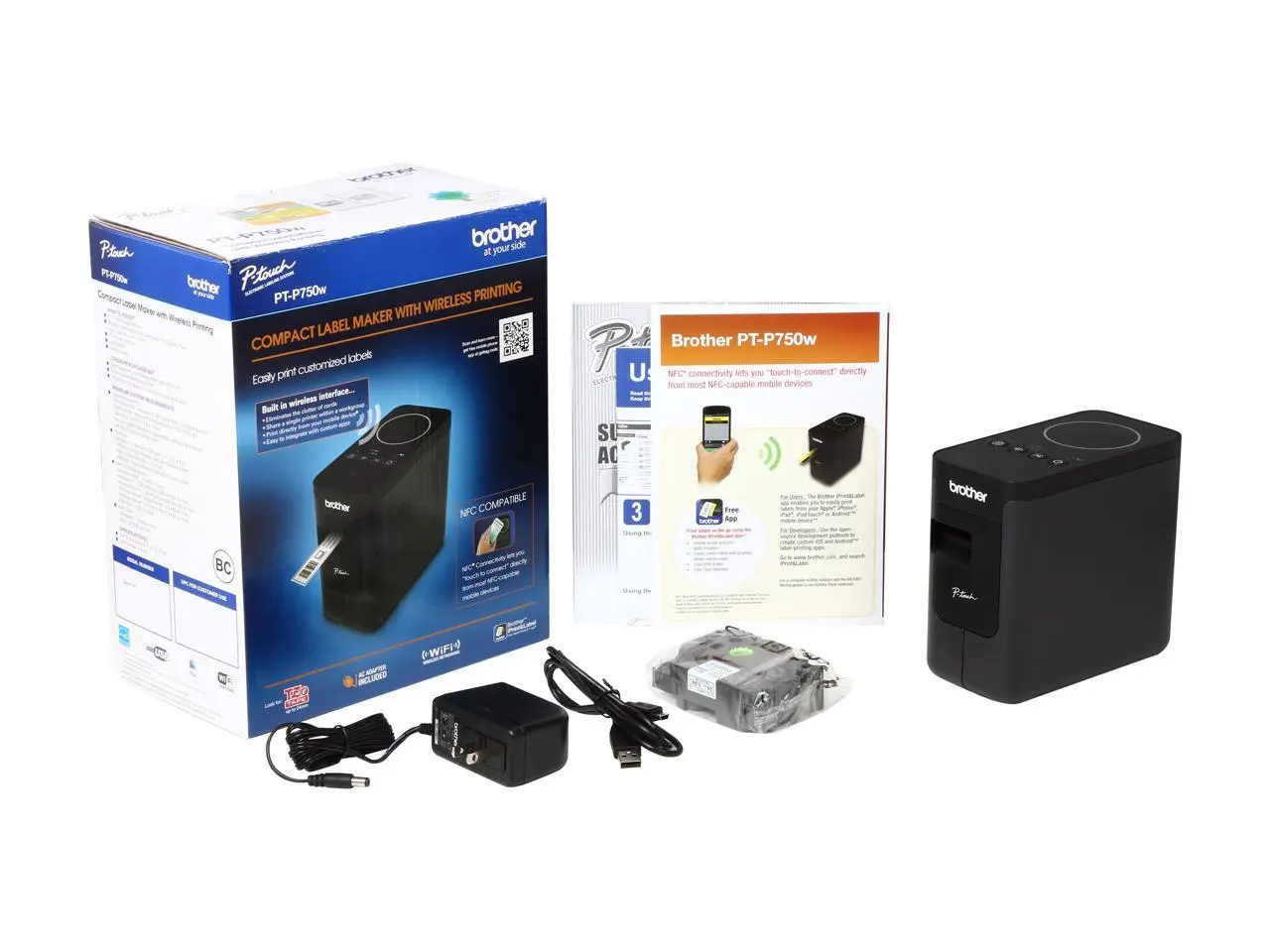 The free Brother iPrint&Label app further simplifies the process, offering a user-friendly platform for crafting labels on the go. For those who prefer a wired connection, the PT-P750W includes a USB interface for direct plug-and-play functionality with nearly any PC or Mac. This feature is enhanced by the pre-loaded labeling software, which provides immediate access to label design without the need for installation. For more advanced capabilities, users can download the robust P-touch Editor Label Design Software at no extra cost, expanding the creative possibilities. NFC compatibility is another highlight of the PT-P750W, enabling a "touch to connect" feature for quick pairing with NFC-capable devices.