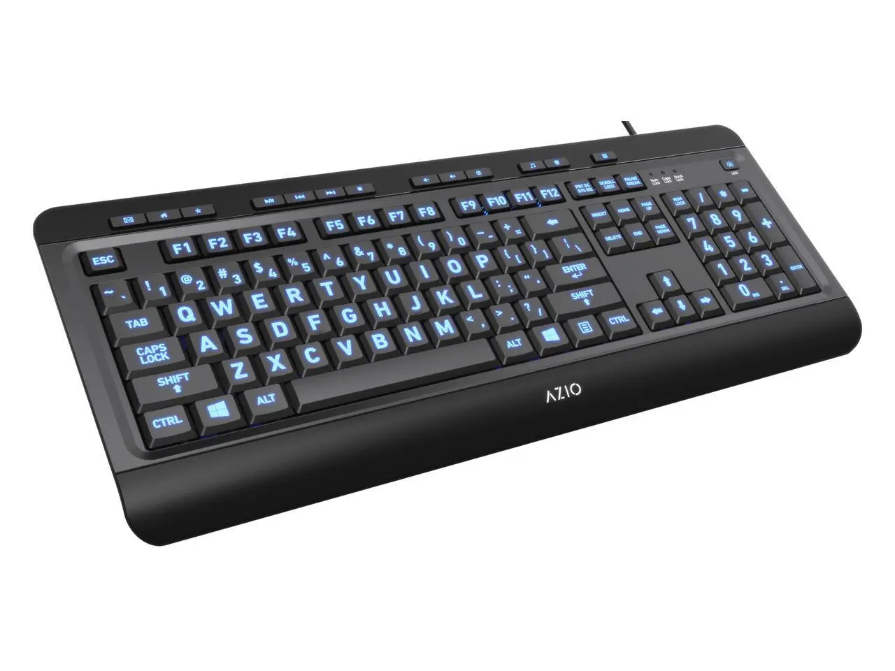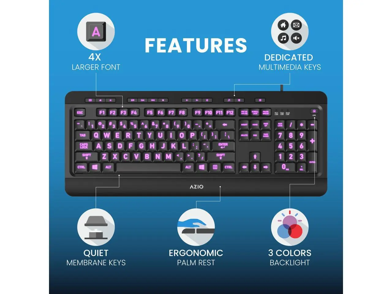 5. AZIO KB505U Black USB Wired Standard Large Print 3 Color Backlit Keyboard