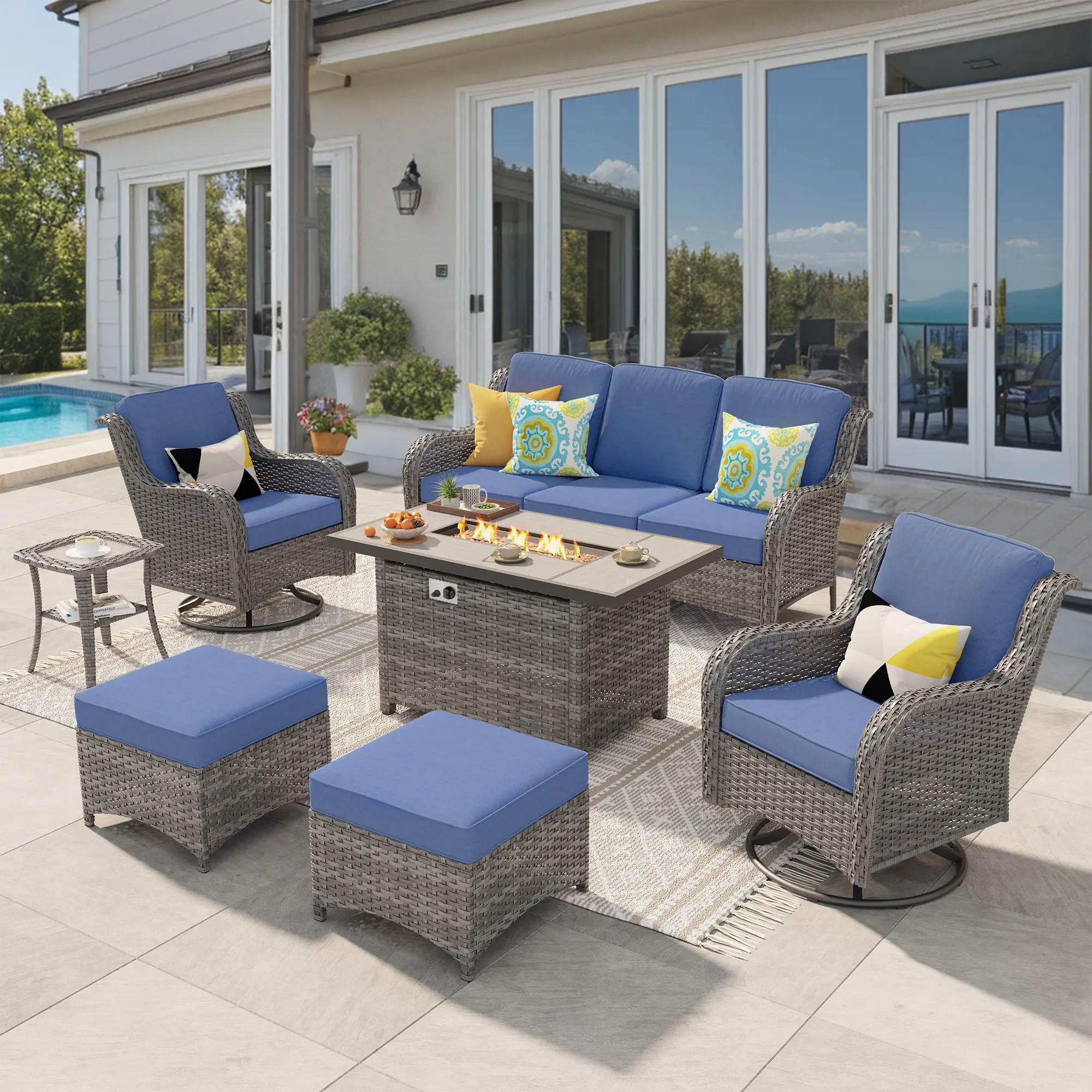 Packing 4 Packages Fire Pit Table 1 Unit 3-Seat Sofa 1 Unit Ottoman 2 Unit Swivel Chair 2 Unit Side Table 1 Unit