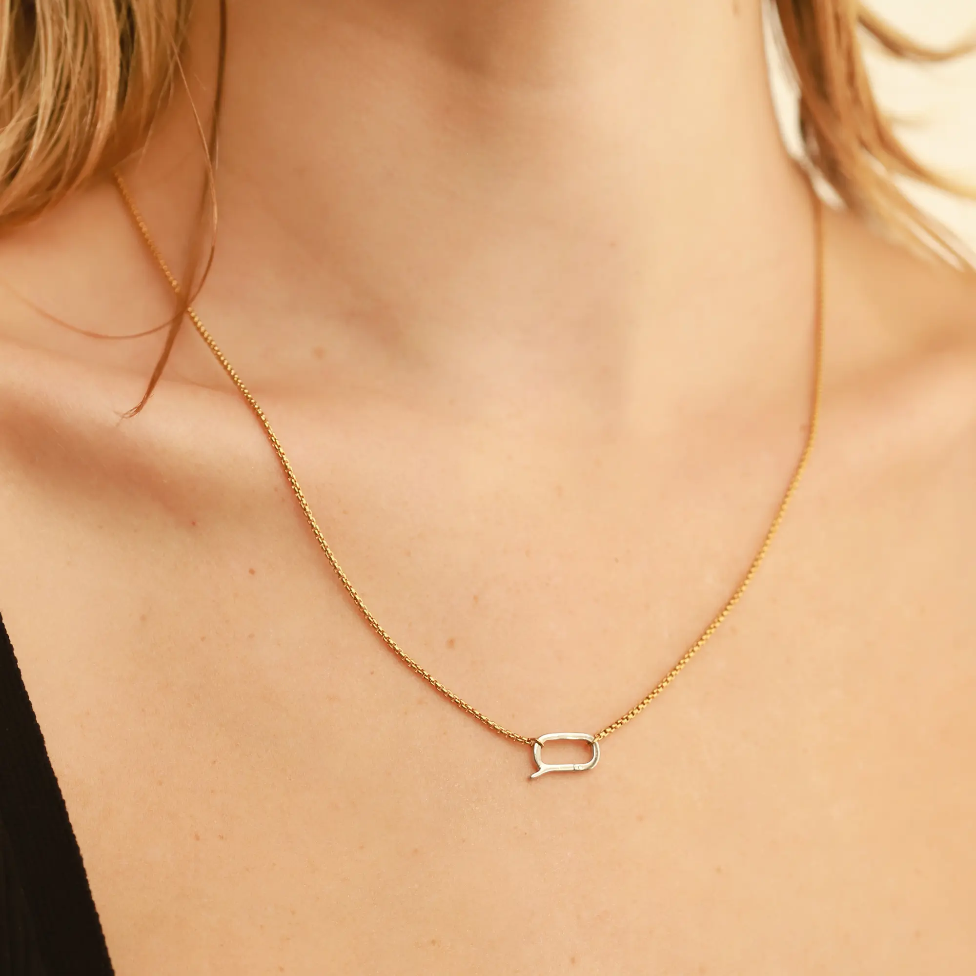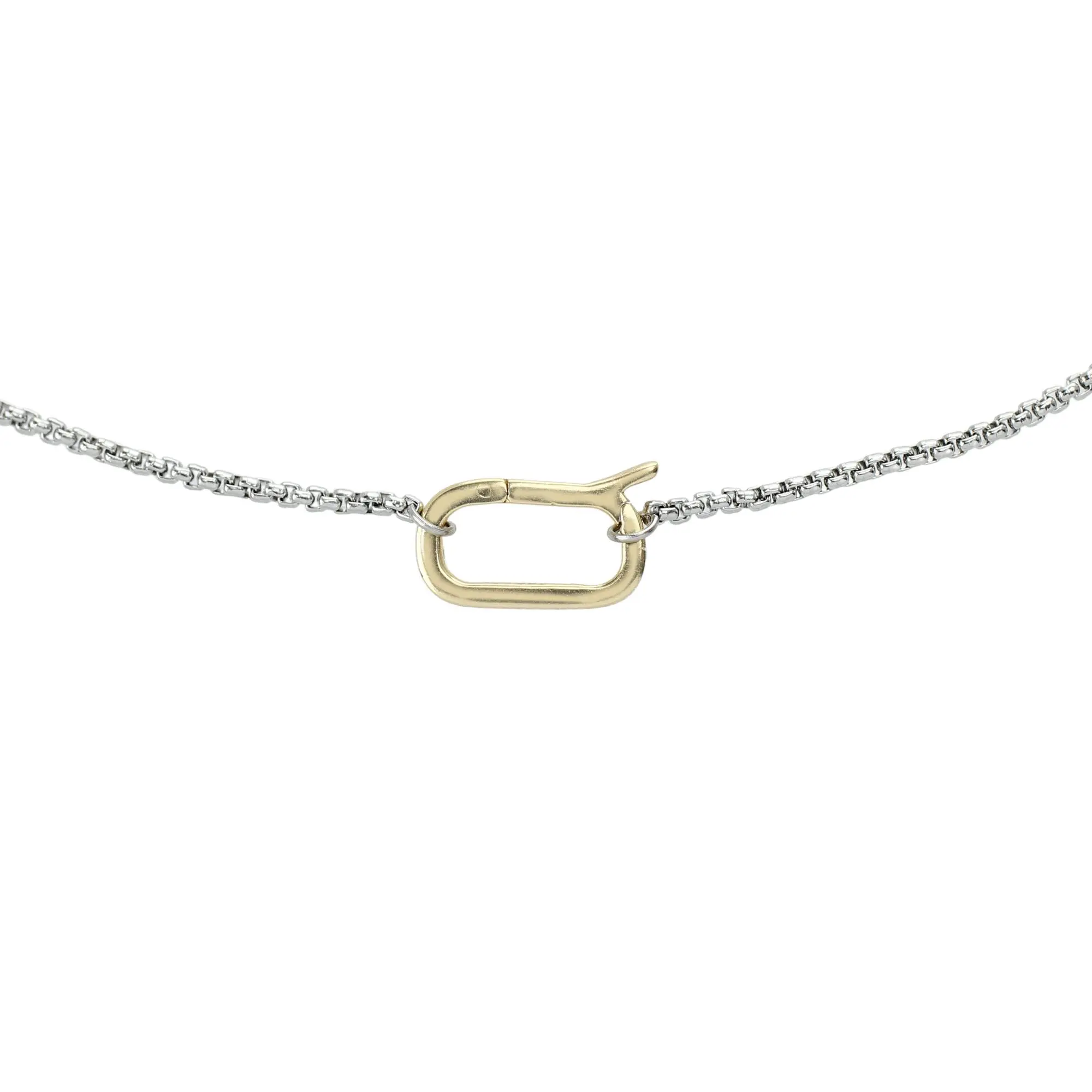 The "Can Opener Slim Chain" is a dainty extra thin stainless steel chain with a 925 sterling silver 18k gold plated clasp. Perfect for every day, its water resistant so no need to take it off.