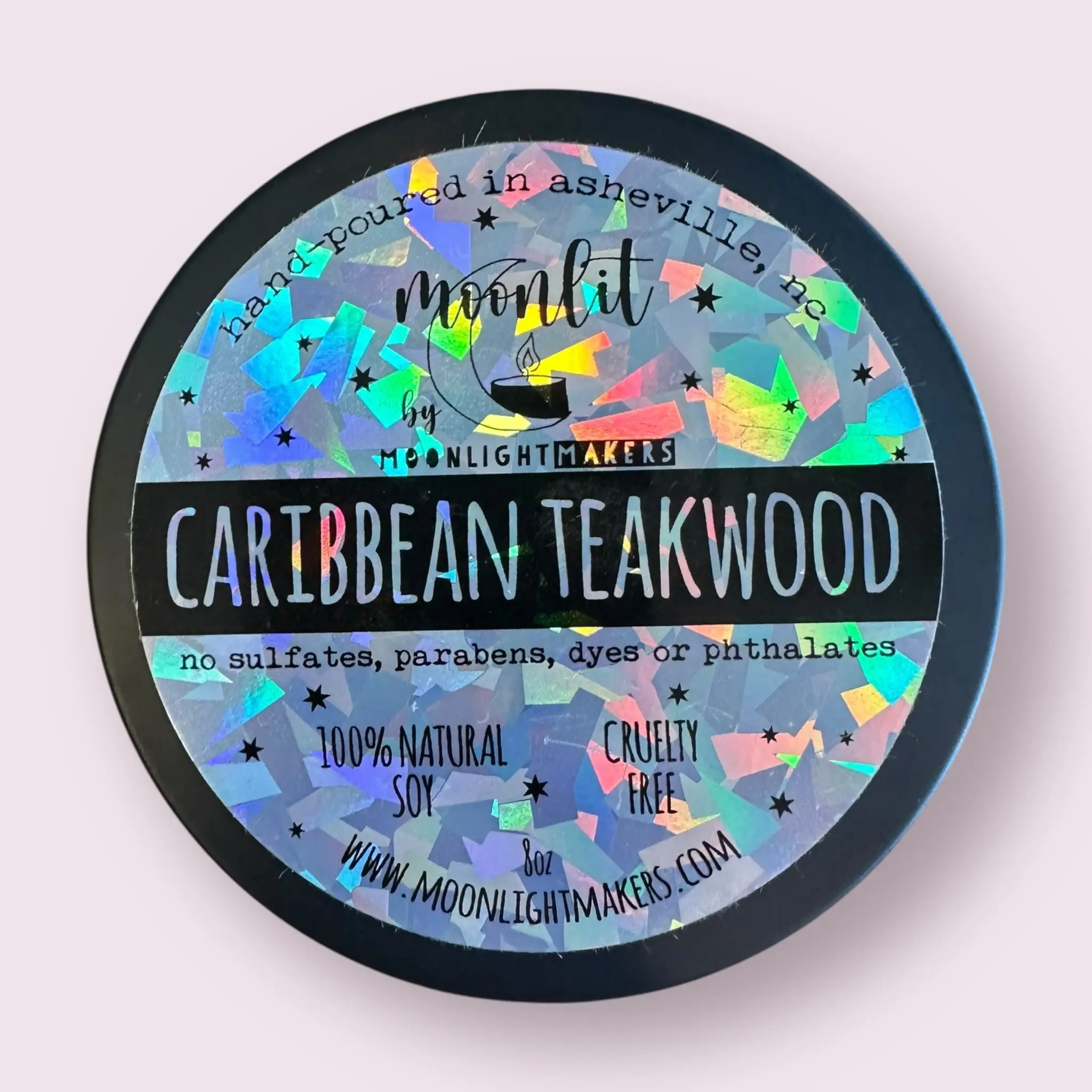Caribbean Teakwood is a bold, complex candle. It leads with spicy top notes of ginger, peppercorn, and spice. Middle notes of tobacco leaf and aged teakwood blend into the woody, deep base of sandalwood, amber, and dark musk. This candle is infused with natural essential oils, including cedarwood, patchouli, black pepper, and pimento berry.