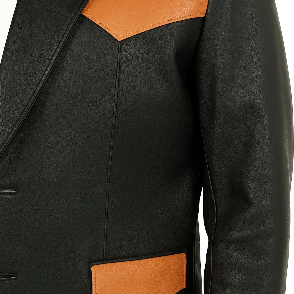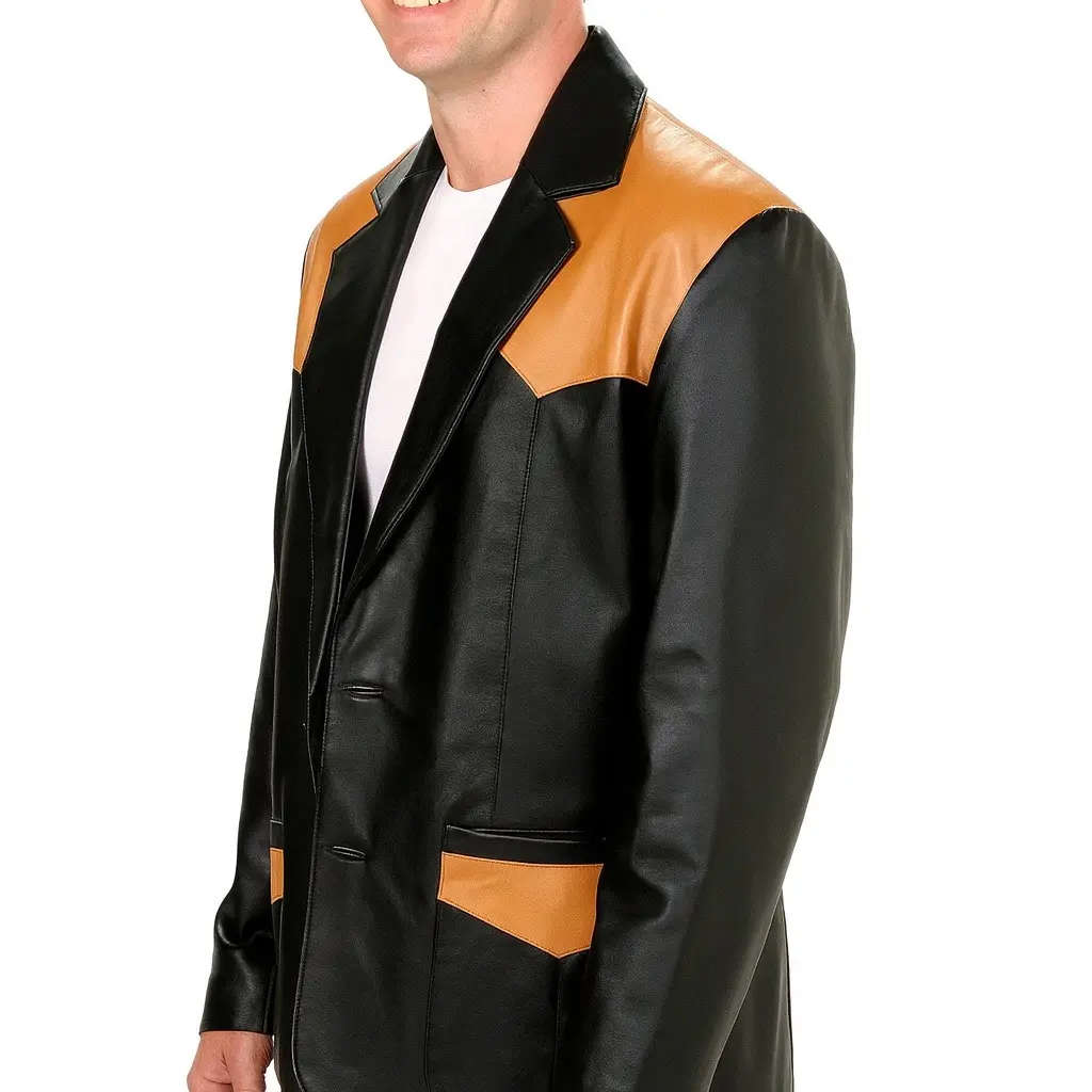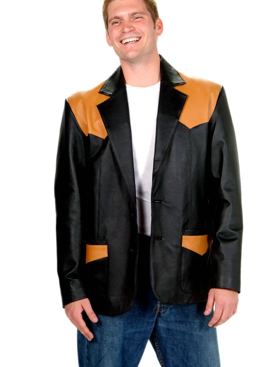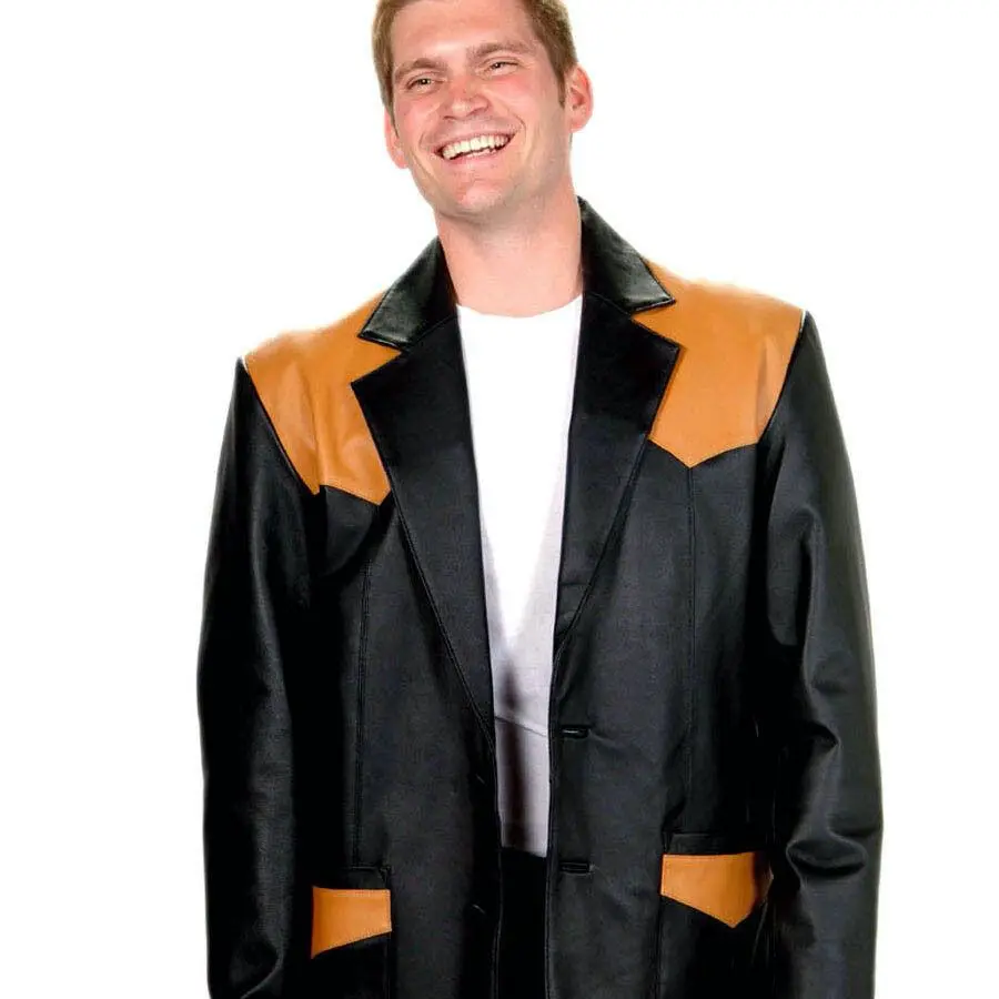⨠Men's Black/Mango Western Genuine Soft Leather Blazer â¨