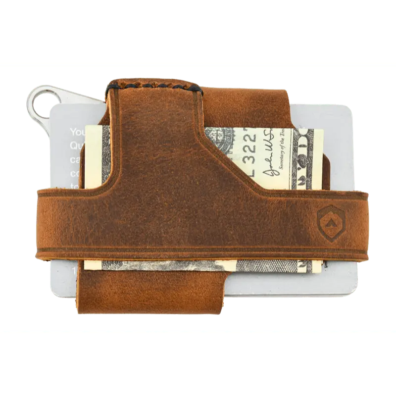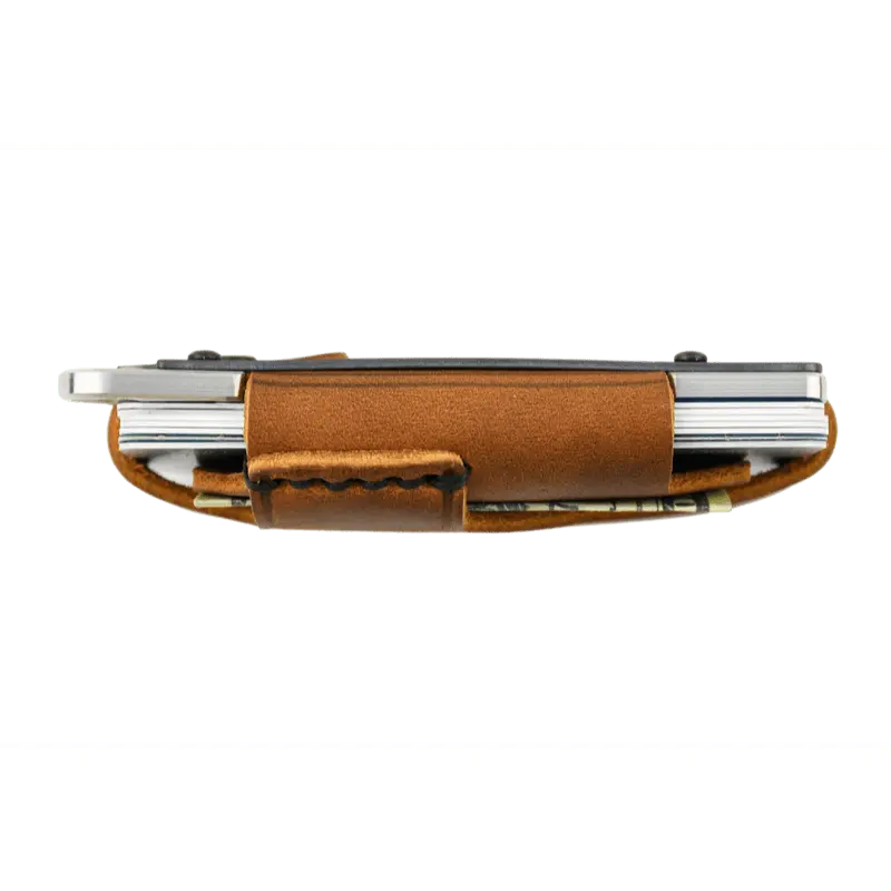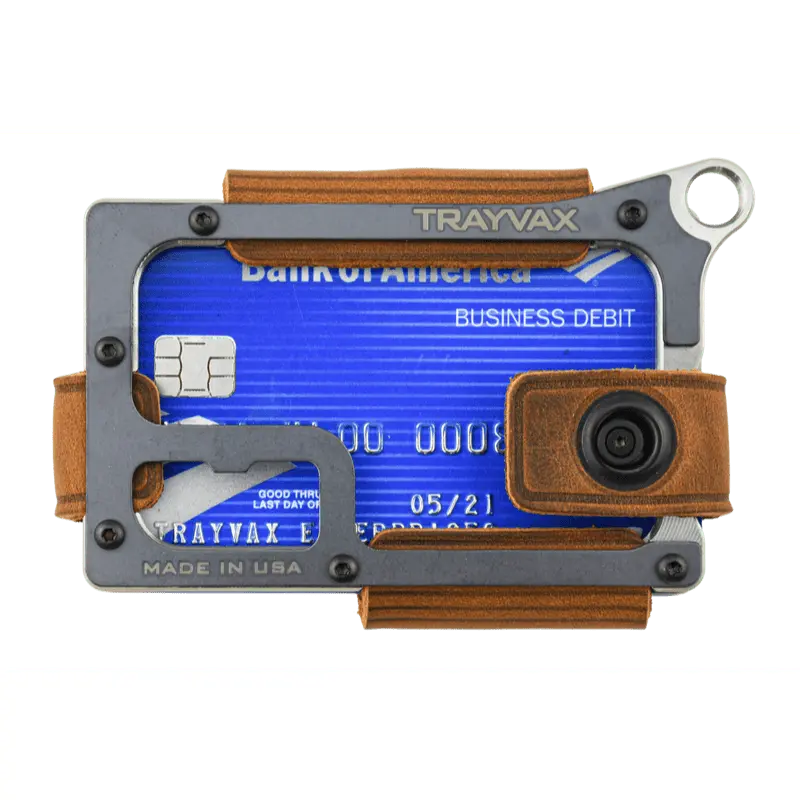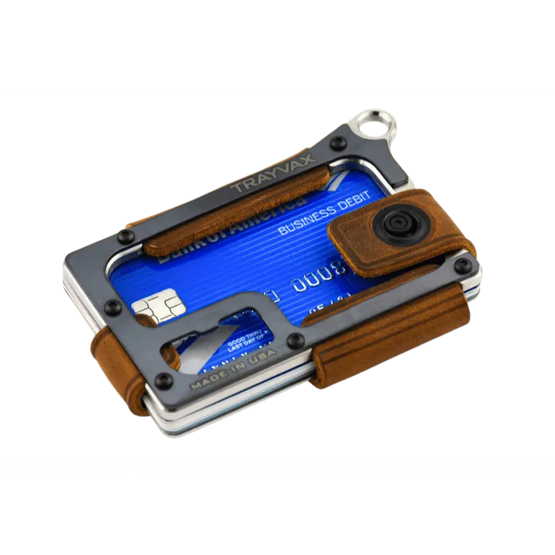The Trayvax Contour in Raw Tobacco Brown, is our most refined leather wallet to date. The bottom plate is highly-precise CNC-machined stainless-steel, brass, or titanium. The top plate is PVD-coated for durability. Each plate is wrapped in top-grain oil-tanned leather, which will develop a patina as a constant reminder of your journey. Ideal for use as a front-pocket wallet , the sleek design and slim profile ensures a compact and lightweight everyday carry.