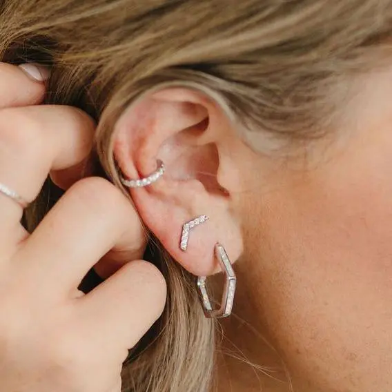 No need for a piercing! This glitter ear cuff is perfect for everyday wear. Slide it on for a quick, stylish look. It's a solid sterling silver piece with white cubic zirconia details. Wear it alone or pair two for extra sparkle!