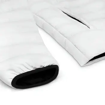 This one comes with a stand-up collar, quilted lining, black cuff lining, and two spacious side pockets for added practicality. Each jacket is lightweight and super soft to the touch. Choose between two zipper color choices: black or dark blue.