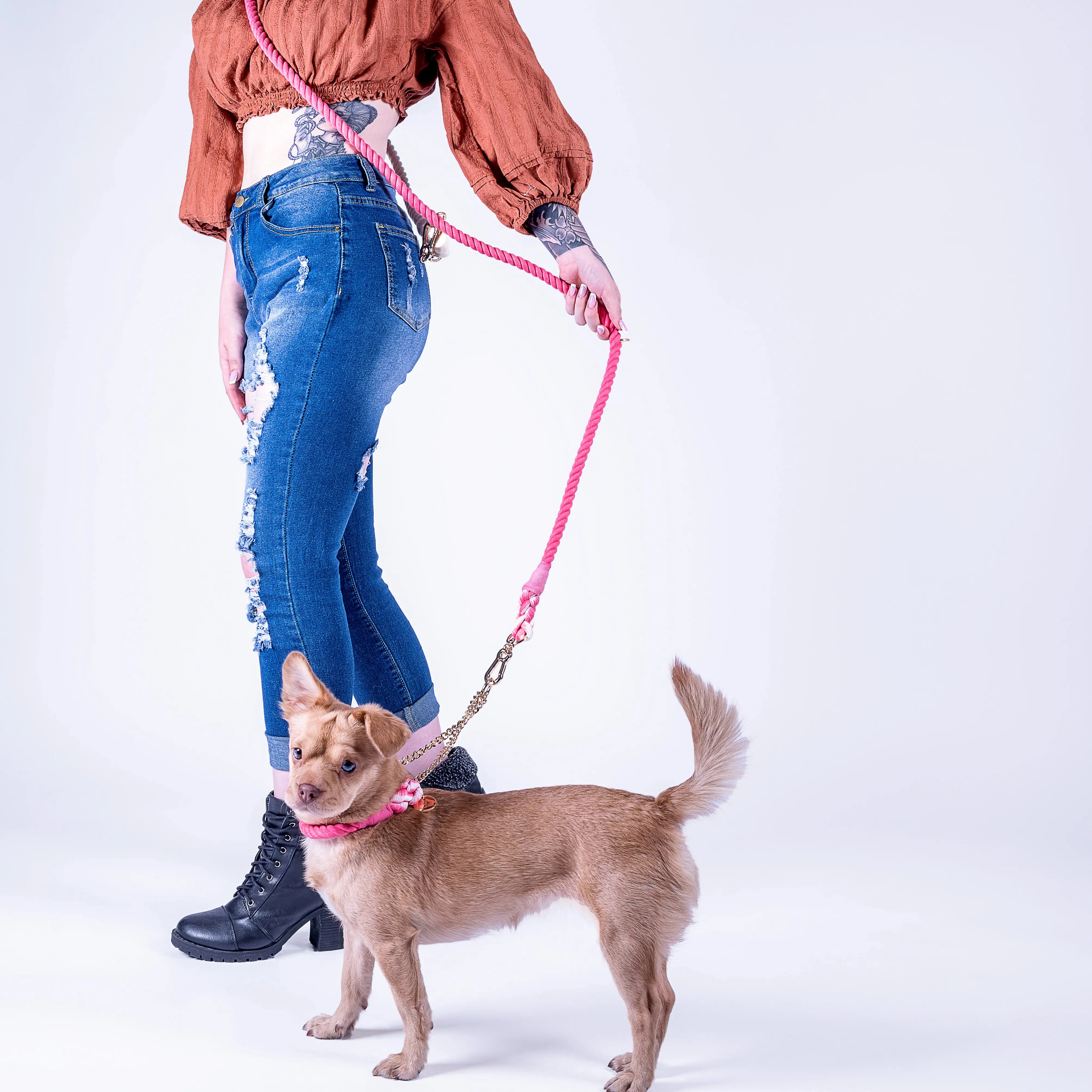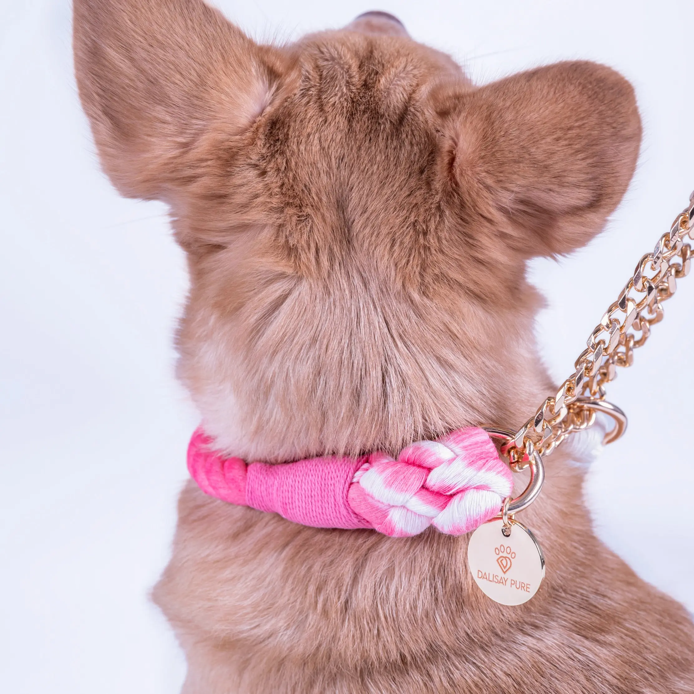 "Pale Pink" Beyond Par Cotton Rope Dog Collar with Gold Chain and Keychain Attachment