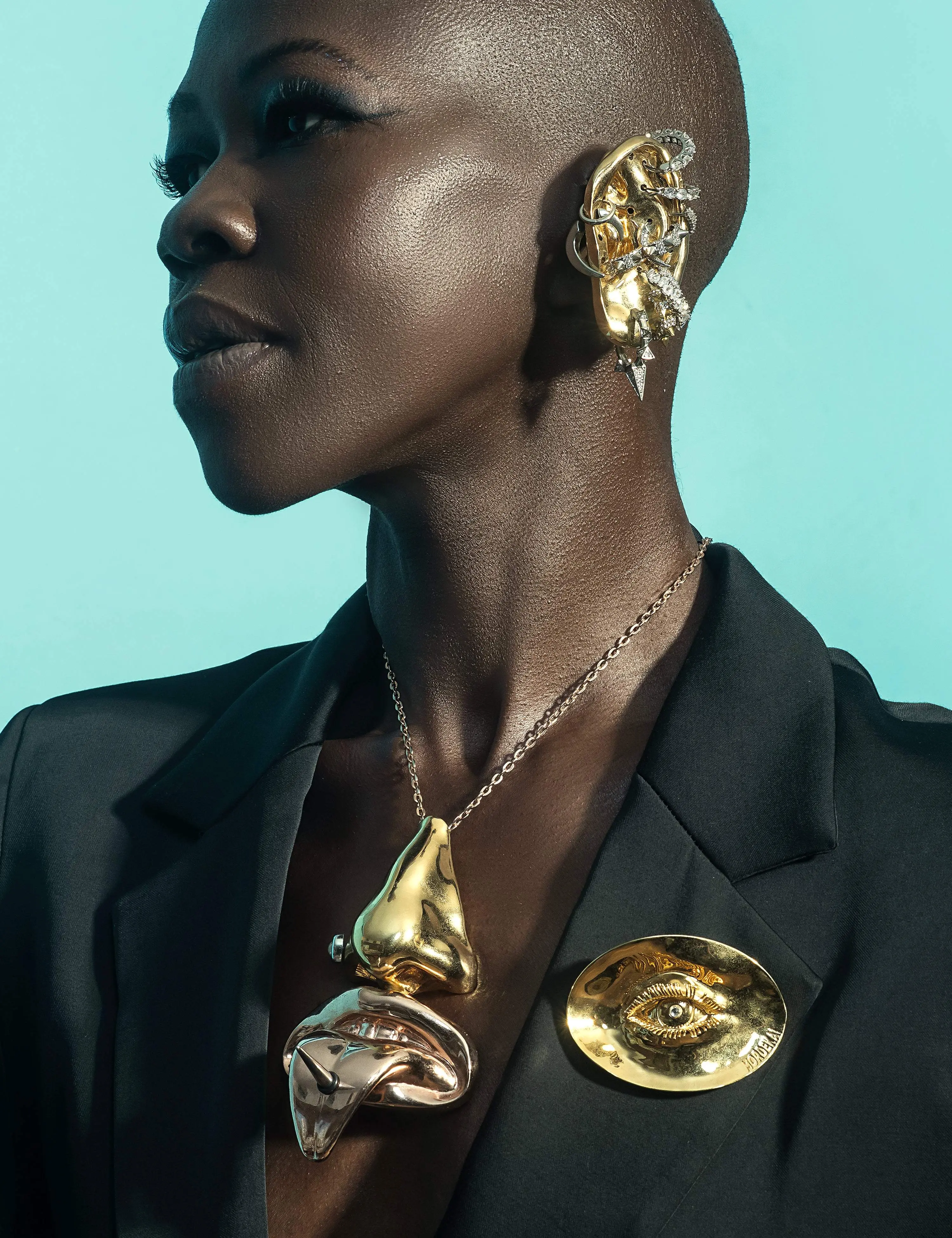 Inspired by the Dali perfume bottle, this two tone pendant is the most unique conversation and statement neckpiece you will ever own. Constructed of our creative director’s face, it is a 24k yellow gold plated brass nose adorned with a crystal stud, and a rose gold brass plated tongue adorned with spike. Produced through a painstaking process of 3D printing and handmade casting, this mini sculpture is the centerpiece of the FACElift jewelry collection.