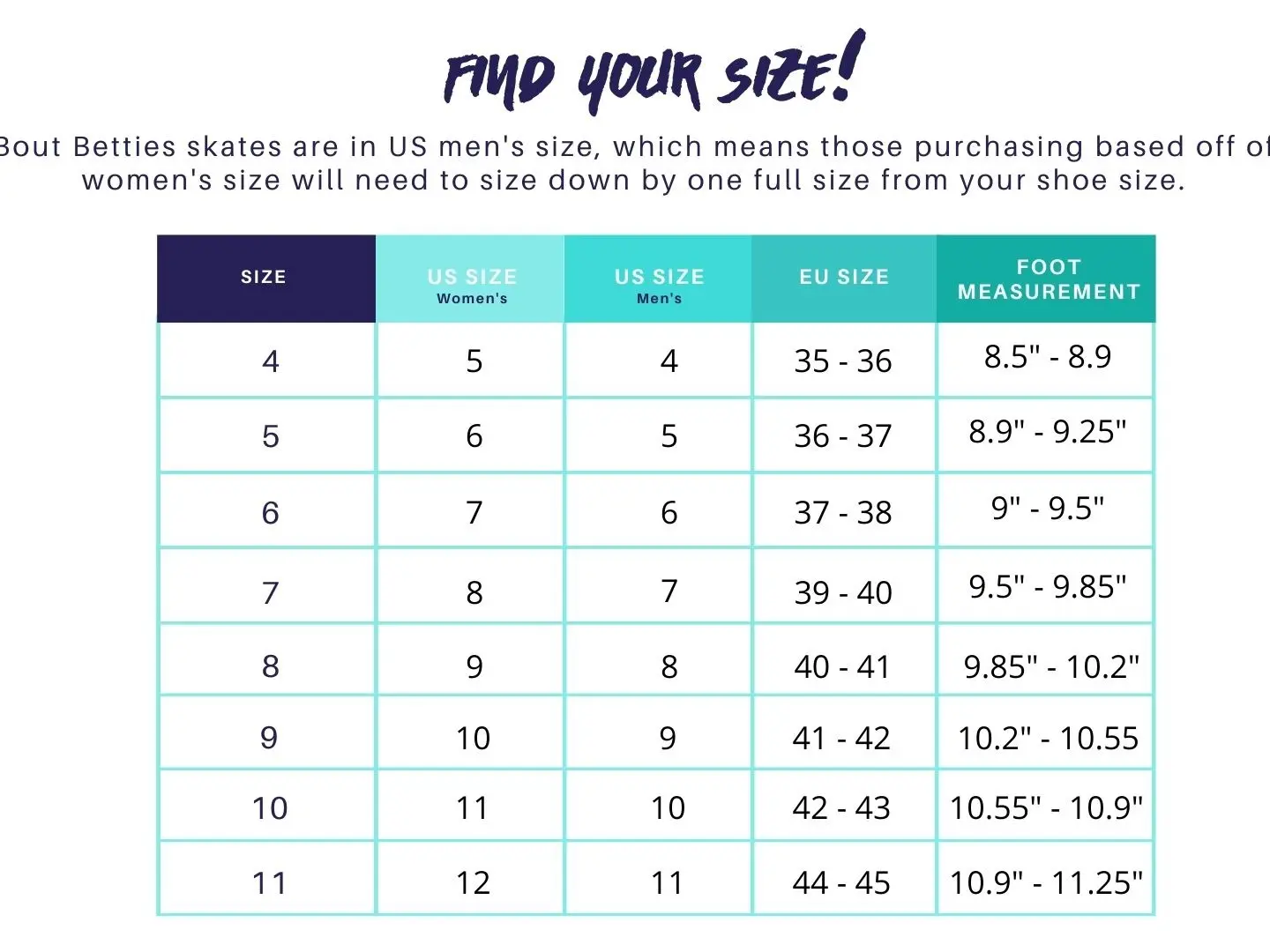 *In Men’s sizes. A men’s size is a size and a half smaller than women’s sizes.*