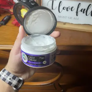 Ingredients: Deionized Water, Organic Shea Butter, Magnesium Chloride (Magnesium Oil), Cocoa Butter, Mango Butter, Emulse KLA, Stearic Acid, Organic Sunflower Seed Oil, Grape Seed Oil, Sweet Almond Oil, Vitamin D3, Turmeric Root Extract, Arnica Flower Extract, Aloe Leaf Extract, Cucumber Fruit Extract, Orange Fruit Extract (Vitamin C), Nipaguard SCE, Lavender Essential Oil