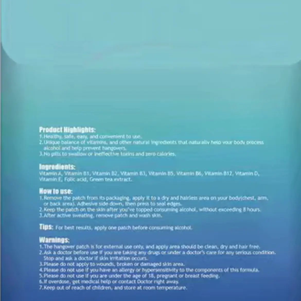Hangover Patch (Full of Vitamins) Detoxing Adult Brain Health Organic