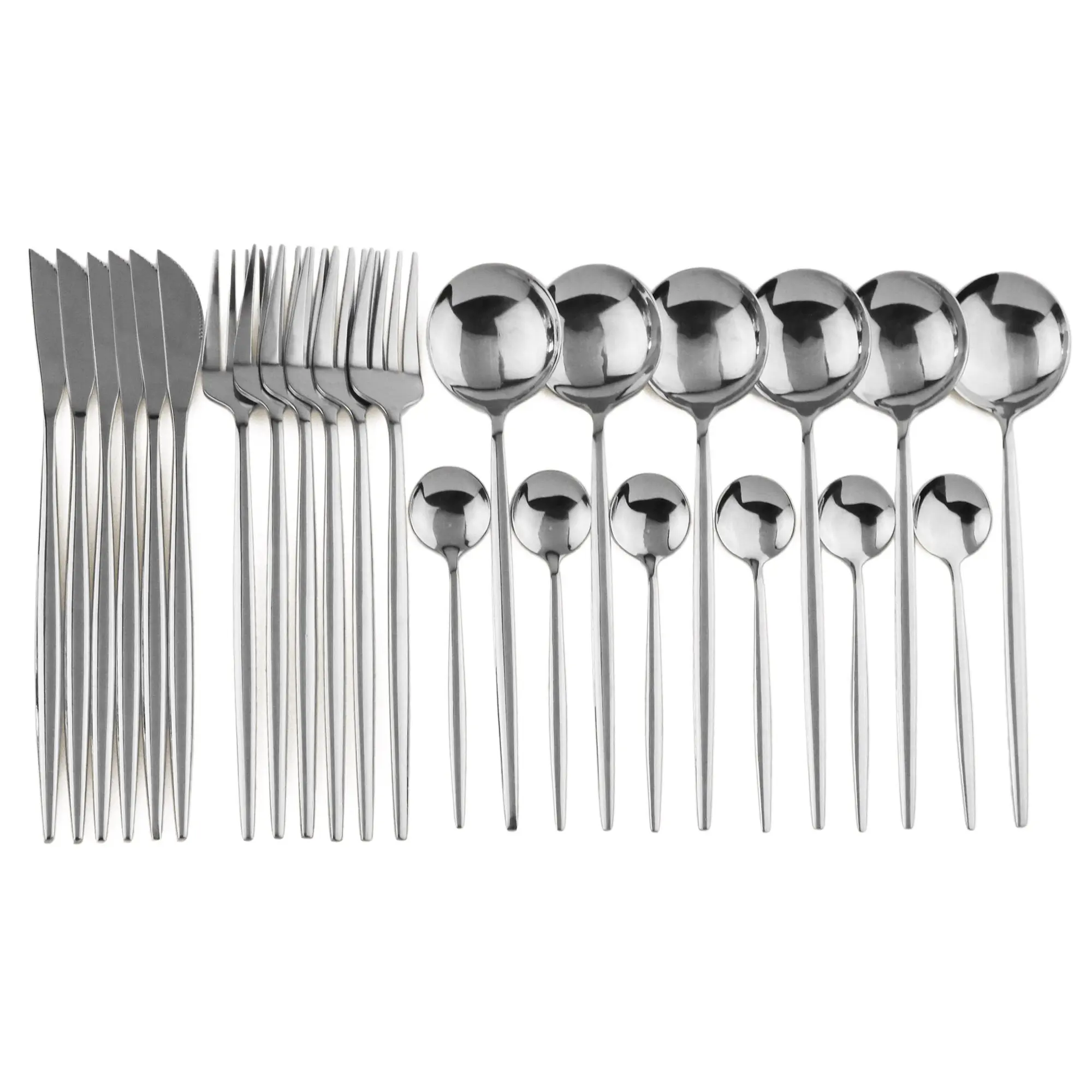 24pcs Black Western Dinnerware Set Stainless Steel Cutlery Set Fork Knife Spoon Tableware Set Flatware Set Silverware Set