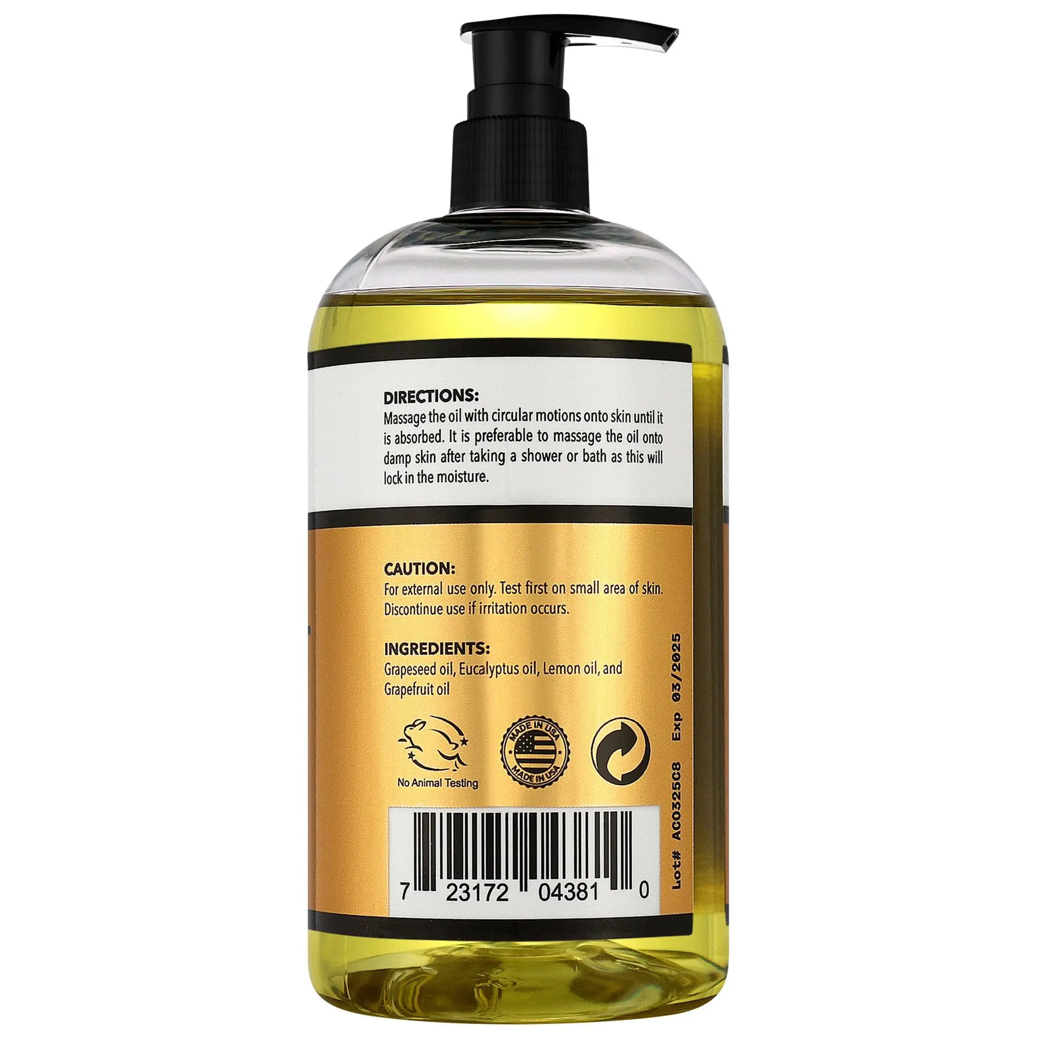 Spa Quality Massage Oil: Our massage oil is infused with invigorating Lemon essential oil, stimulating your circulatory system to aid in toxin removal and improve circulation. Regular use not only helps reduce cellulite but also alleviates varicose veins for healthier-looking skin.