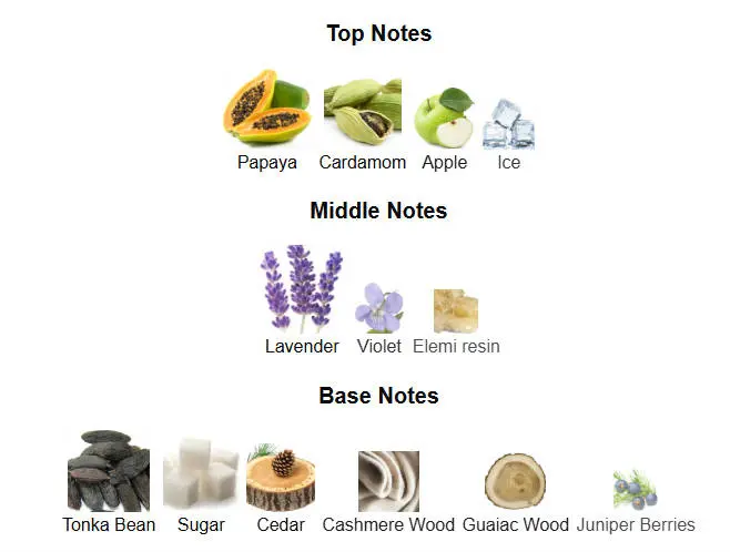 Crafted with a blend of bergamot, cinnamon, green apple, lavender, orris root and cedar notes that create an irresistible aroma. The scent is further enhanced with peony and violet notes that add an alluring touch to the fragrance.