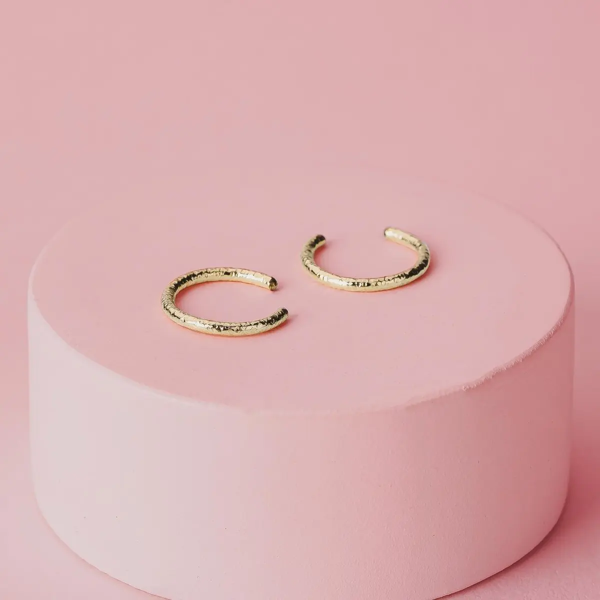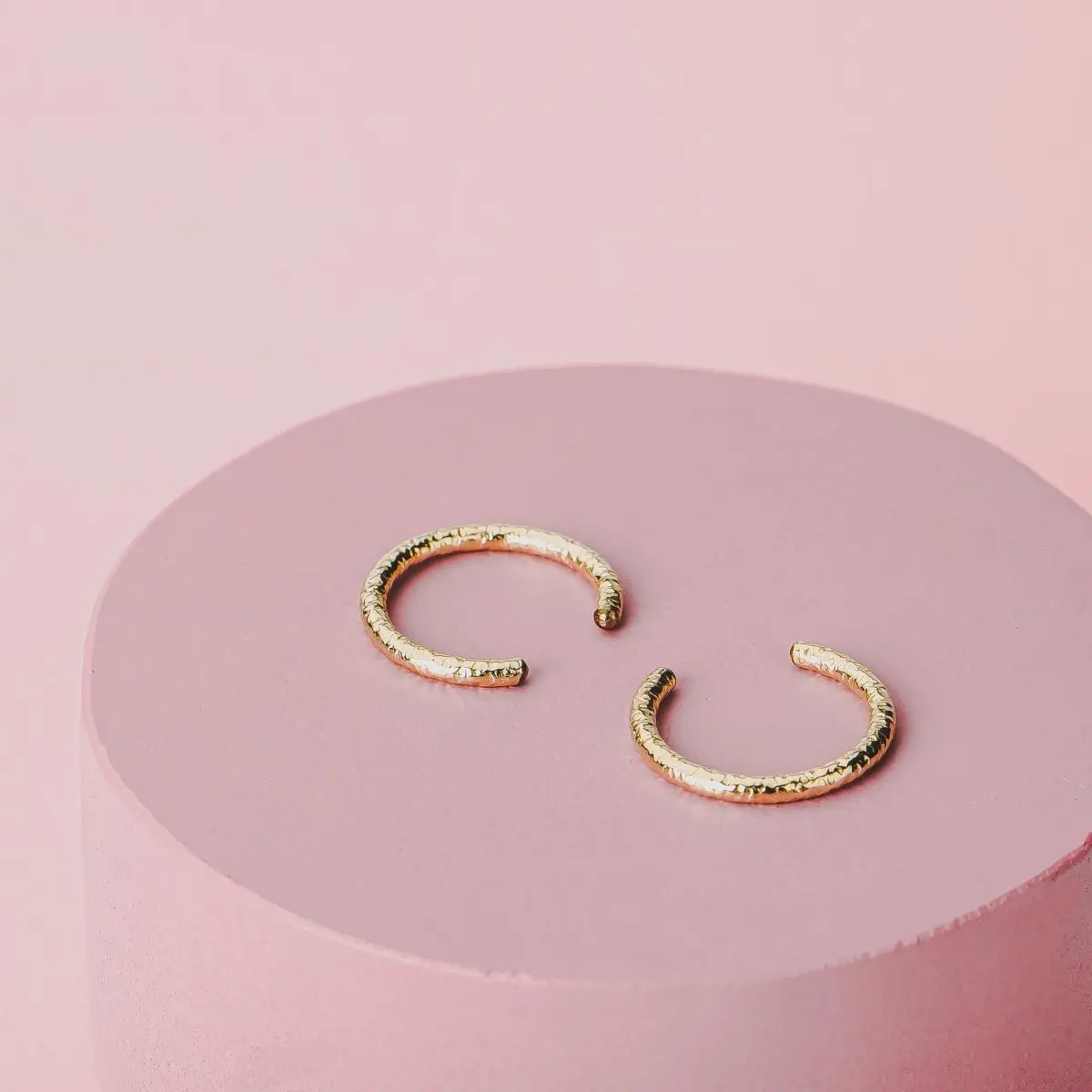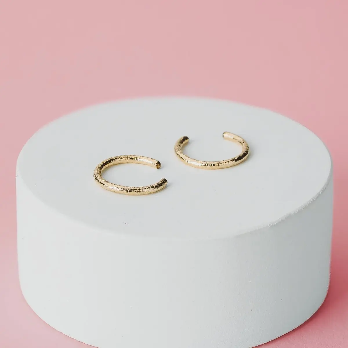 Don't let a lack of piercings cramp your style! Our sleek and durable sparkle pattern ear cuff is here to save the day. Simply slide it on from the top of your ear, give it a little squeeze if necessary, and voila! Instant ear bling. Plus, each cuff is handcrafted just for you in your choice of Sterling Silver, 14k gold fill, or 14k rose gold fill. It's the perfect accessory to add some sparkle to your look without the commitment of a piercing.