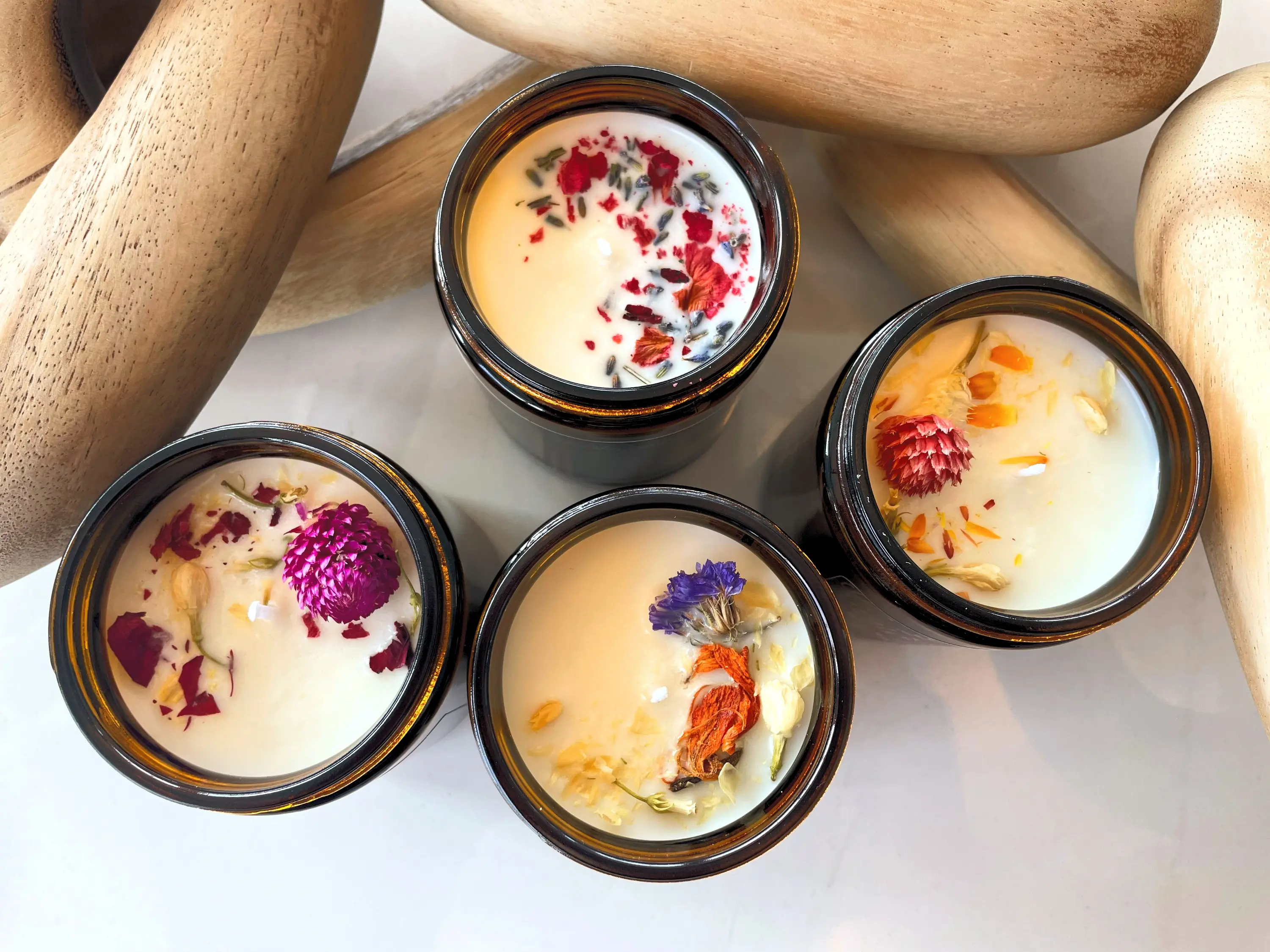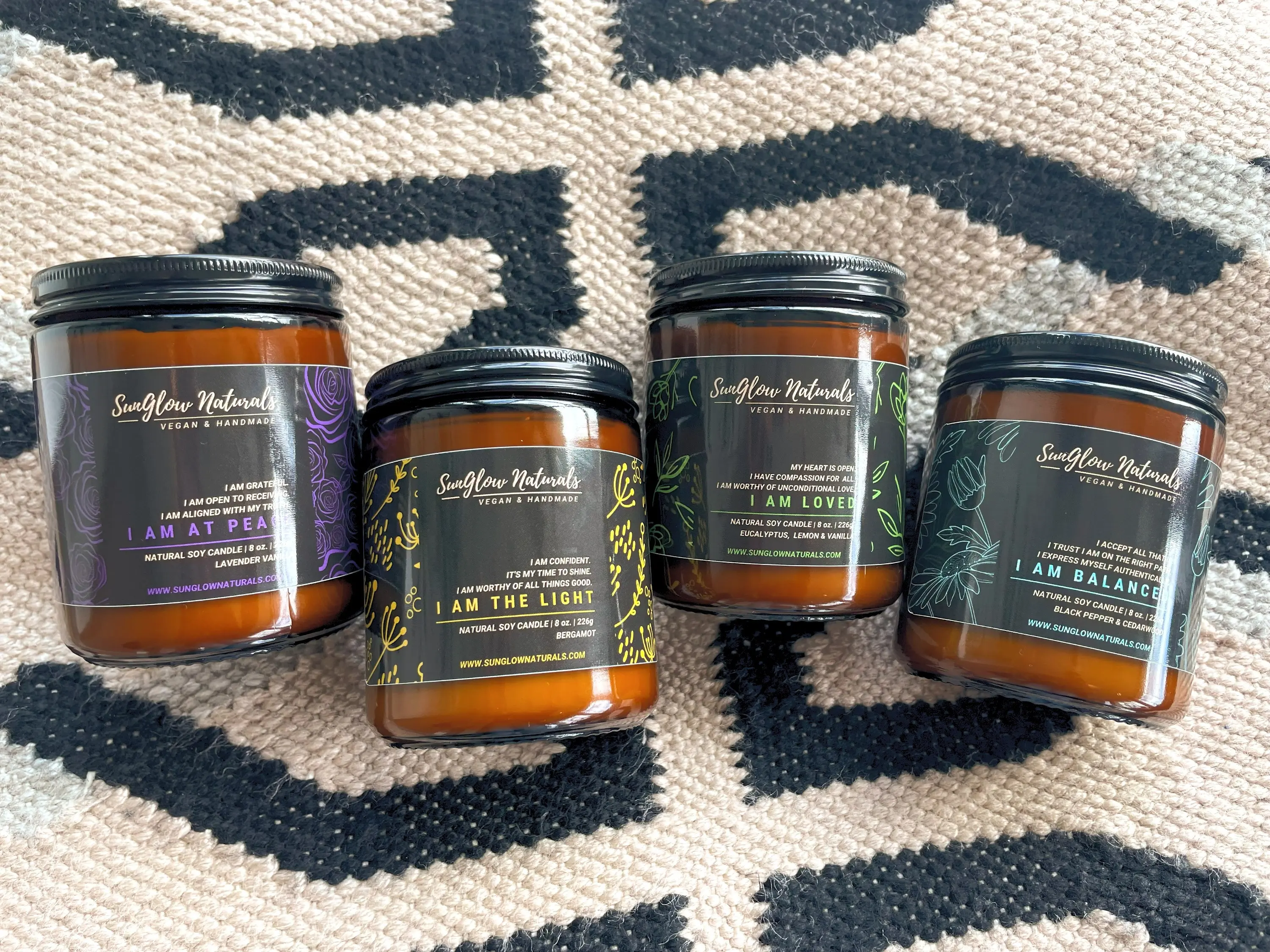 Affirmation candle to cultivate more self-love, "MY HEART IS OPEN, I HAVE COMPASSION FOR ALL, I AM WORTHY OF UNCONDITIONAL LOVE." Enhance your self-care routine with our natural, vegan soy candle. Enhance your self-care routine with our natural, vegan soy candle. This candle is infused with the scents of Eucalyptus, Lemon, and Vanilla. Adorned with an assortment of dried flowers, this 8 oz. candle emits a delightful, natural fragrance. Nurture your spirit with this blend of intention, beauty, and sustainability.