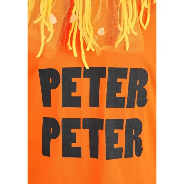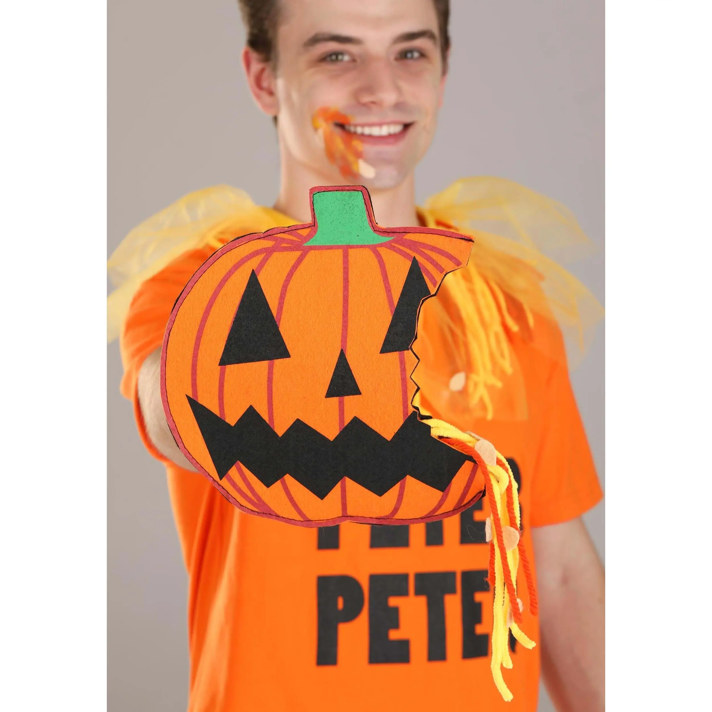 Easy, hilarious, unique: It doesn't get better than those three qualities when it comes to a winning Halloween costume! This exclusive Peter Peter Pumpkin Eater Costume Accessory Kit includes an orange crewneck T-shirt that reads "Peter Peter" on the front in black letters. The felt and yarn fabric collar attaches in the back, and the set comes with a felt pumpkin that appears to have had a bite taken out of it. A band across the back secures it to your hand.