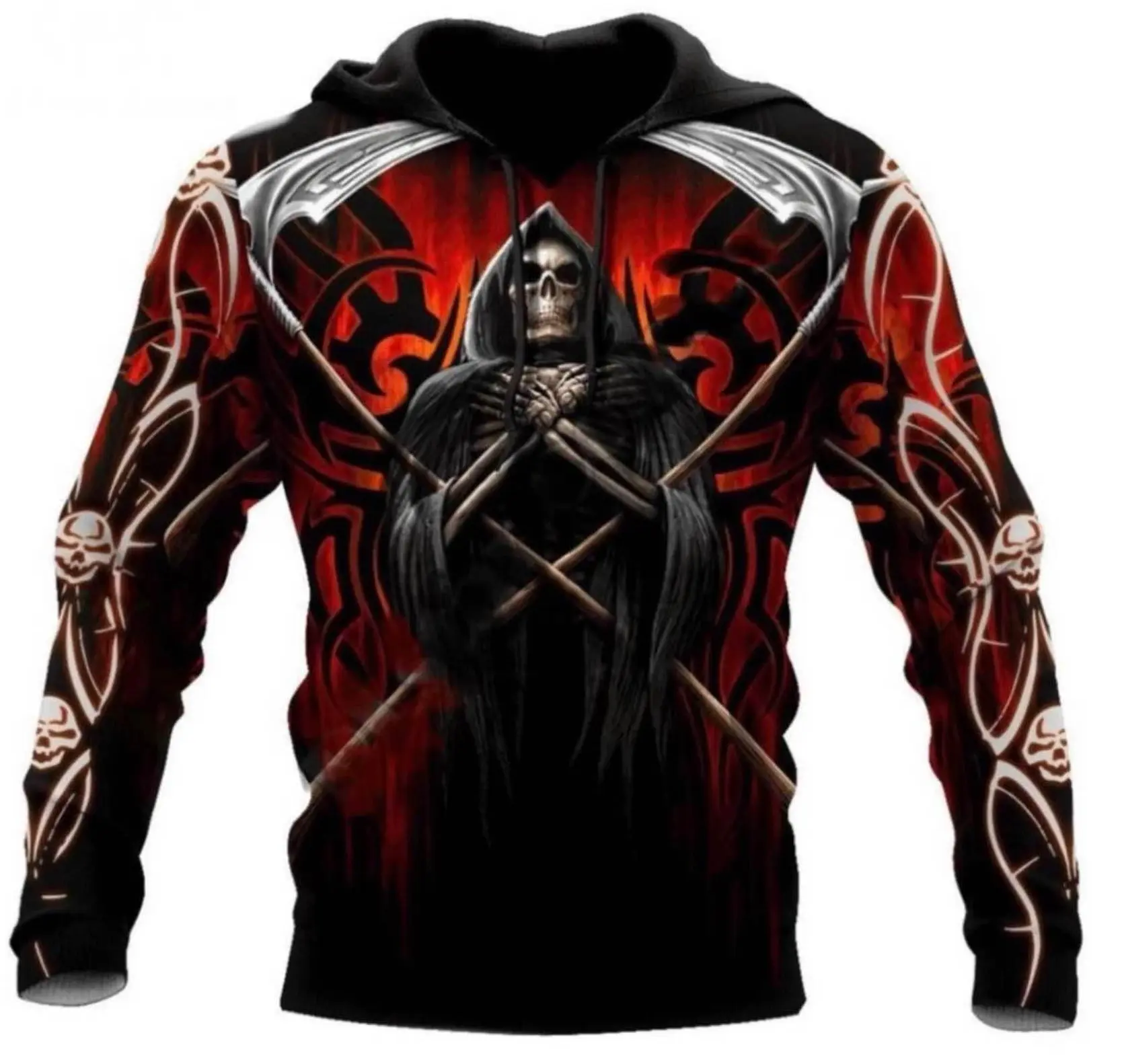The Grim Reaper design adds a touch of edginess to your look, making it a great choice for those who want to stand out from the crowd. The high-quality materials ensure that your hoodie will last for years to come.
