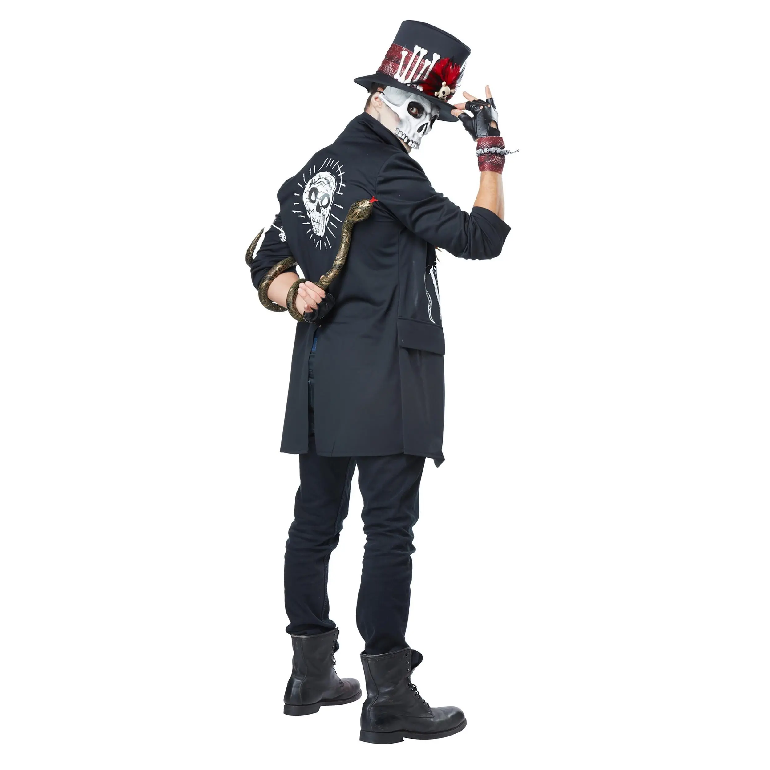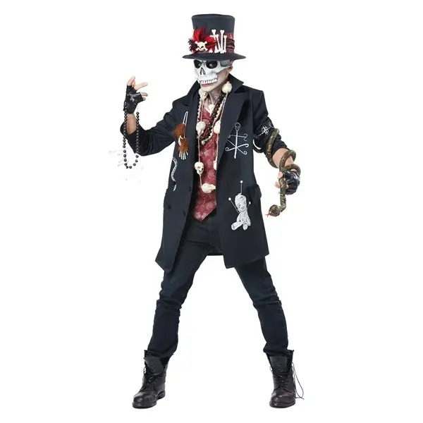 With a stylish suit coat, and macabre details that only a true voodoo practitioner would show off, no one is going to have any trouble identifying you as a master of the dark arts. A molded skull mask and foam hat will keep your real identity safely hidden, and printed details and a false vest front add just the right touches. Add a few prop accessories like a snake and a voodoo doll (depicted accessories sold separately), and you're sure to find yourself casting real hexes in no time. Give your loved ones a warning before you put on this costume, because we're sure there's going to be some wicked spells going down!