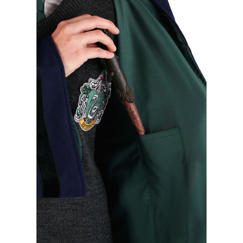 If you're interested in taking us up on the Butterbeer offer, then dress accordingly. The officially licensed vintage Harry Potter Hogwarts Slytherin robe is exactly what you need in order to achieve the swanky Slytherin appearance. There are few magical costumes that can transform you fully with nothing more than a single robe, but somehow that's just the ticket, here! The long robe features a Slytherin House Crest patch and a metal claw clasp. An attached hood in back completes the magical look. Now, no tricking the Slytherins by wearing a robe outside your House! That would just be wicked!