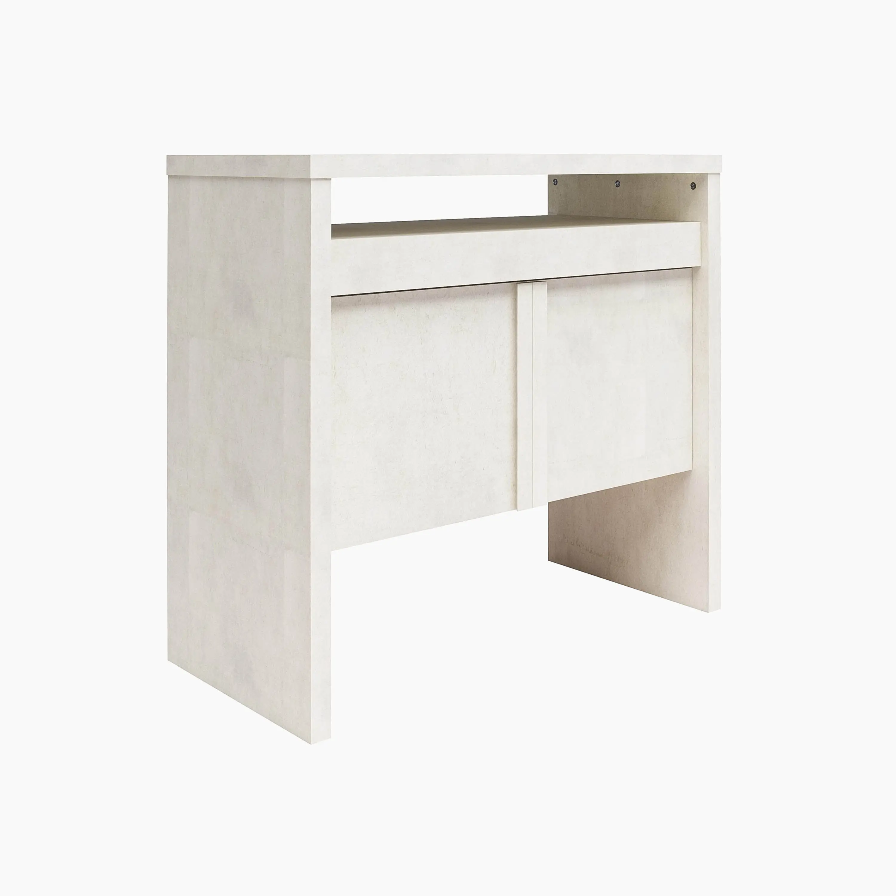 Neely Slide Out Desk by Mr. Kate - Textured White Plaster and Natural Wood Tones - Multipurpose Slide-Out Desktop and Hidden Storage