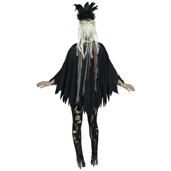 The poncho with its off-white bone print is an easy yet eye-catching look. You can layer shirts underneath on chilly October nights. For a fancy twist, pair it with a pencil skirt and high heels if you want to take the poncho in a casual direction simply pair it with black jeans. Now, when you're ready to ramp up your spooky look on Halloween night you'll look awesome with one of our voodoo wigs and a Voodoo skull staff. Want to escape boring human trifles and become a Voodoo Queen? It's all about the look!