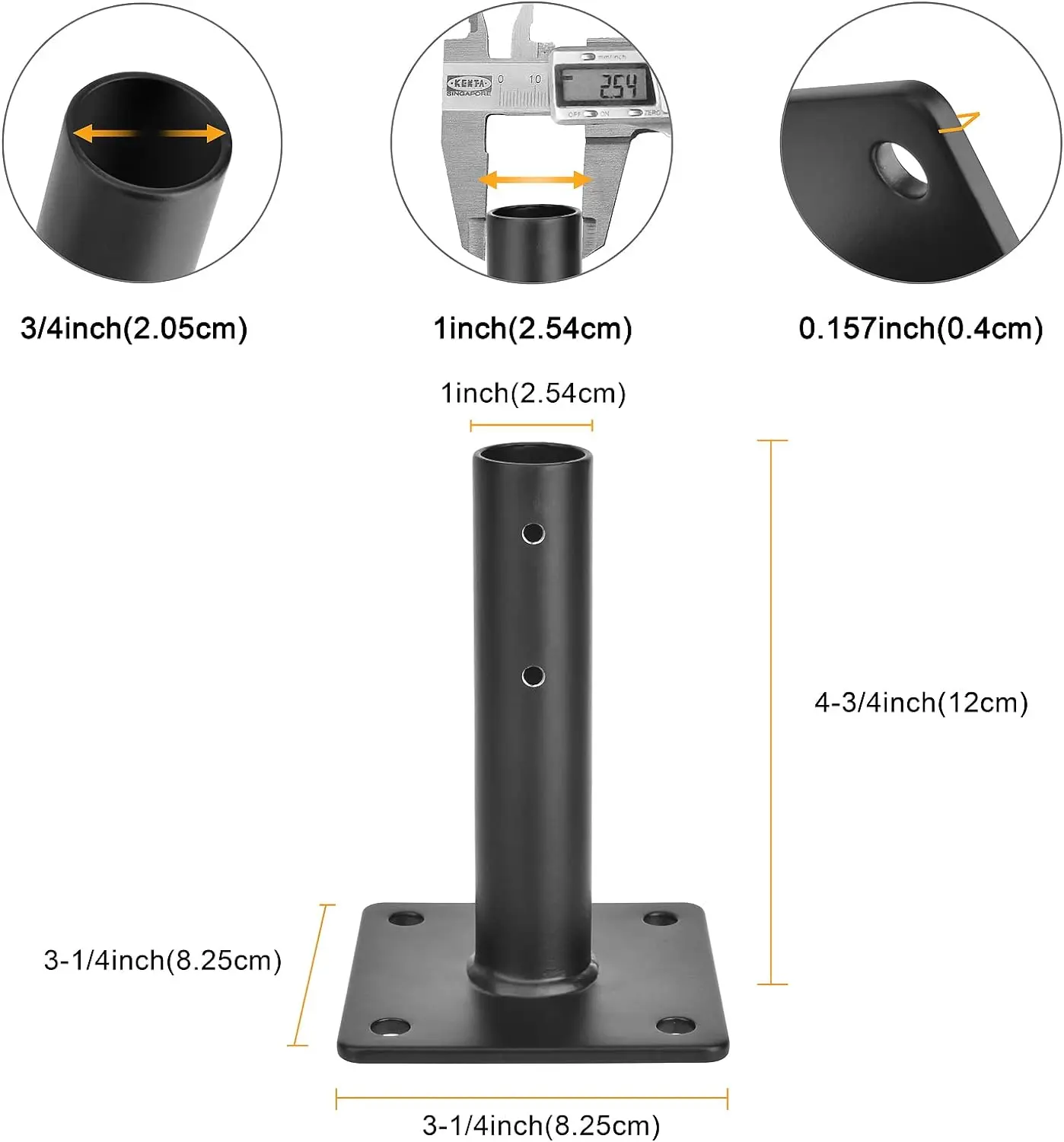 ·Post Weathervane Bracket Dimensions: 3.25' L x 3.25' W x 4.72 ' H-Inch.Mounting plates measure: 3-1/4-Inch x 3-1/4-Inch ,Base plate has 4 pre-drilled holes in each corner and can hold the weathervane securely in high winds.