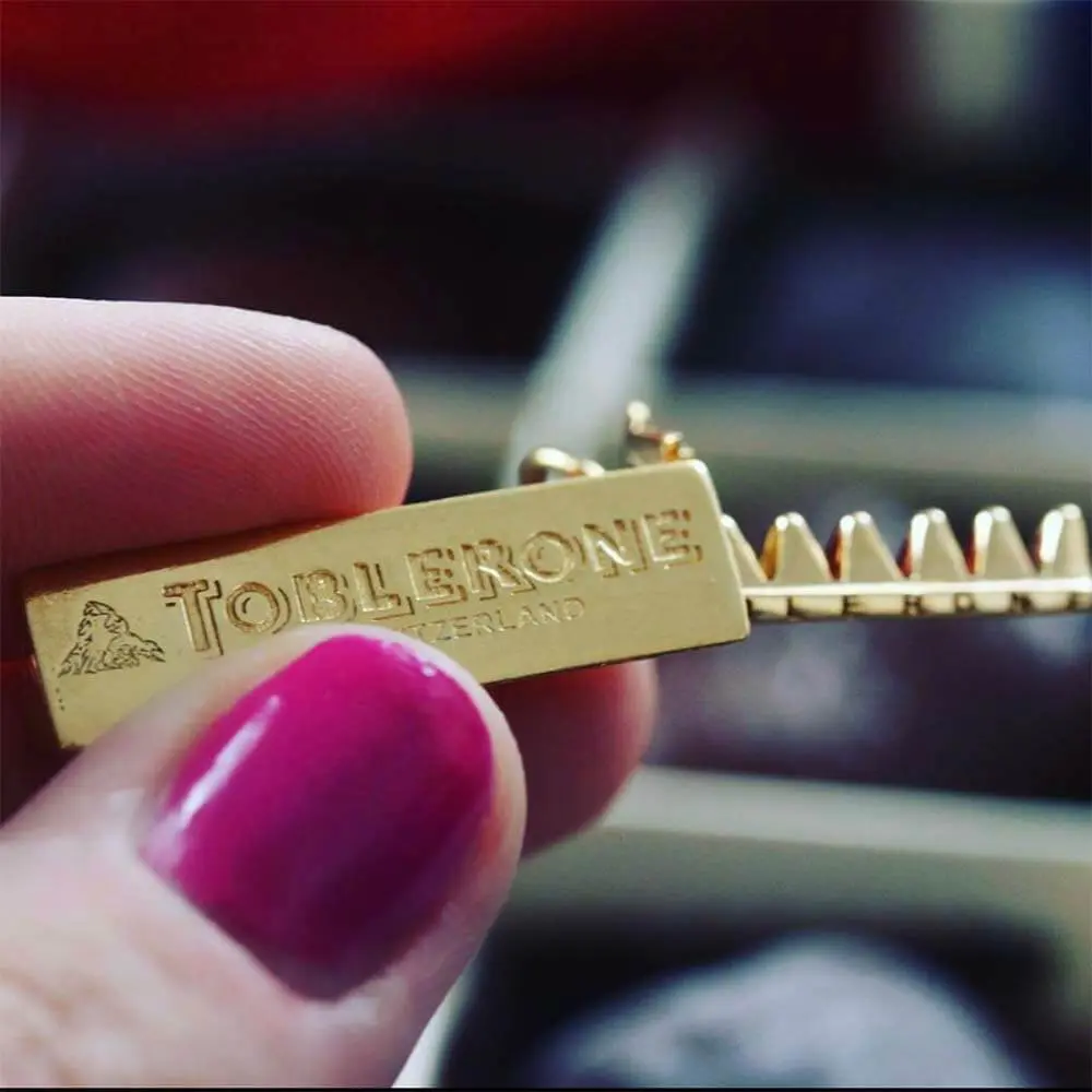 Purchased as a gift or for mid-flight nougat nibbles, you can purchase extra-large 12 peak chocolate bars duty-free but your Swiss Chocolate Charm is the perfect miniature replica with eight peaks.