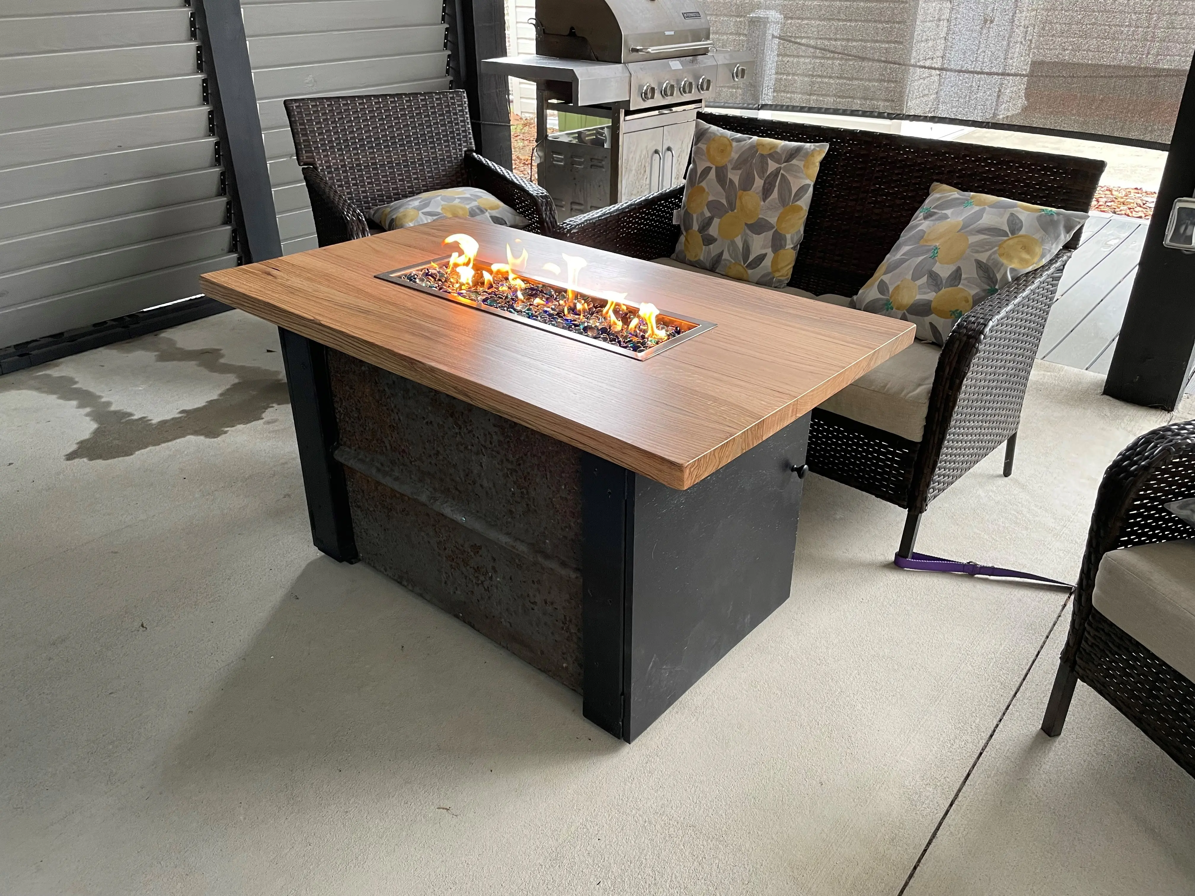 Elevate your outdoor space with the EasyFirePits DIY Linear Propane Tank-In-Table Gas Fire Pit Kit, the perfect addition to your patio or outdoor space.