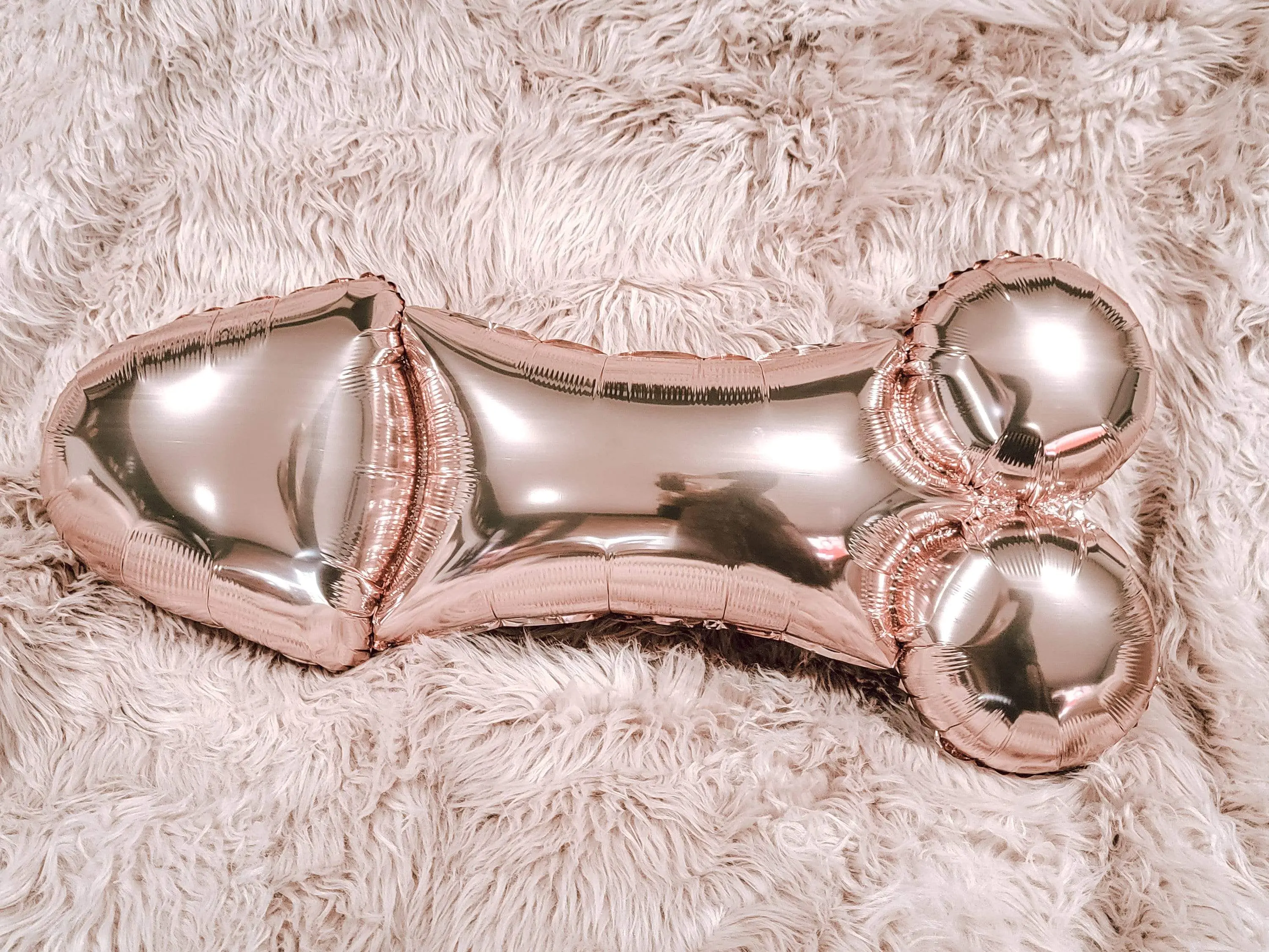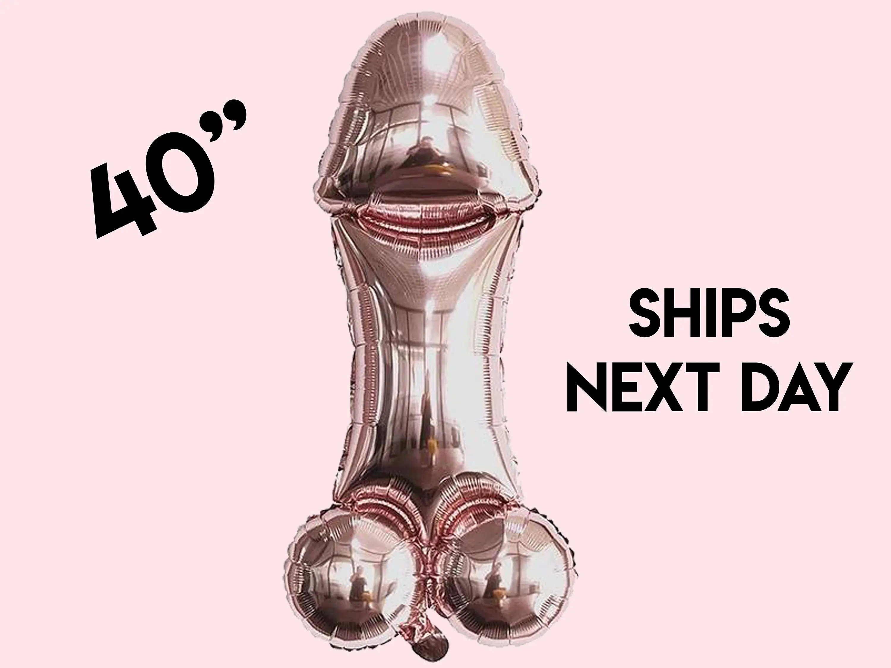 Level Up Your Bachelorette Party Decorations With this GIANT JUMBO mylar foil penis balloon. Hilariously gigantic and pretty with a glitzy rose gold metallic finish. This one balloon can bring all your decor together whether it's for a naughty bachelorette party in Vegas or a last penis forever theme.