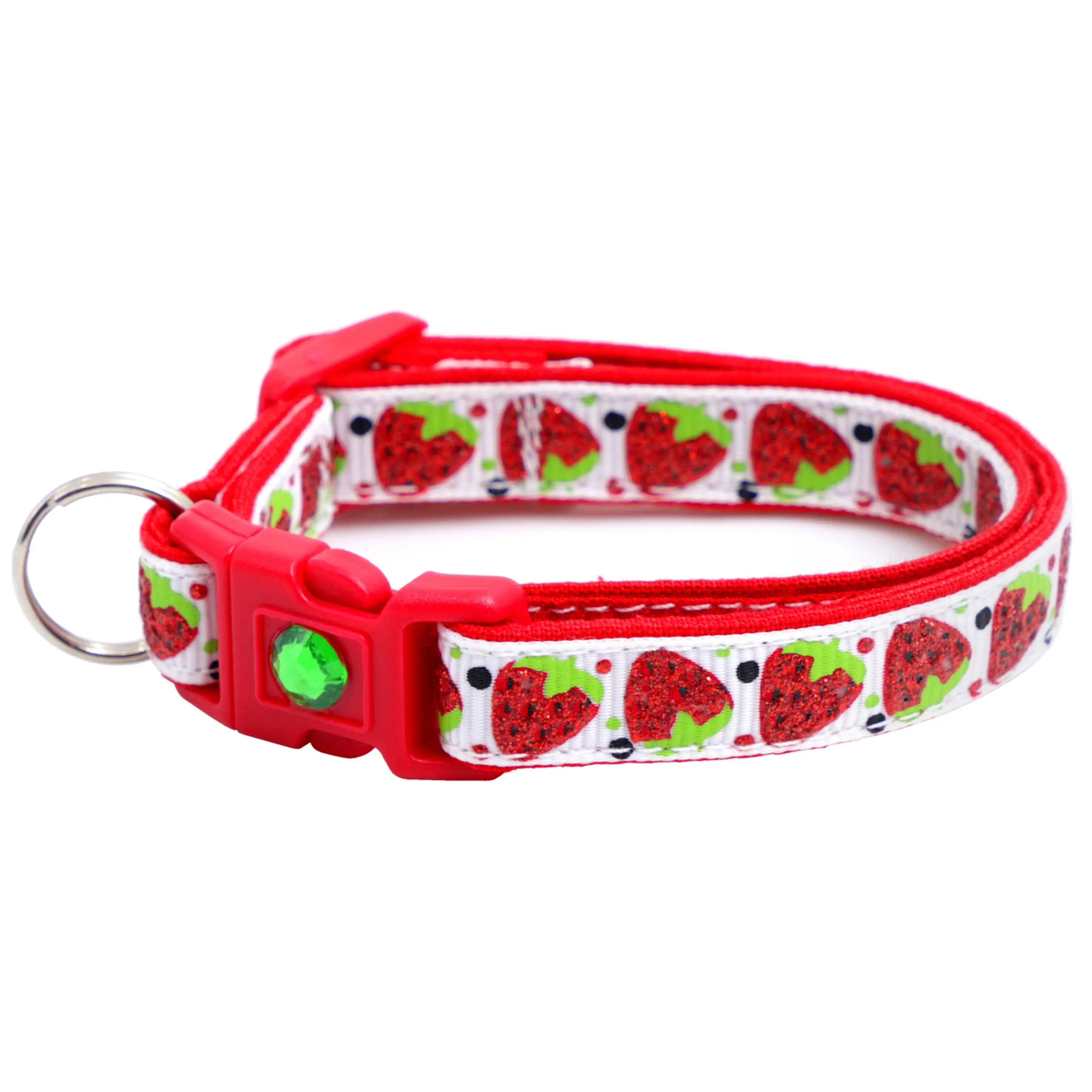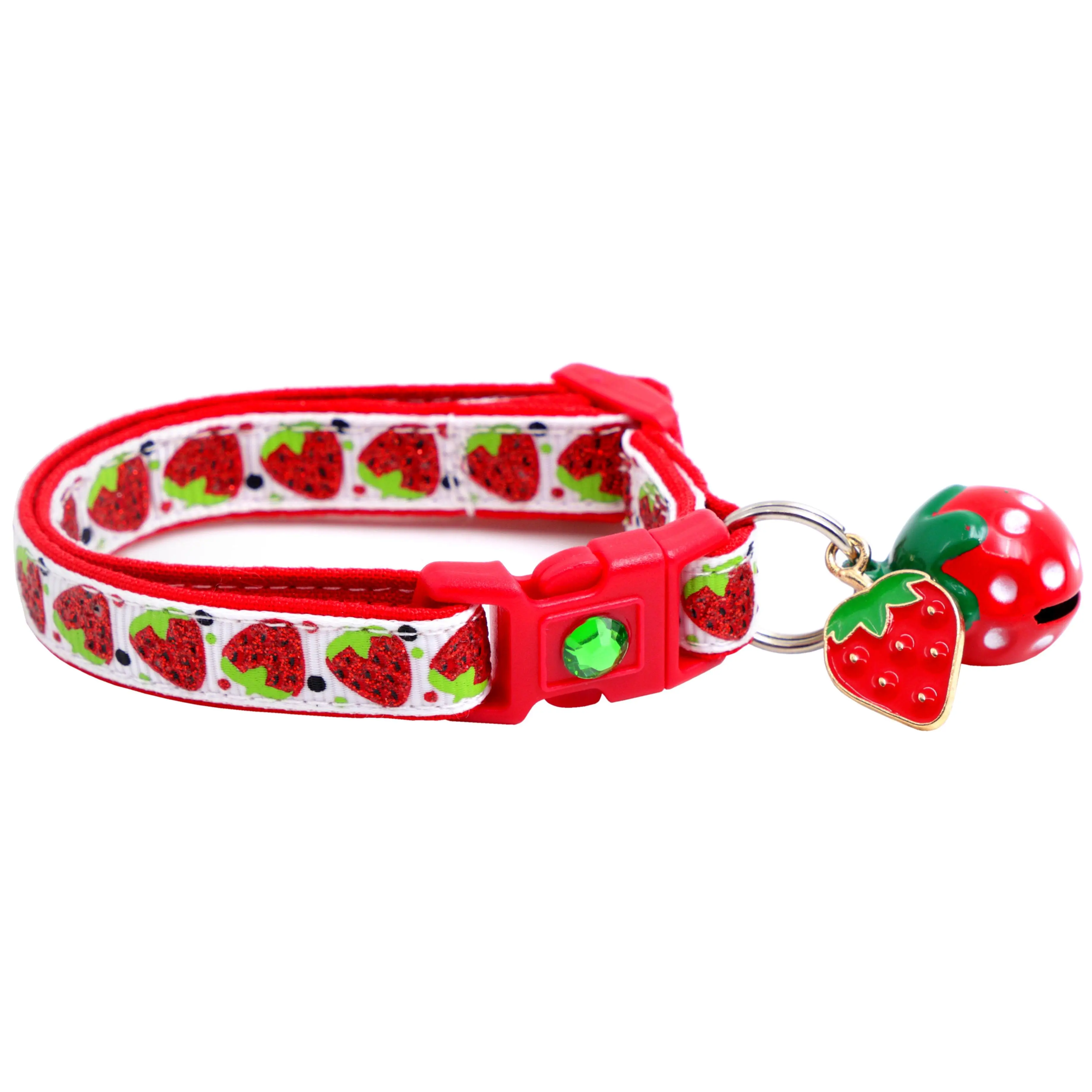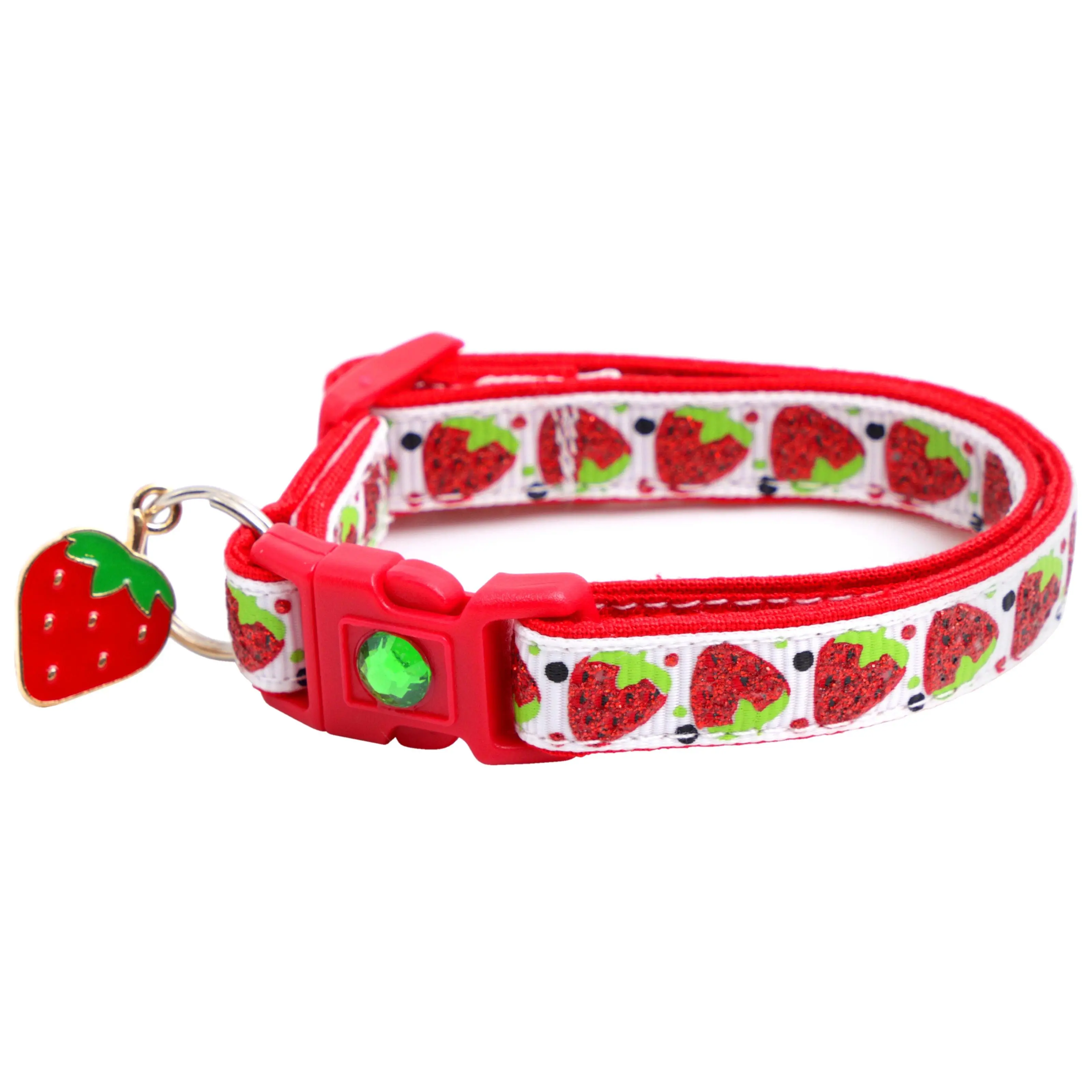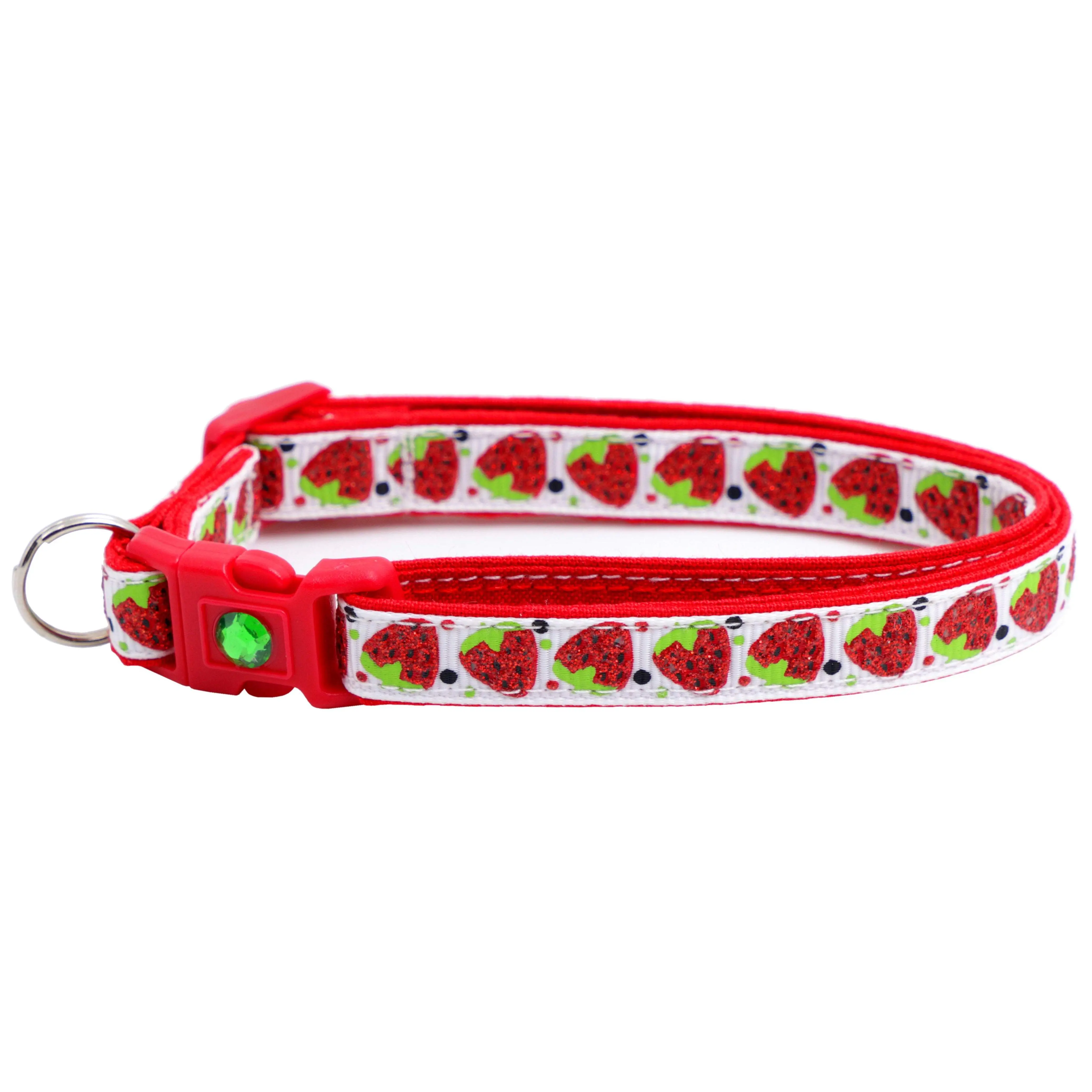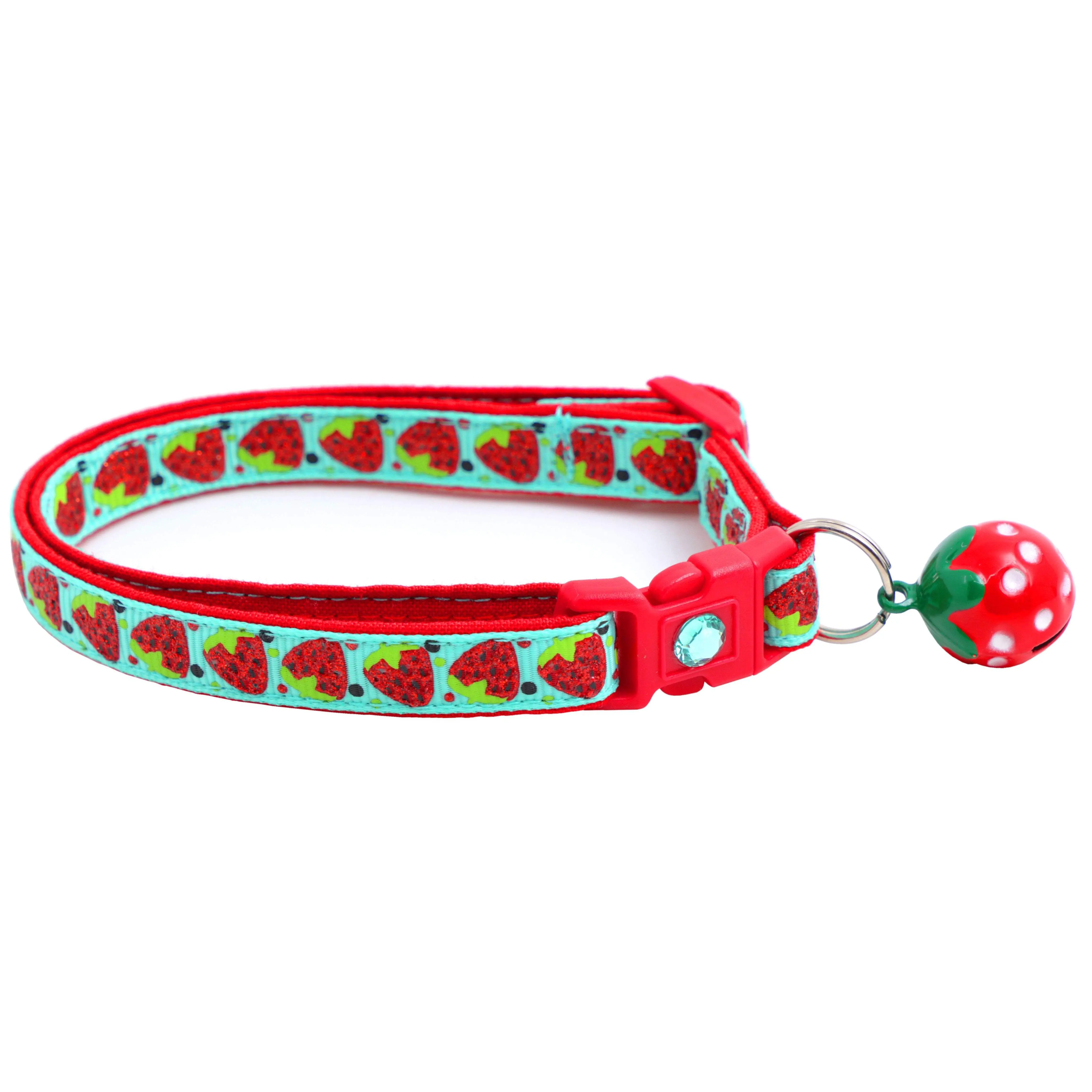 Strawberries Safety Breakaway Cat Collar with Jingle Bell and Charm by Pugs2Persians Fruit Berry Strawberry