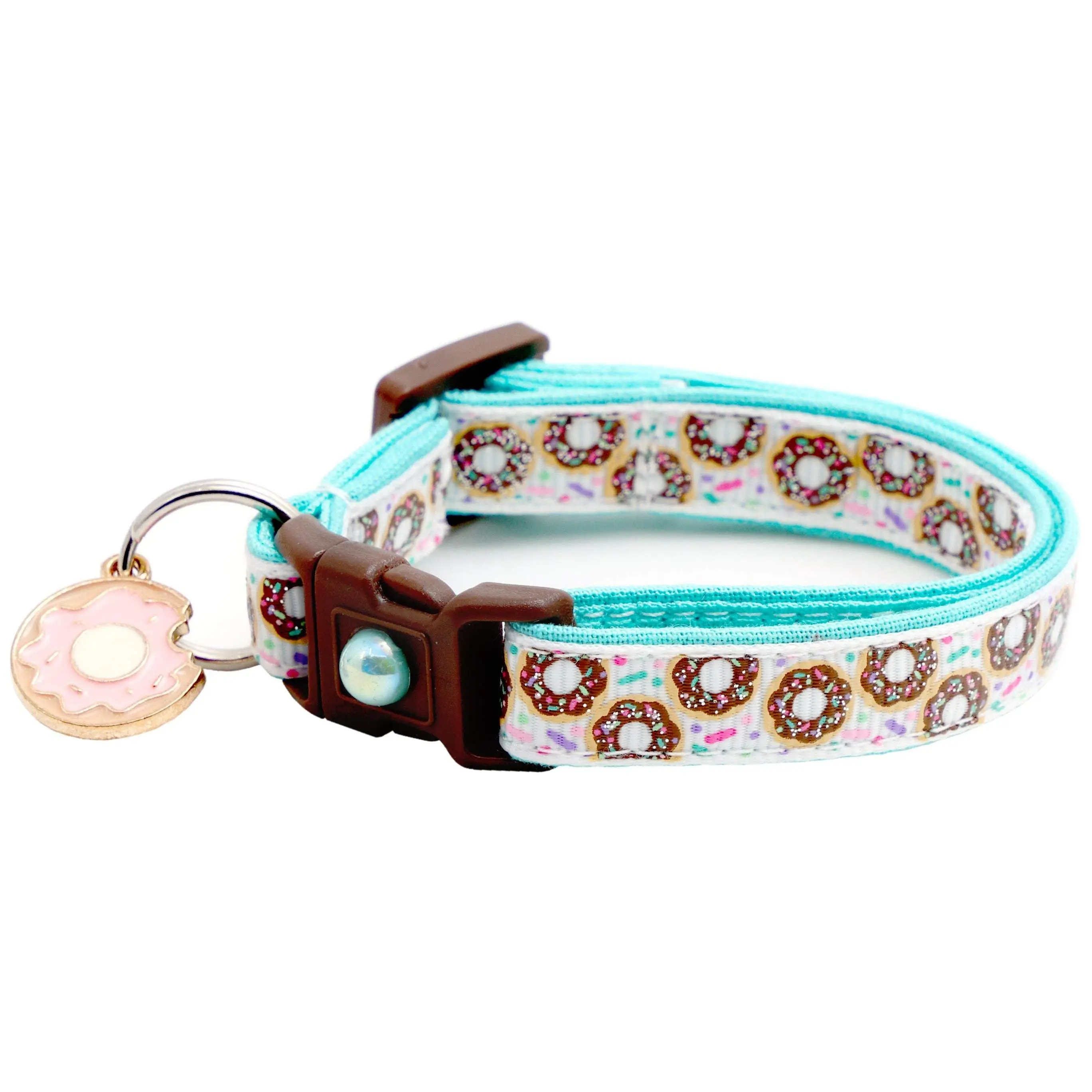 Sprinkle Doughnuts Breakaway Safety Cat Collar with Jingle Bell & Charm by Pugs2Persians Donut