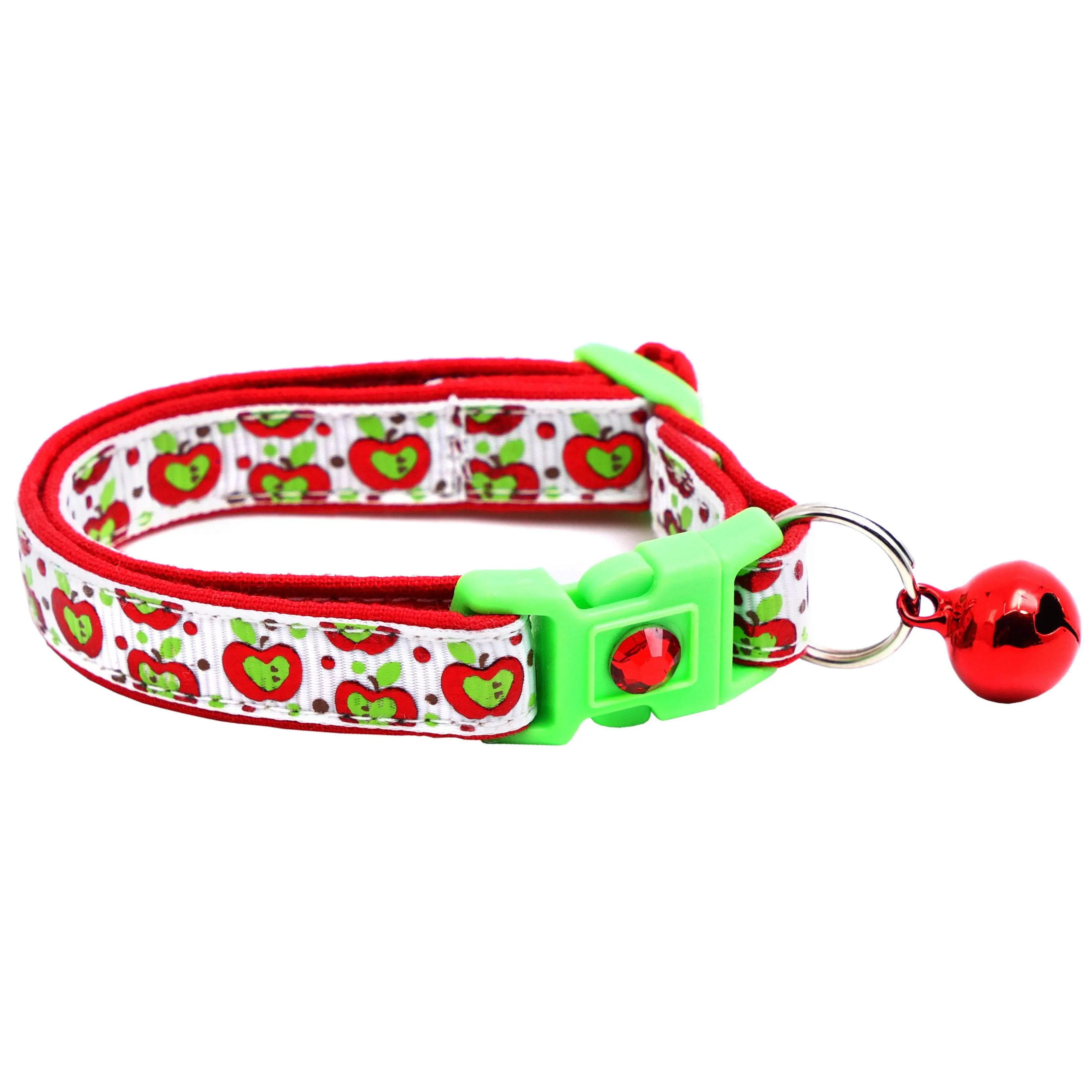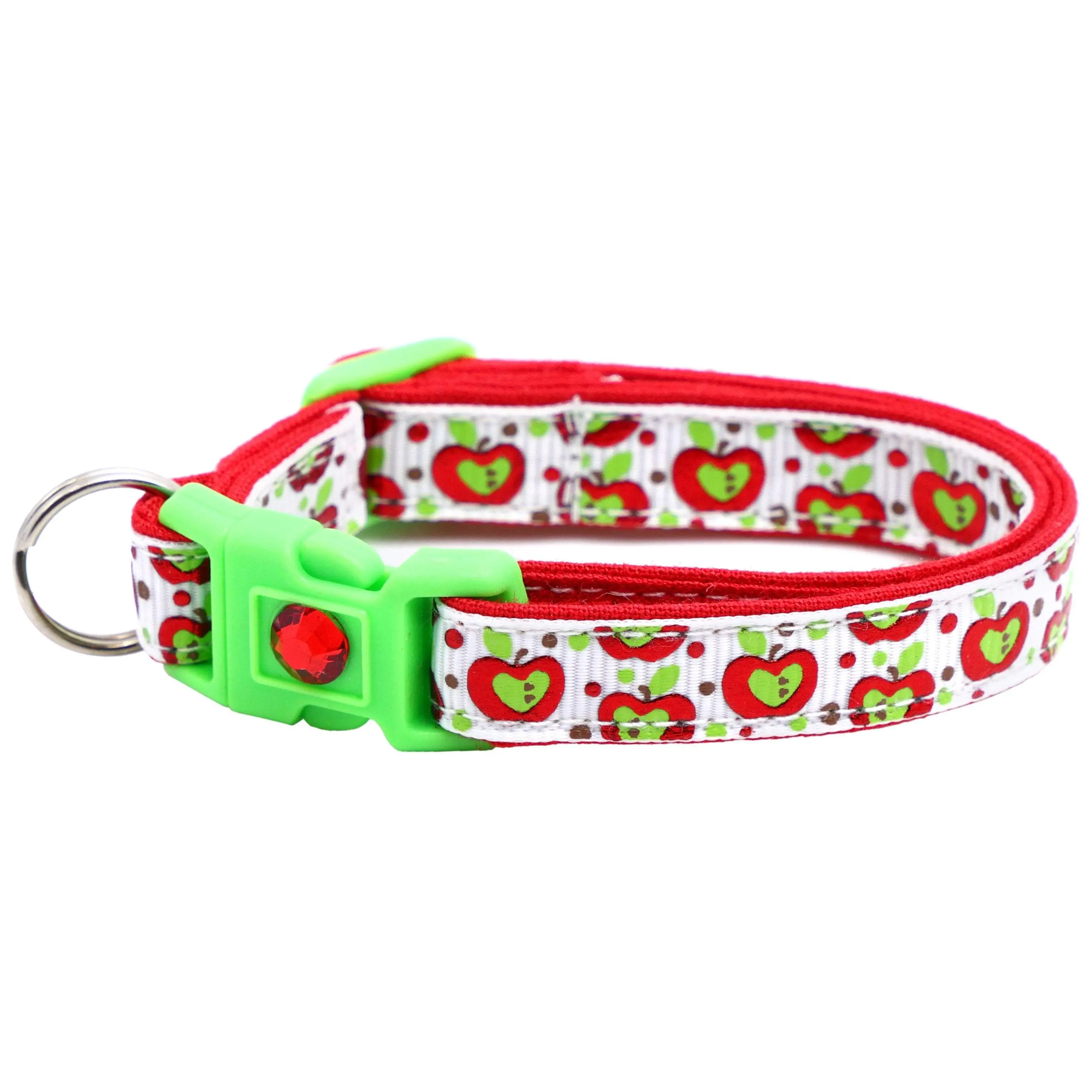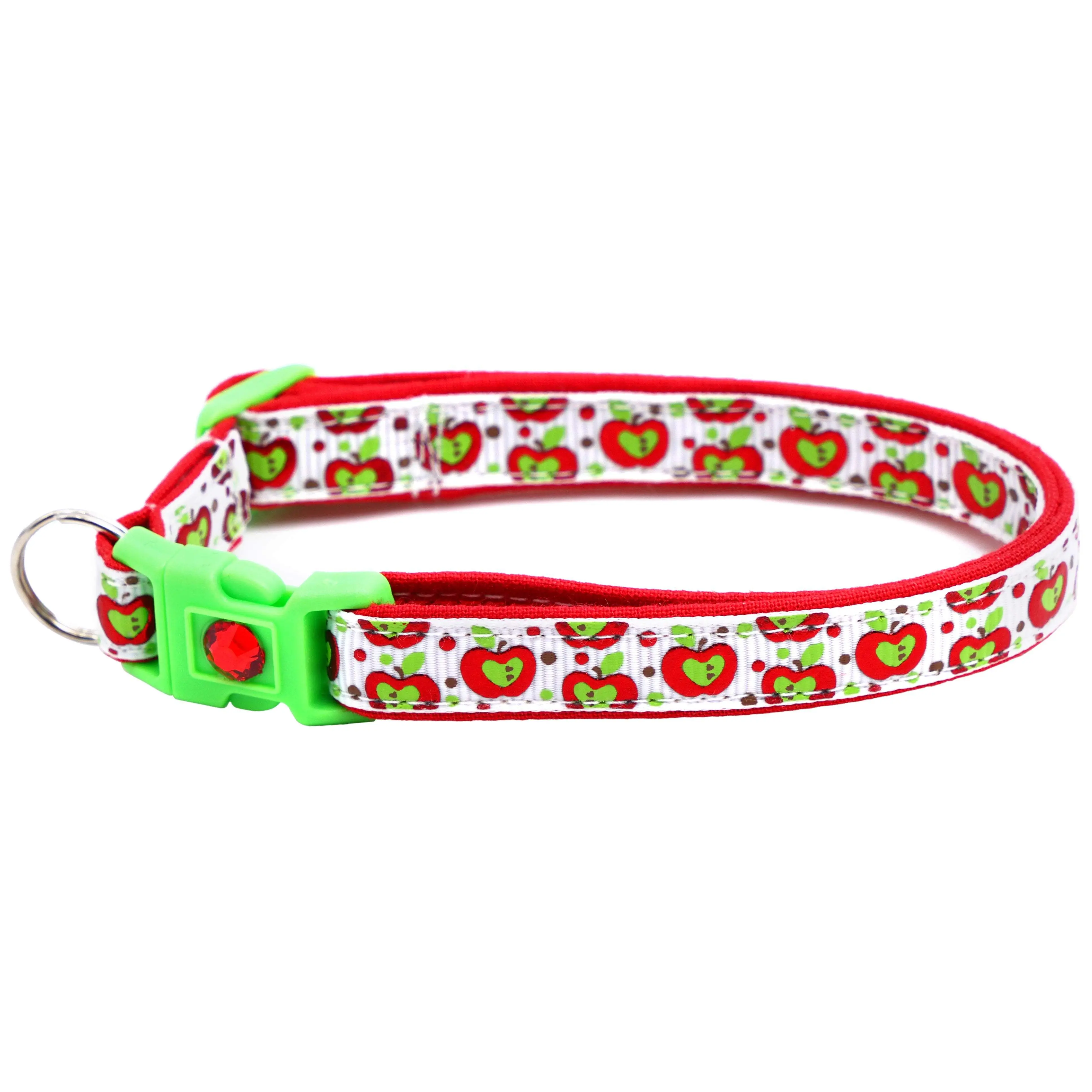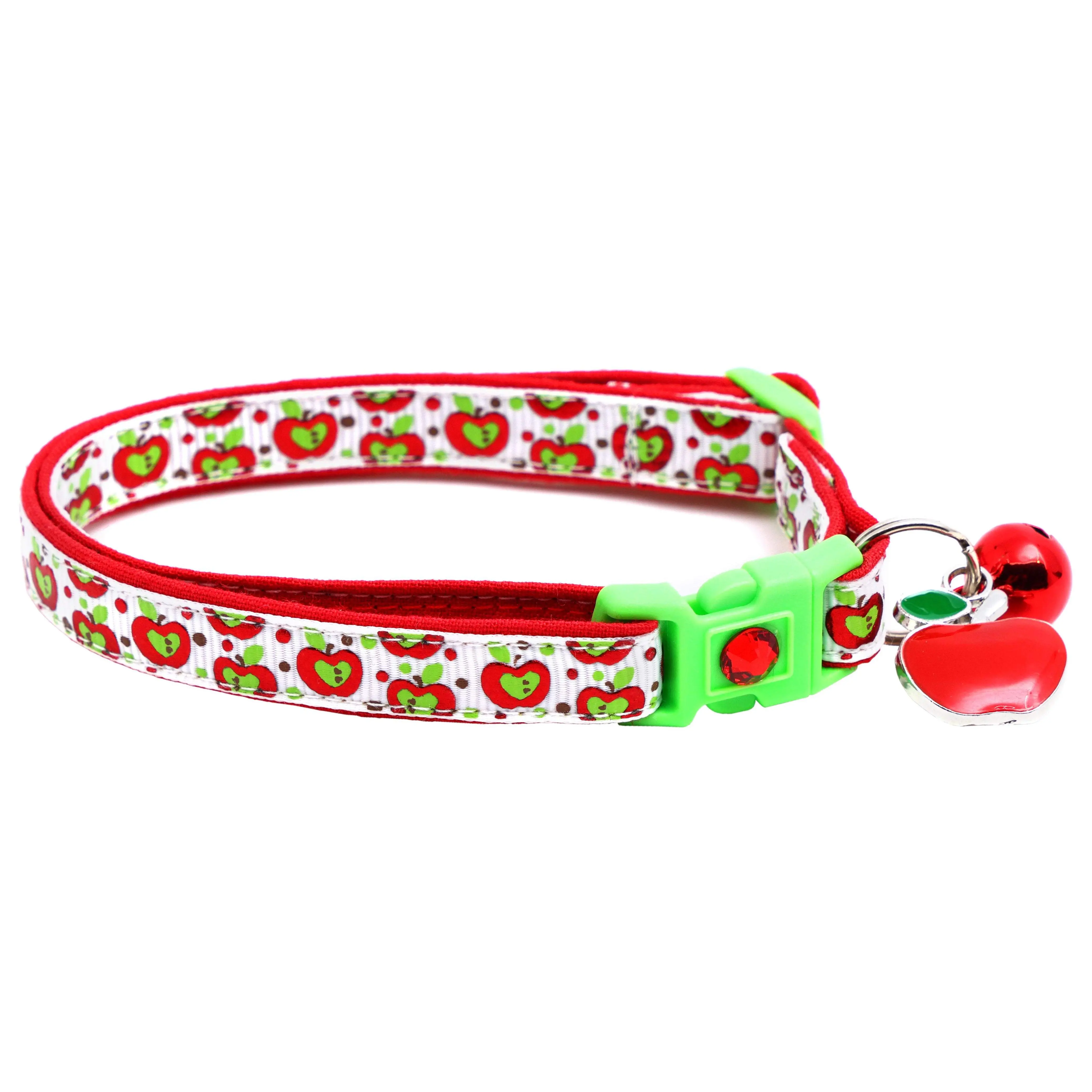 Colorful Red and Green Apples on White Safety Breakaway Cat Collar with Jingle Bell & Charm by Pugs2Persians Harvest Teacher