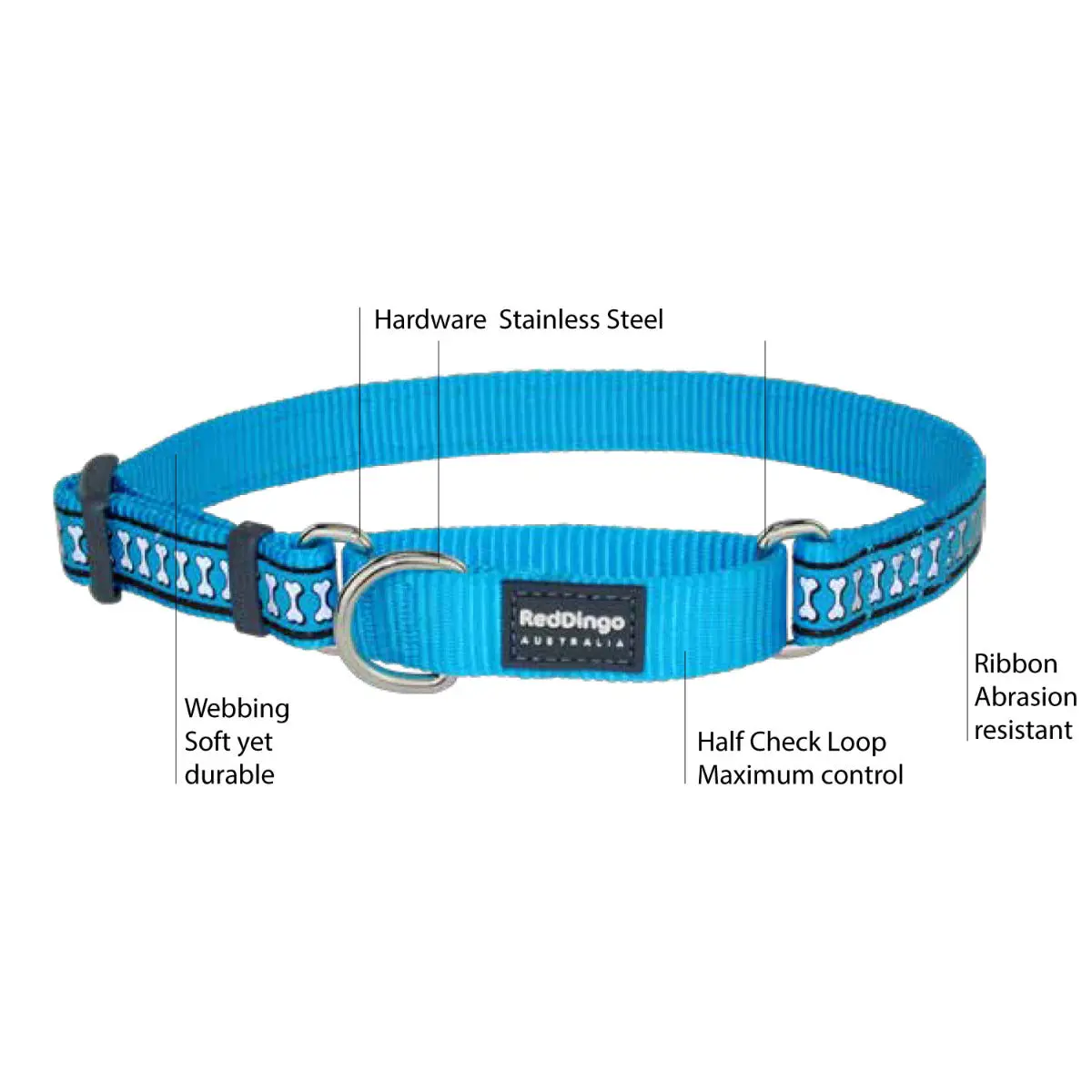 Keep your furry best friend safe with this Red Dingo Martingale Collar. Used with a leash or with your hand, the martingale collar tightens to give greater control and reduces the risk of a dog backing out of his collar and escaping. Safer than a choke collar. Made from premium nylon webbing with securely sewn seams, this soft and abrasion-resistant collar will provide your pup with the ultimate in long-lasting comfortable safety and style. Complement it with a Red Dingo Premium Pet ID for the perfect match!