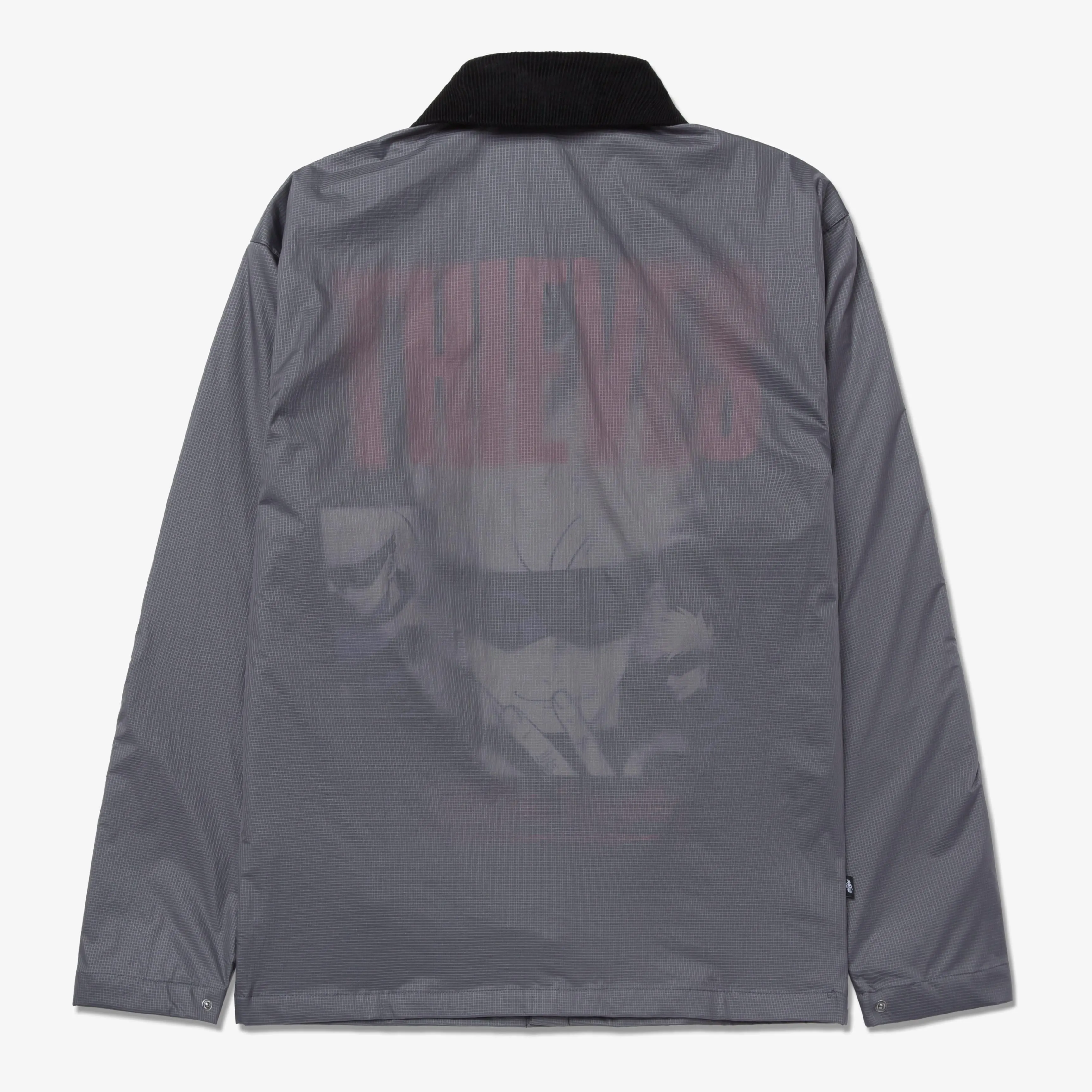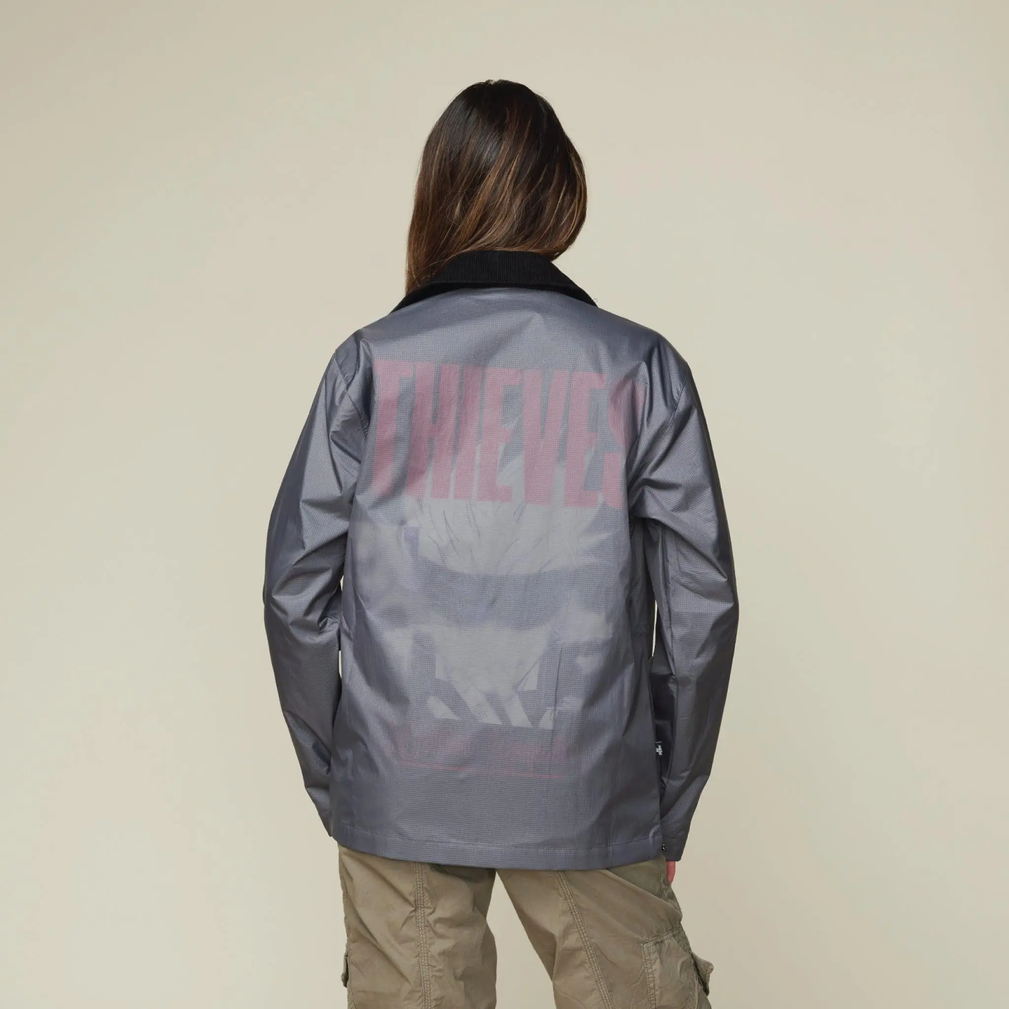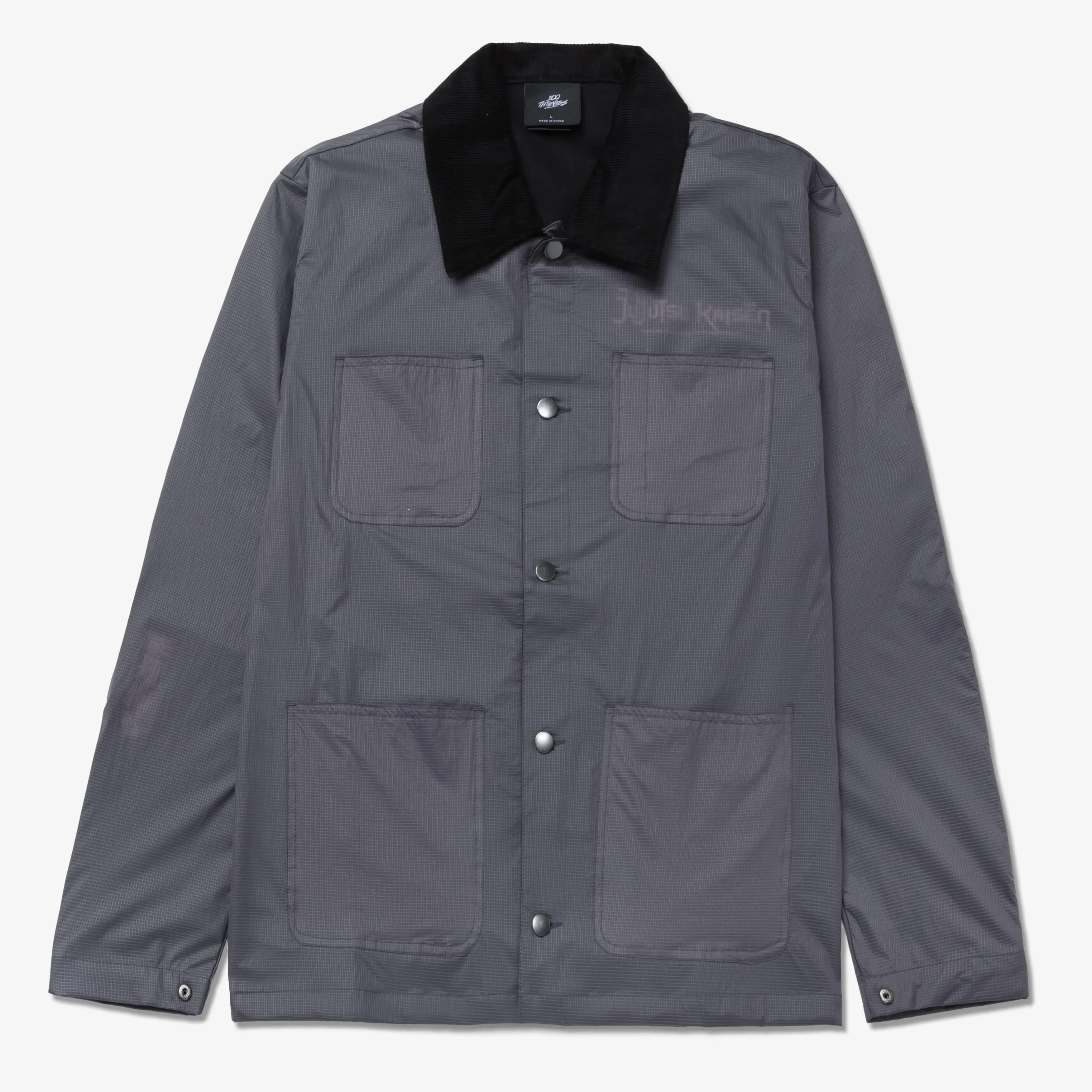 The Chore Coat is a classic piece that has been reinvented with semi-transparent Rip-Stop Nylon that is overlaid on cotton canvas. This style features patch pockets, a corduroy collar, and subtle graphic hits.