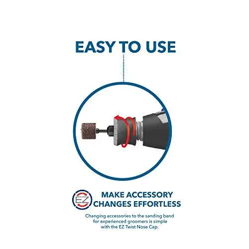 ·Multiple grooming options: 9 piece grooming accessory set, for multiple nail grinding options. Patented EZ twist nose cap makes accessory changes easy.