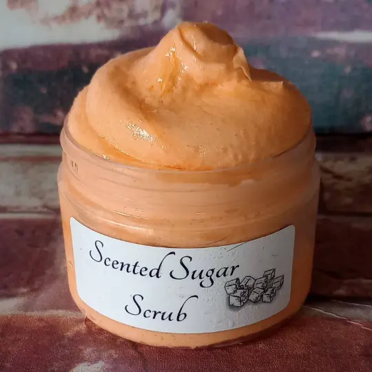 Scented Sugar Scrub Ingredients: Granulated Sugar, Purified Water, Coconut Oil, Sunflower Oil, Emulsifying Wax, Shea Butter, Stearic Acid, Cetyl Alcohol, Carbomer Otiphen Plus (natural preservative), Skin Safe Fragrances and Dyes.