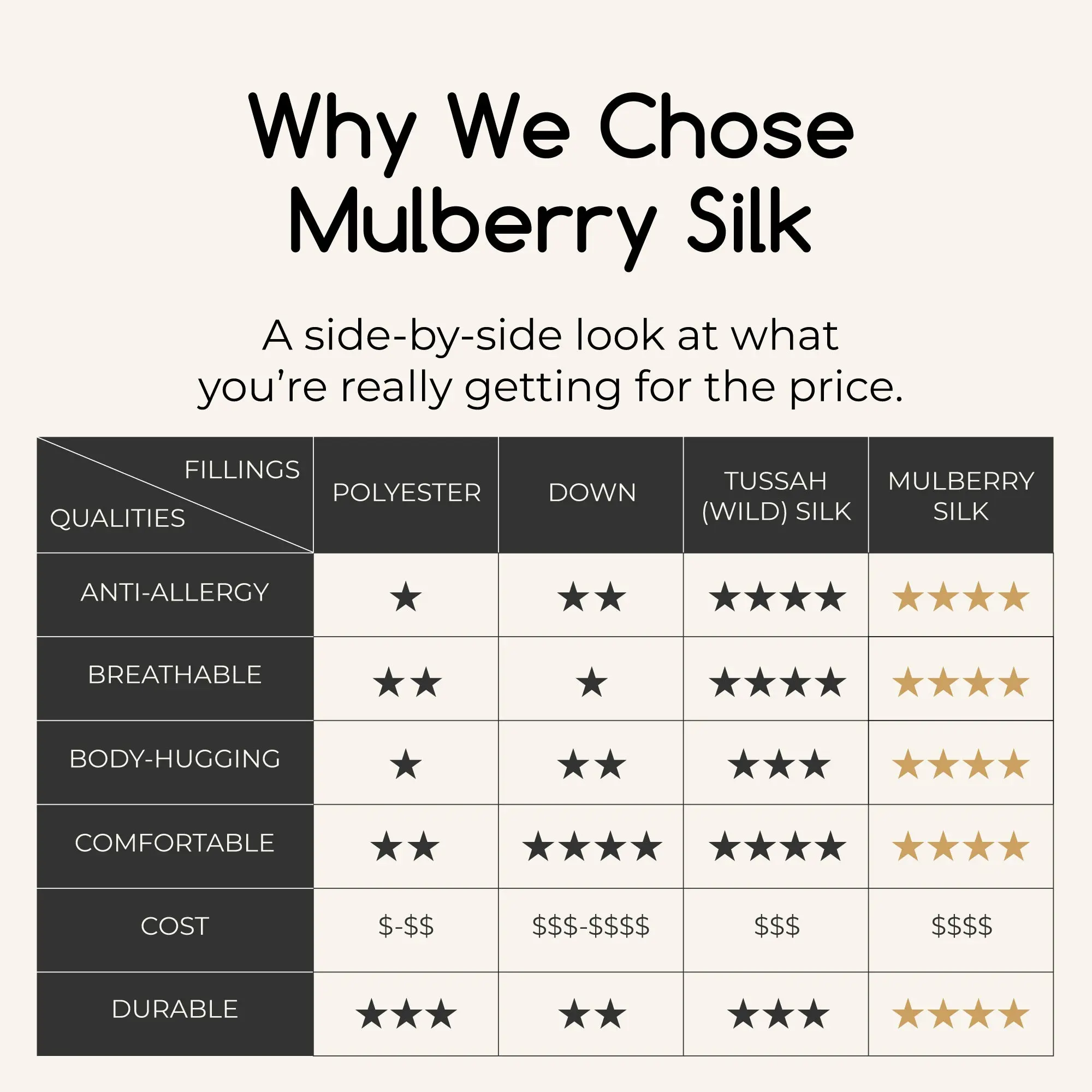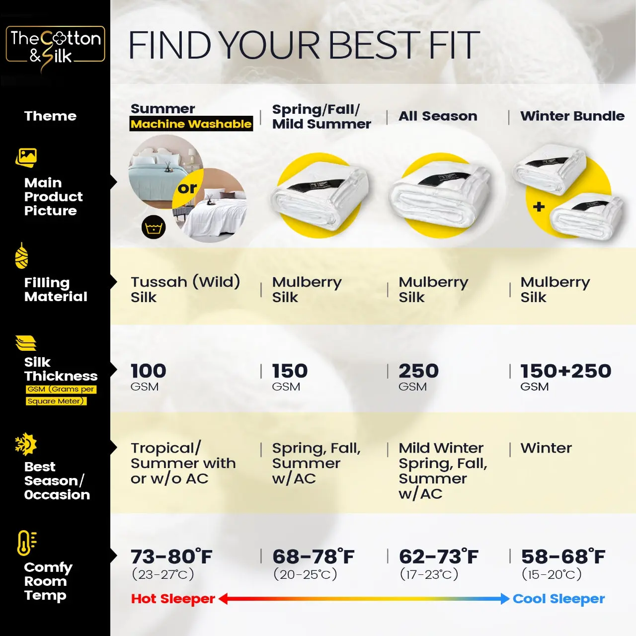 ·[MATERIALS] The filling is made from 100% premium long-strand mulberry-silk, which is soft, smooth, breathable, temperature-regulating, and body hugging. The shell is made from 100% premium breathable cotton.