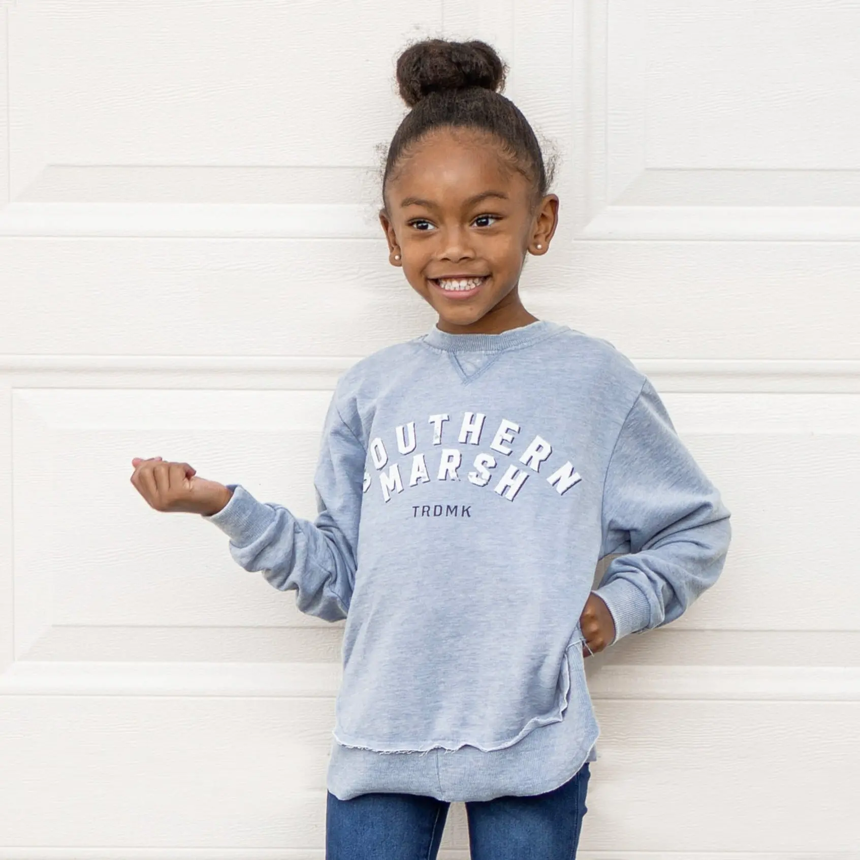 Your little one will love the Youth SEAWASH™ Rally Round Bottom Sweatshirt! Made with a poly-cotton blend, this crewneck is soft to the touch and makes the perfect layering piece on chilly days. The rounded bottom creates a flattering fit, while the ribbed sleeves and collar stretch to keep your child comfortable. With a raw bottom hemline and our bold Southern Marsh print across the chest, this sweatshirt will add a rustic touch to every outfit.