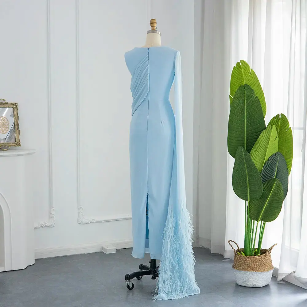 · Light Blue Elegance: The gown features a serene light blue color that exudes a sense of calm and grace, ensuring you stand out with timeless beauty.