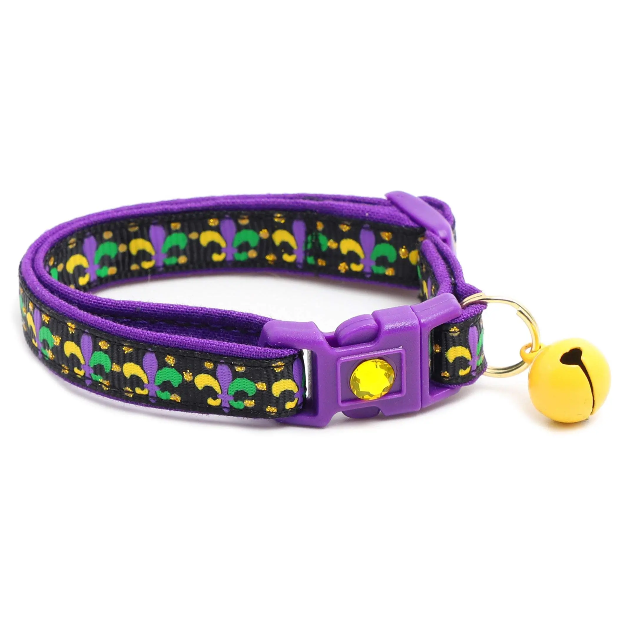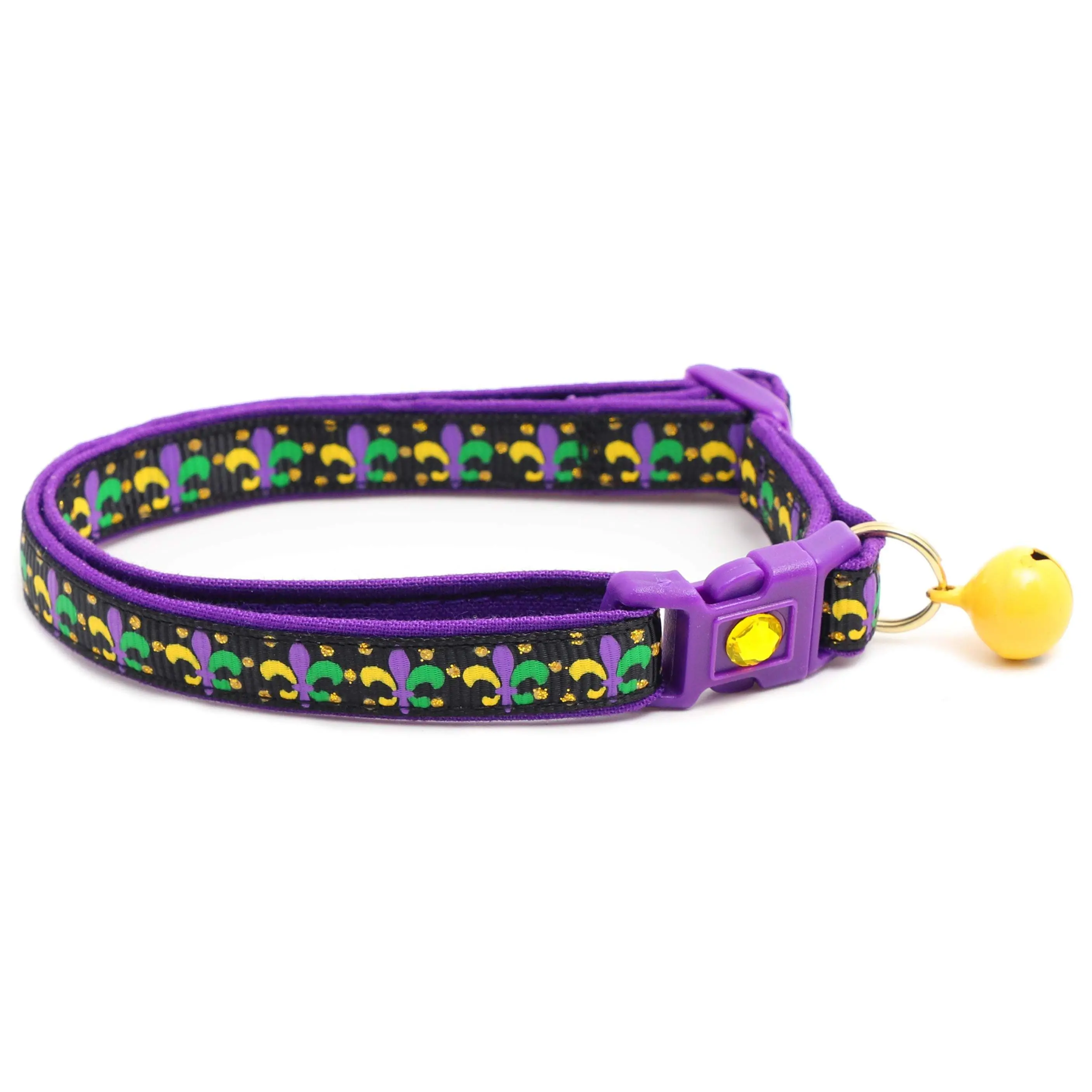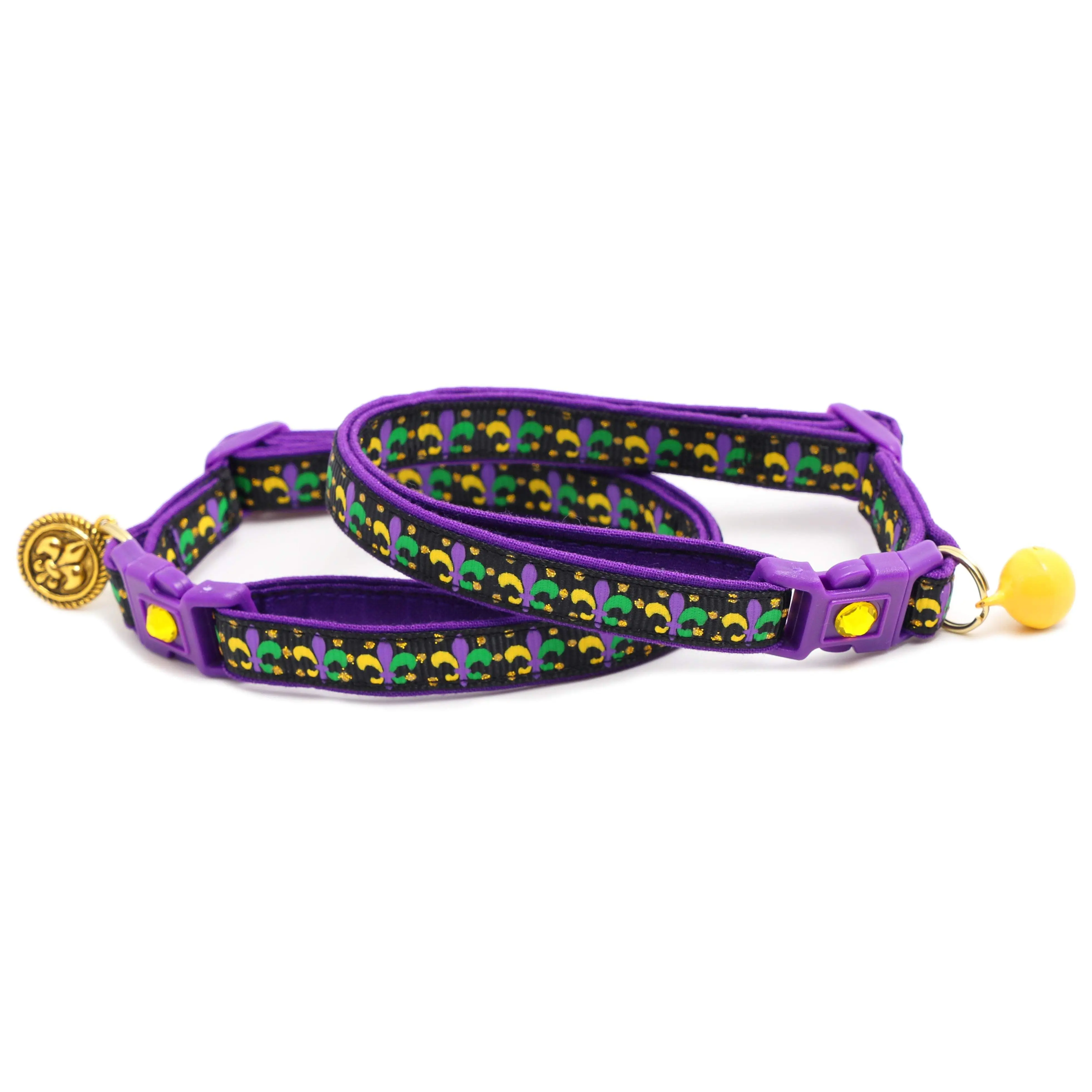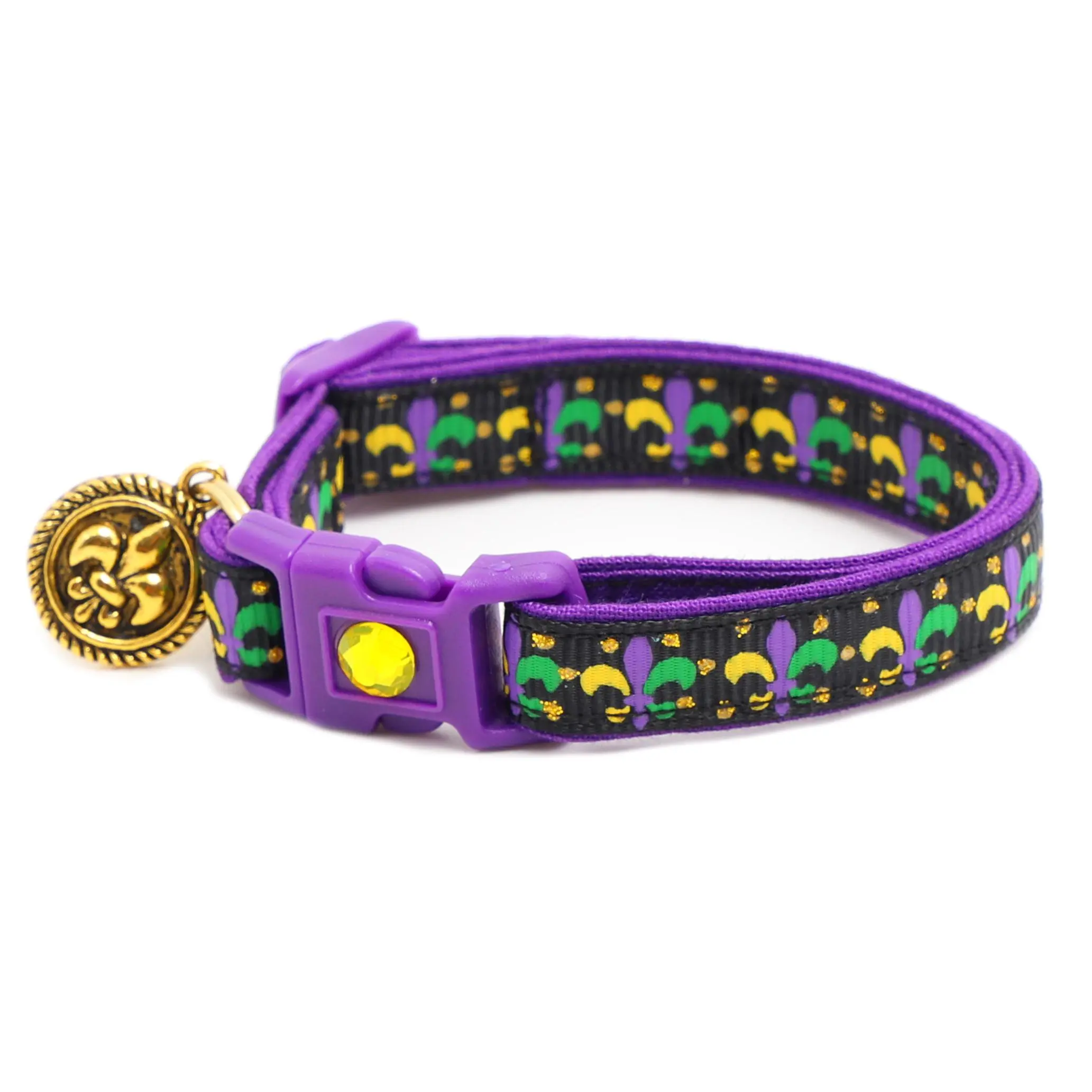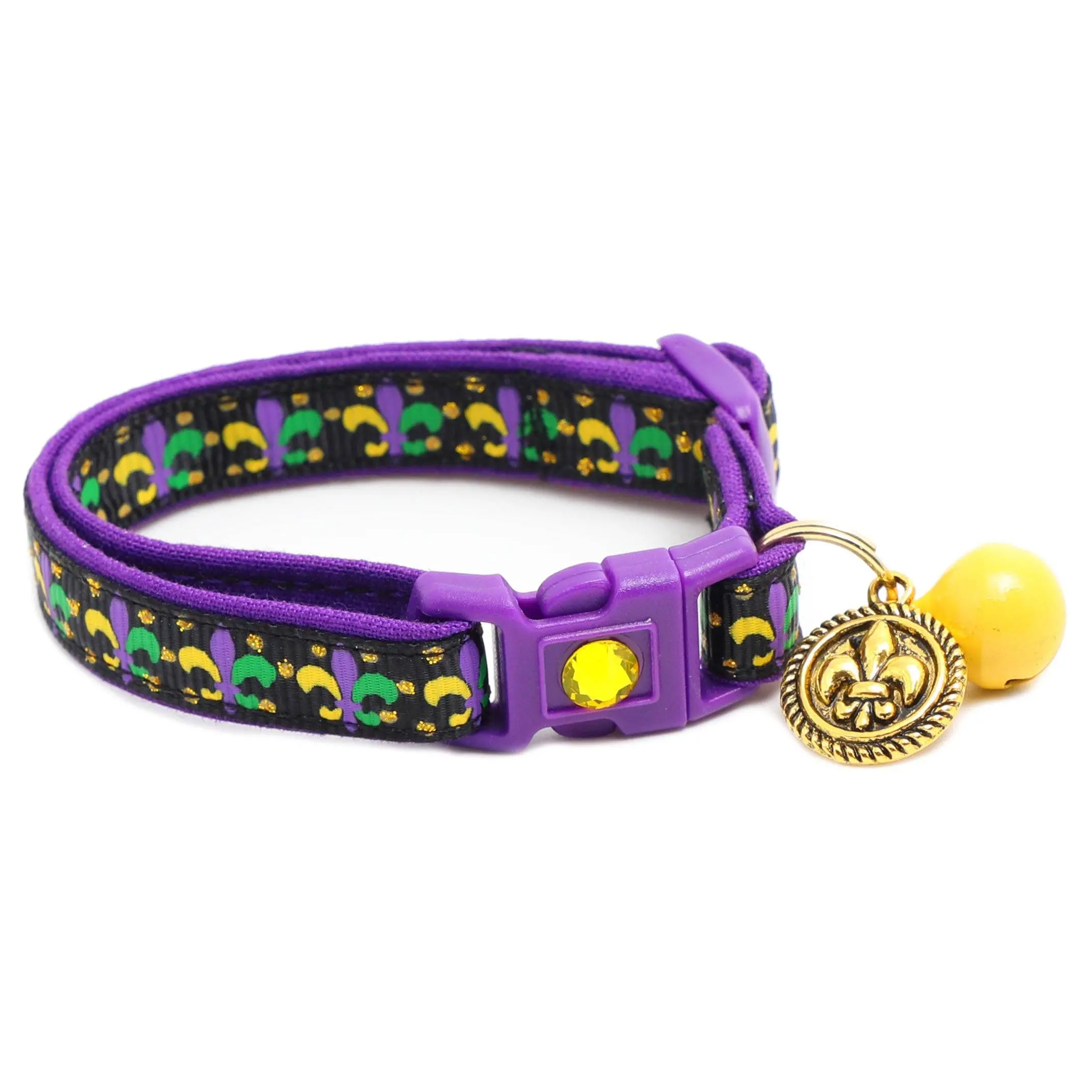 Fleur De Lys Breakaway Safety Cat Collar with Matching Jingle Bell & Charm by Pugs2Persians Mardi Gras New Orleans