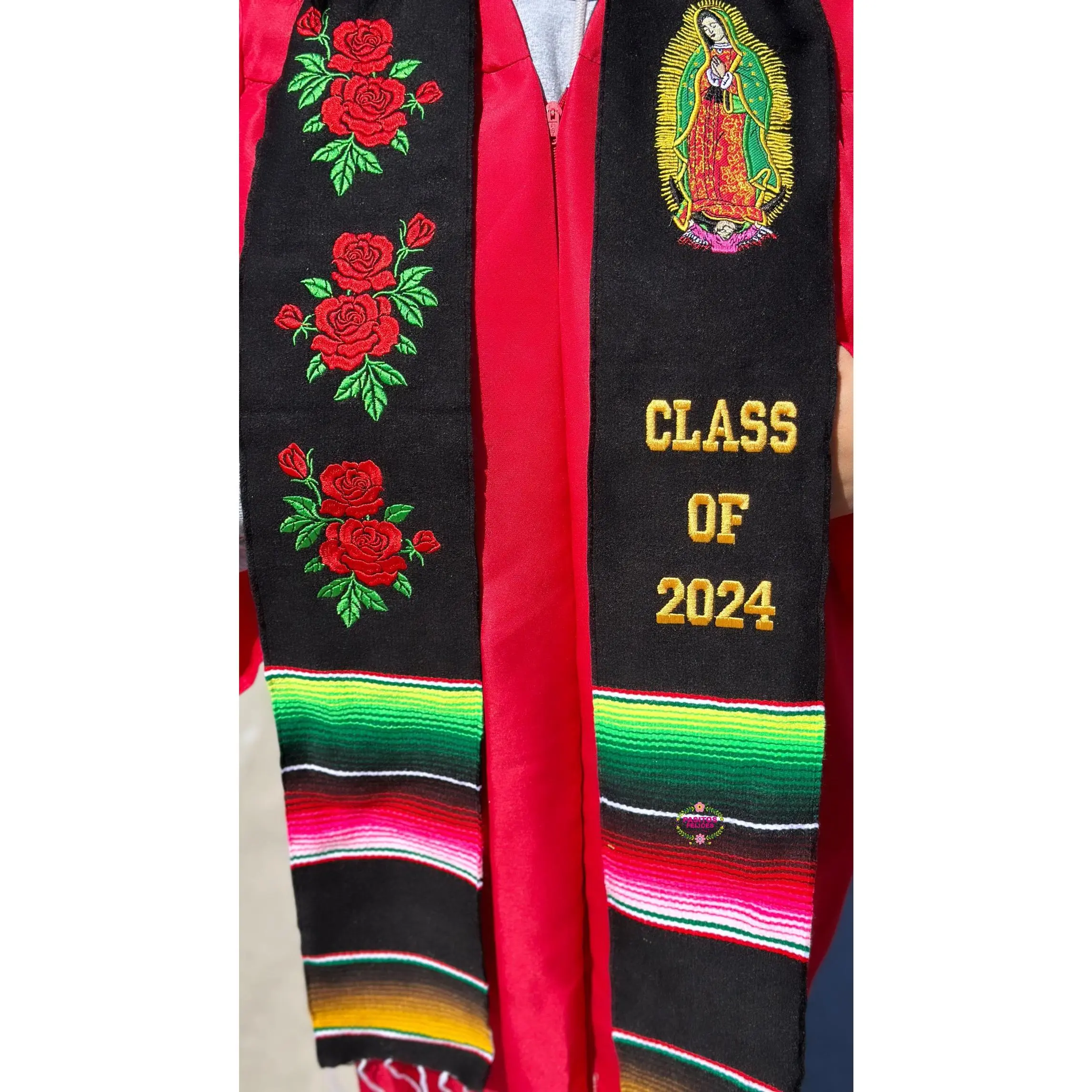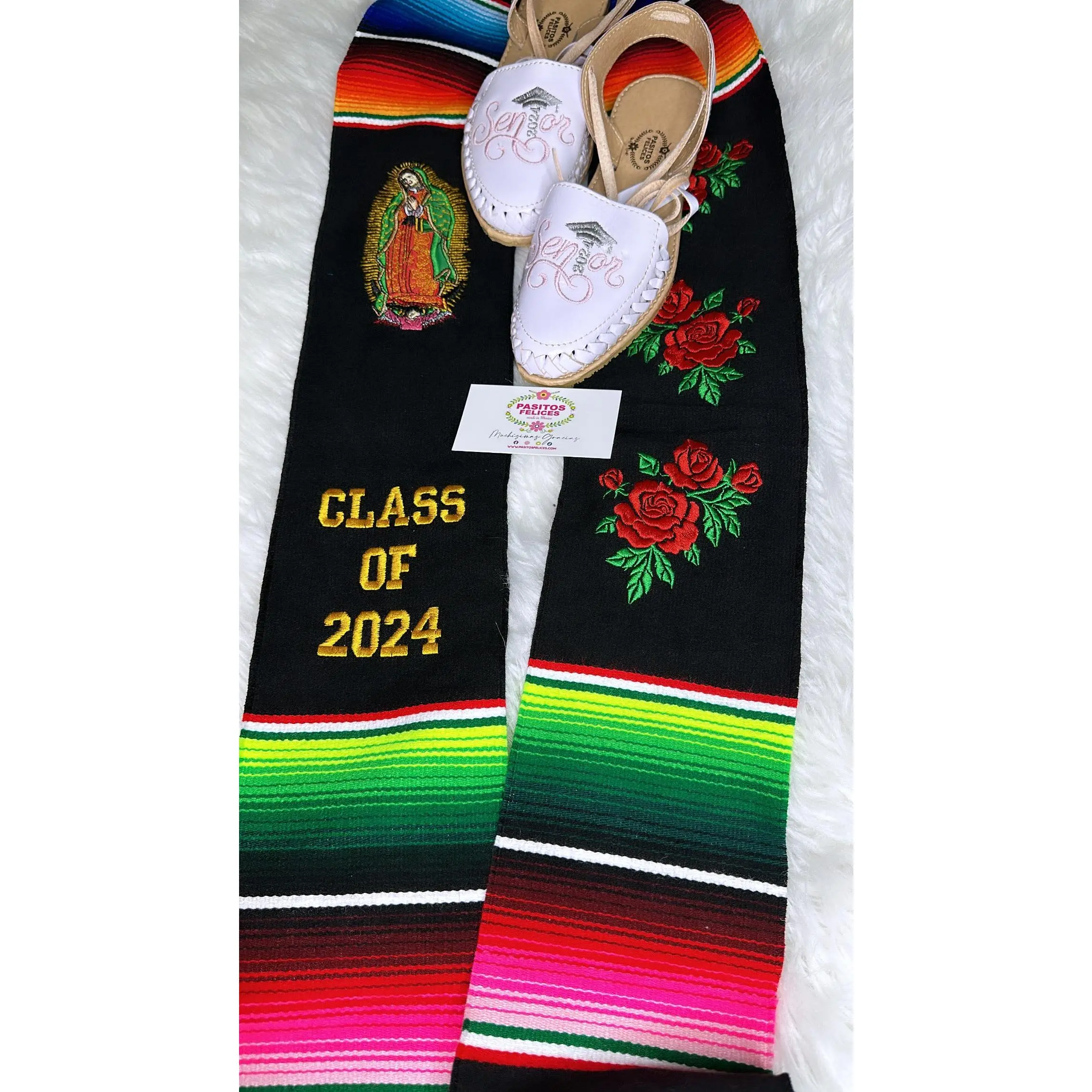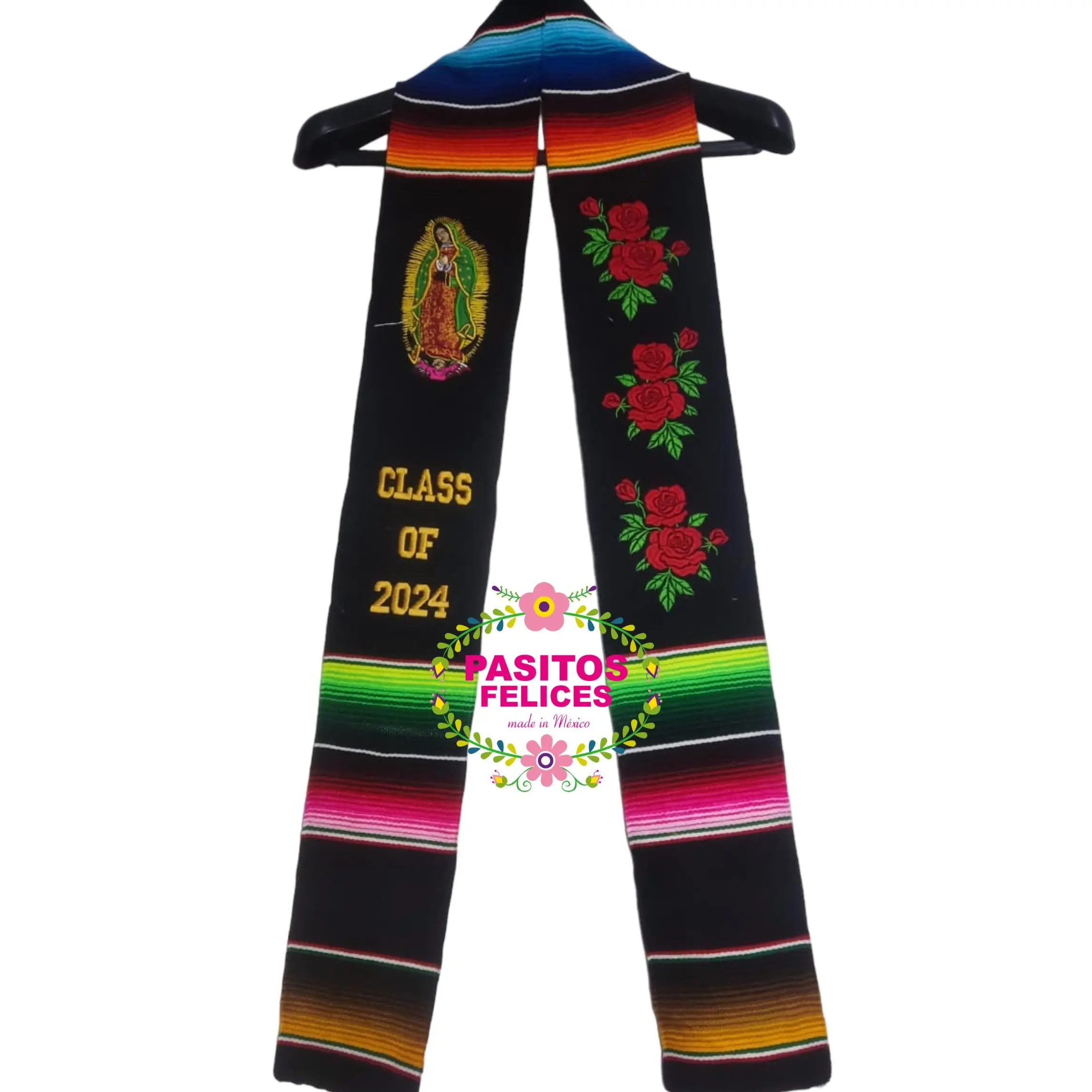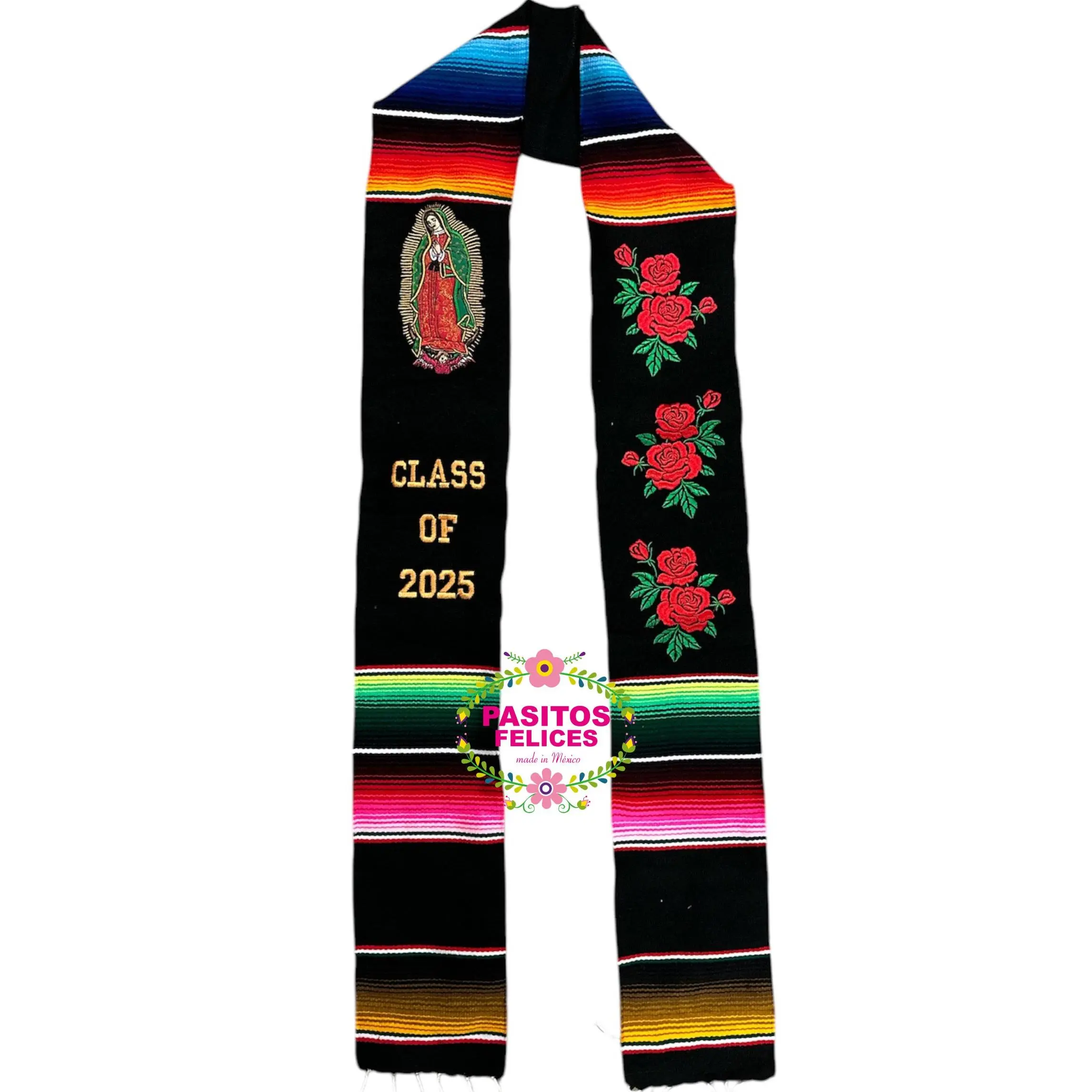 *2026* Virgen and Roses Black Stole Sarape Sash IN STOCK
