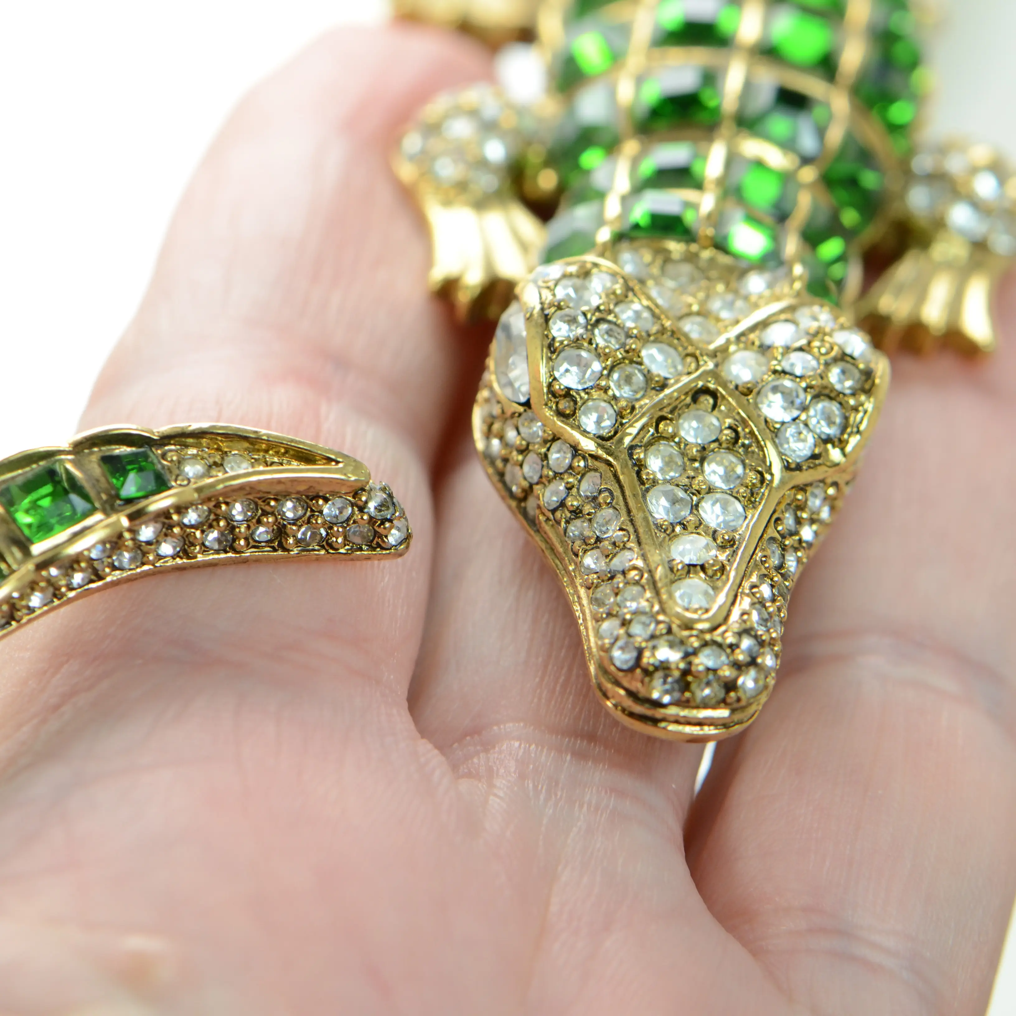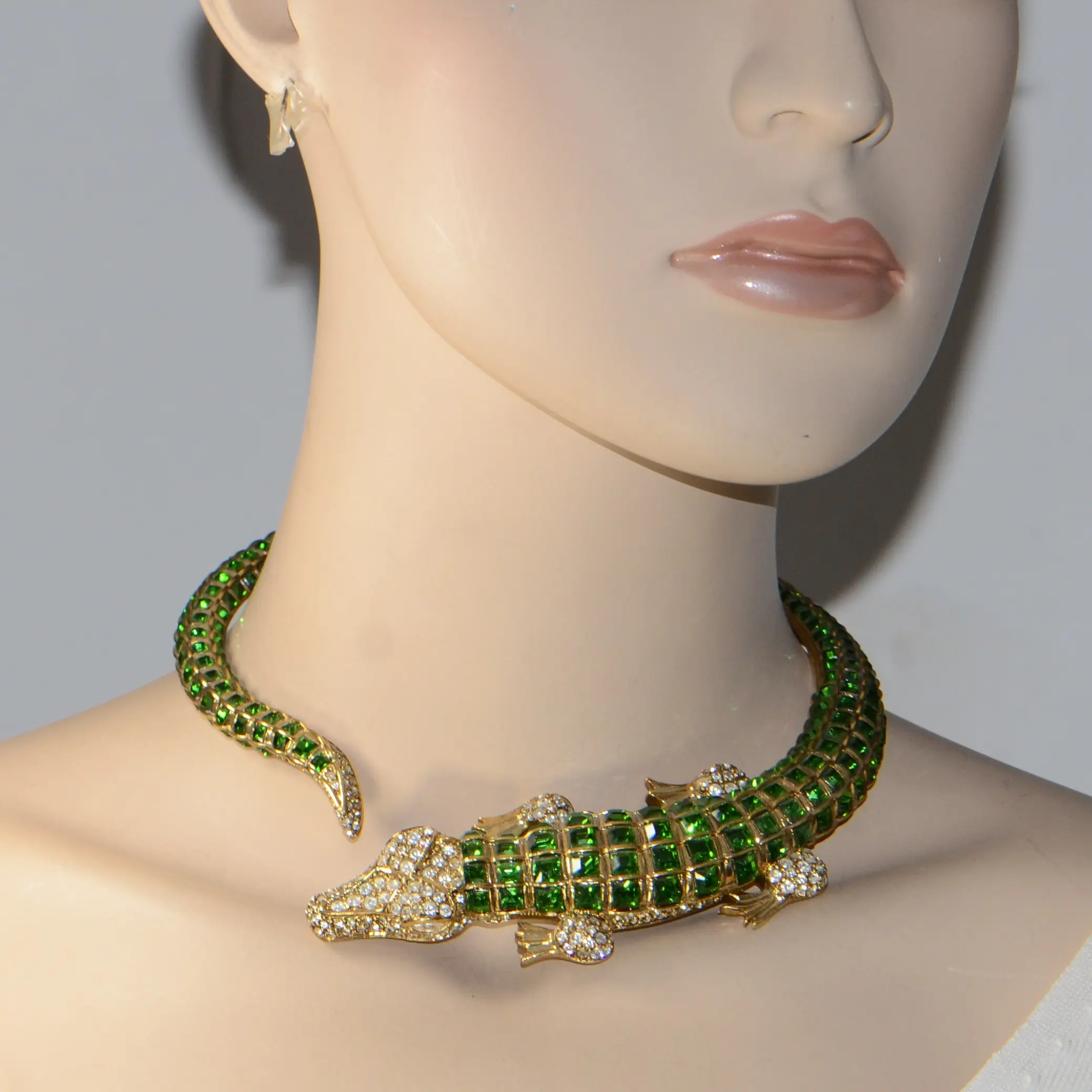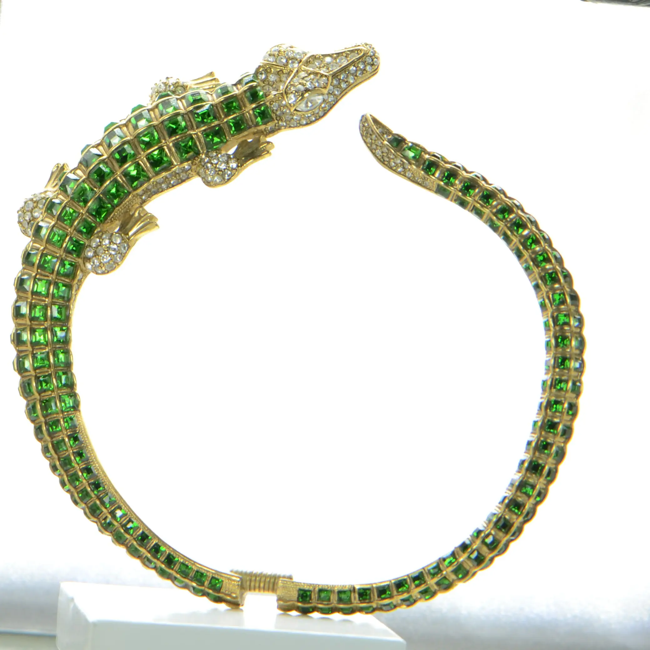 Vintage Kenneth Jay Lane KJL Gold & Crystal Alligator Collar Necklace