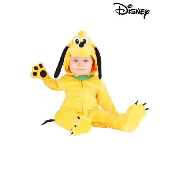 Make sure that your Disney dreams are complete when you buy this Infant Disney Pluto costume from Disney’s classic animation! This officially licensed Made By Us infant costume transforms your tiny tot into a cuddly Pluto with two easy-to-wear pieces. Start the transformation with the super-soft yellow velour hooded jumpsuit. Mitts designed like puppy paws are attached to the end of each sleeve and let you cover or expose your little one's hands. A zipper located at center front makes getting in and out of the costume easy, while the neckline composed of green faux suede imitates a collar and puts a layer between the zipper pull and your baby's chin. Meanwhile, snaps along the inseams make diaper access simple. The hood is soft-sculpted after Pluto's adorable muzzle, complete with floppy ears and embroidered eyes. And a pair of paw-shaped booties complete the look and keep tiny toes cozy!