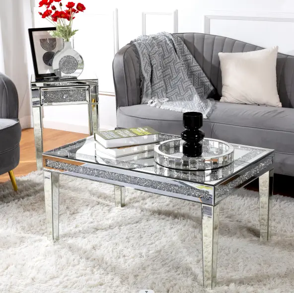 ·Unique coffee table:Mirrored coffee table complementing any living room décor with its minimalist design. The tabletop is inlaid with small sparkling diamonds, the bling is just gorgeous.