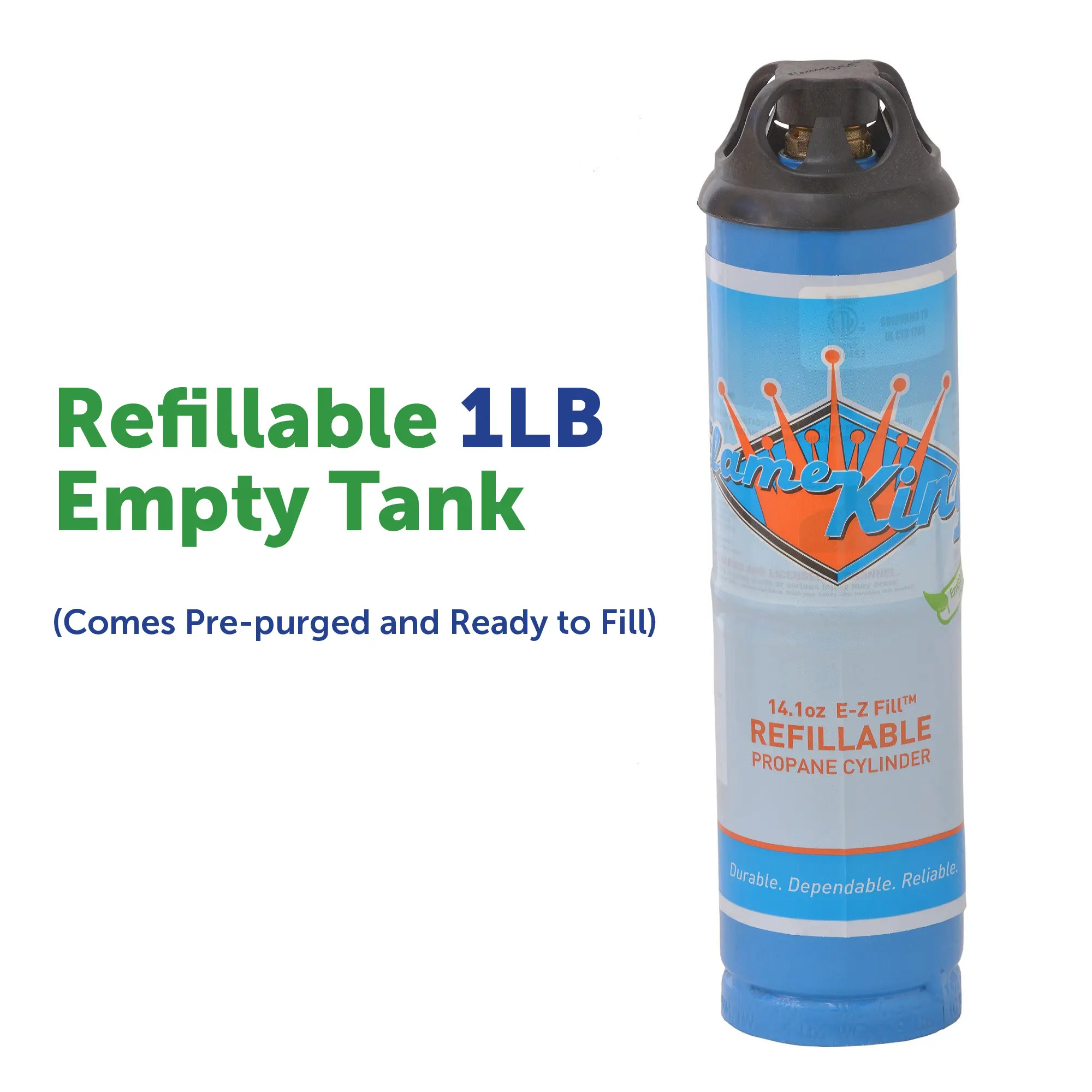 ·SAFE TO USE - Flame King refillable propane tanks are the only 1LB tanks certified by the DOT as legally and lawfully refillable and transportable; it is not safe or legal to refill and transport disposable 1LB tanks