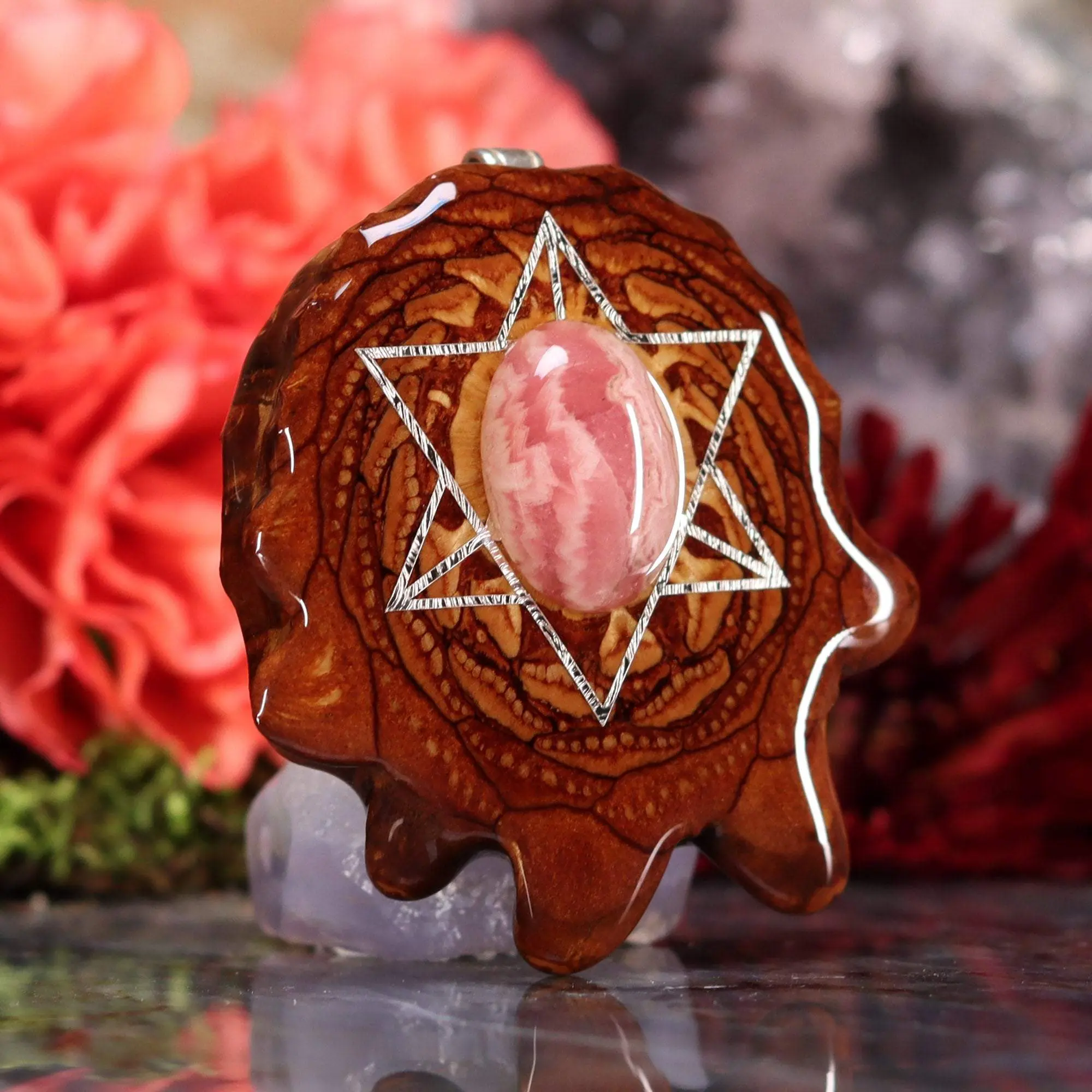 This Pinecone has been anointed with our "Merkaba" emblem, cast in Sterling Silver. Merkaba - "Mer" meaning Light, "Ka" meaning Spirit, and "Ba" meaning Body - is a powerful icon historically known as the "Vehicle of Ascension". The Merkaba opens the mind to increased awareness and promotes deep conscious interconnection.